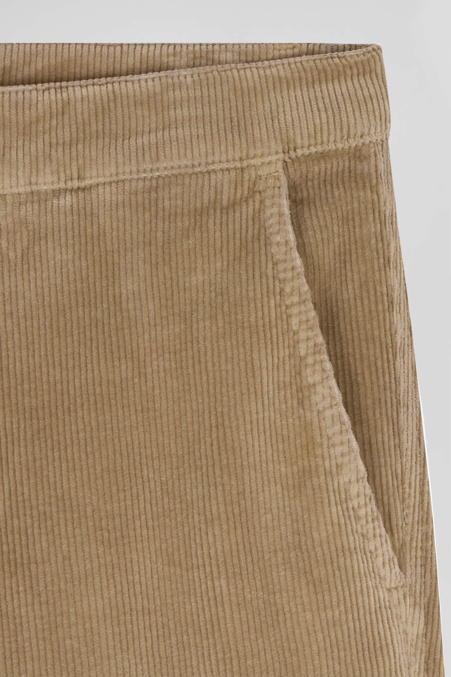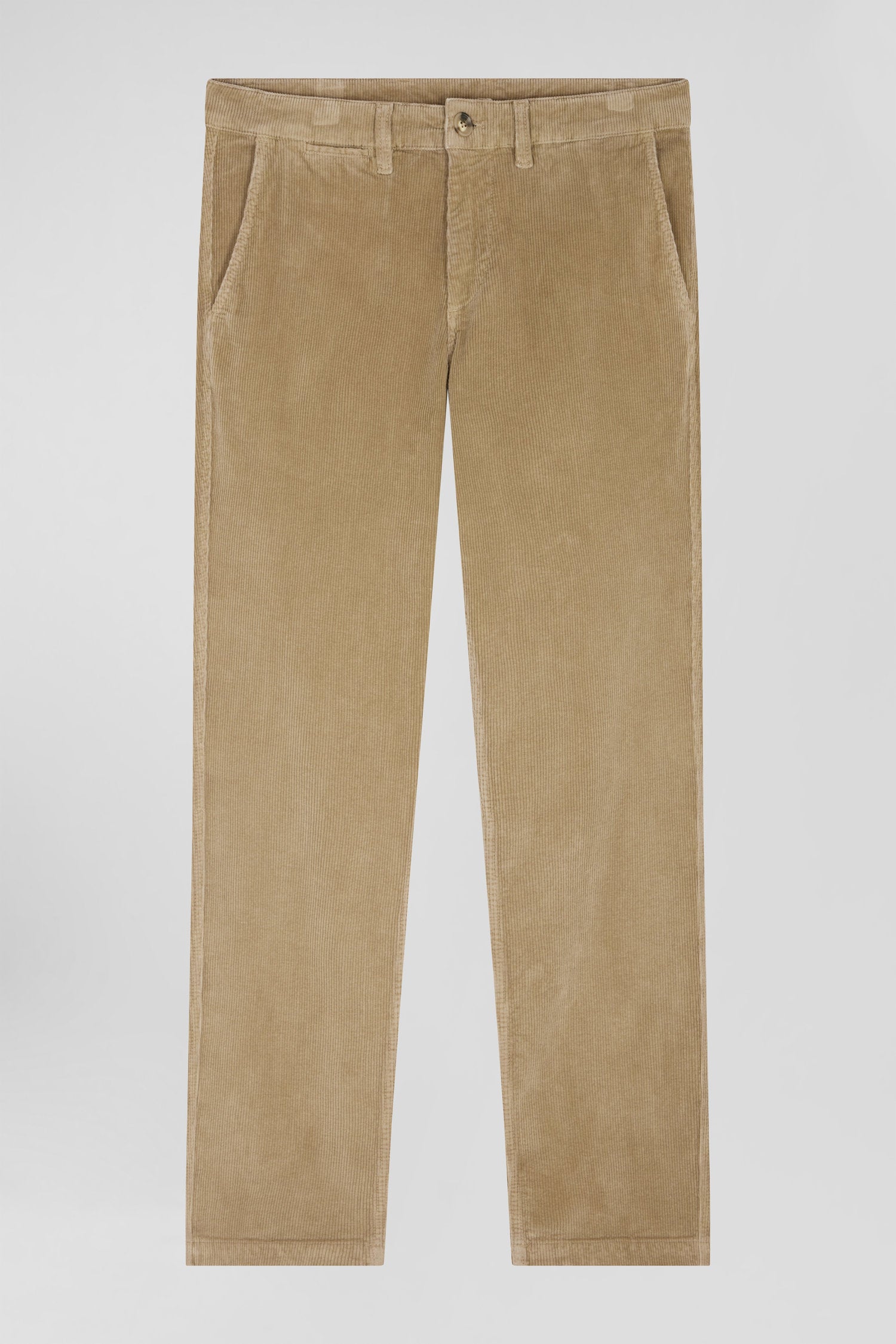 Regular hemp-coloured stretch cotton velvet chino trousers