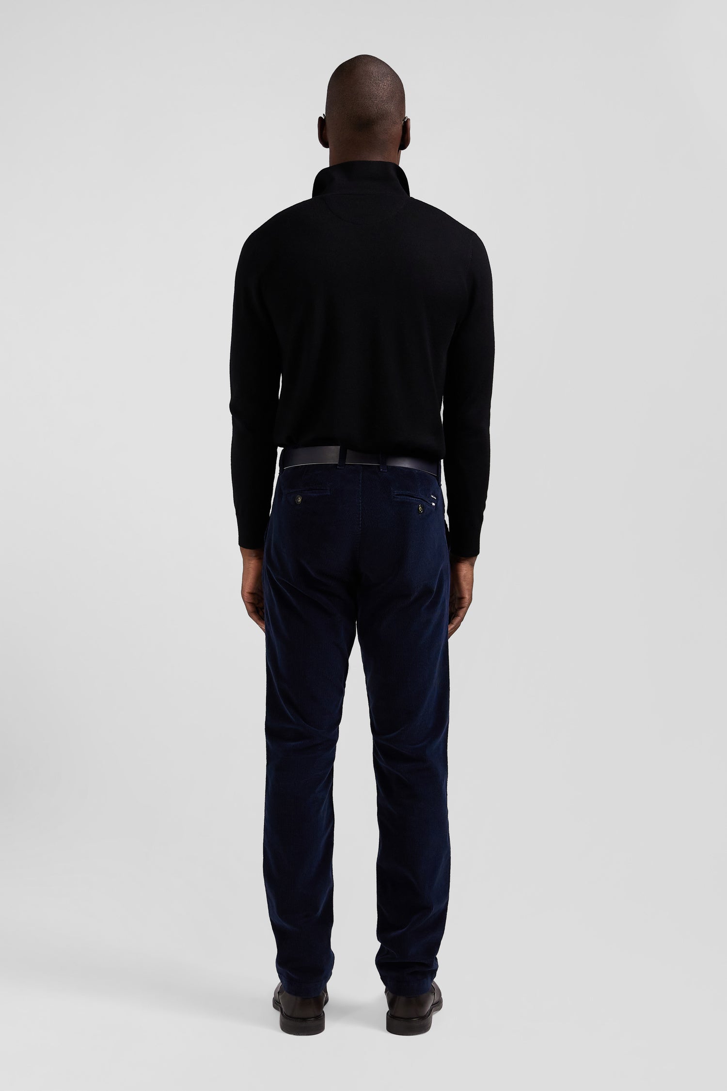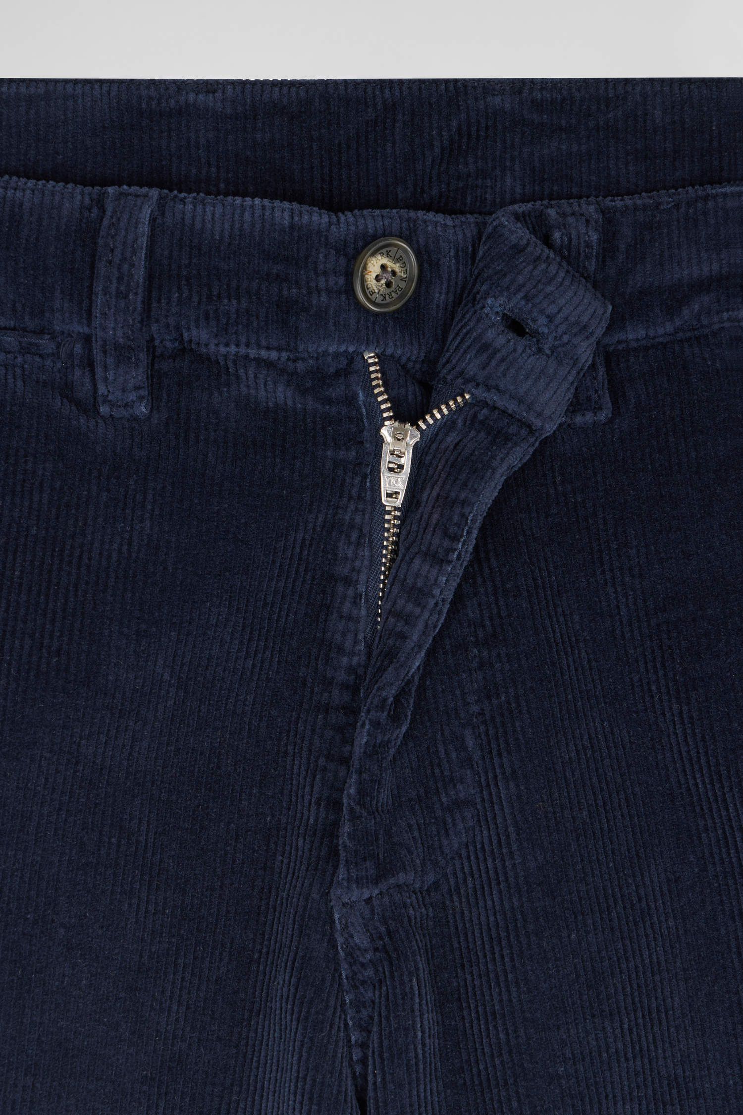 Regular navy blue stretch cotton velvet chino trousers