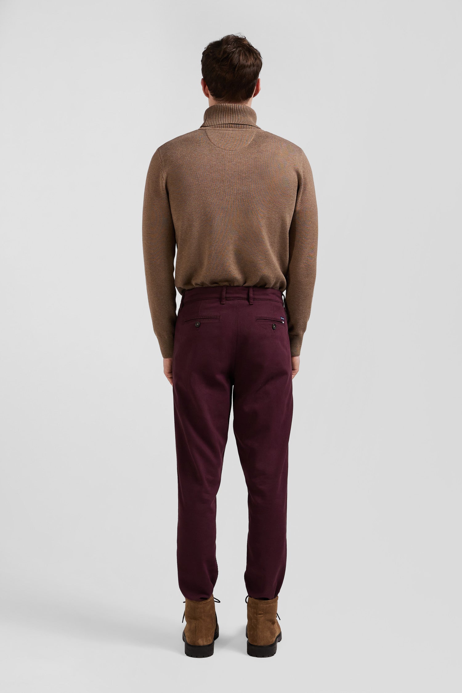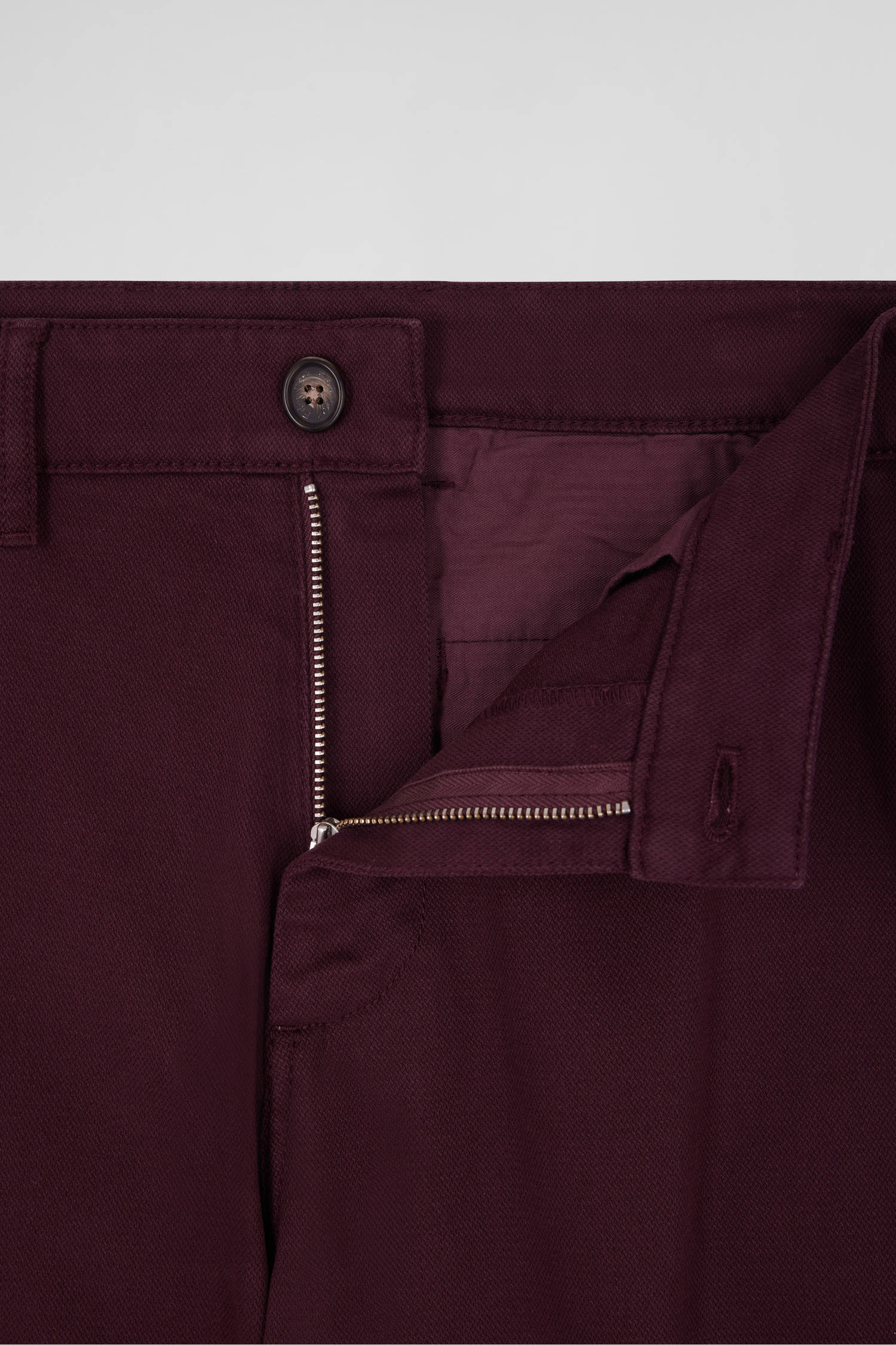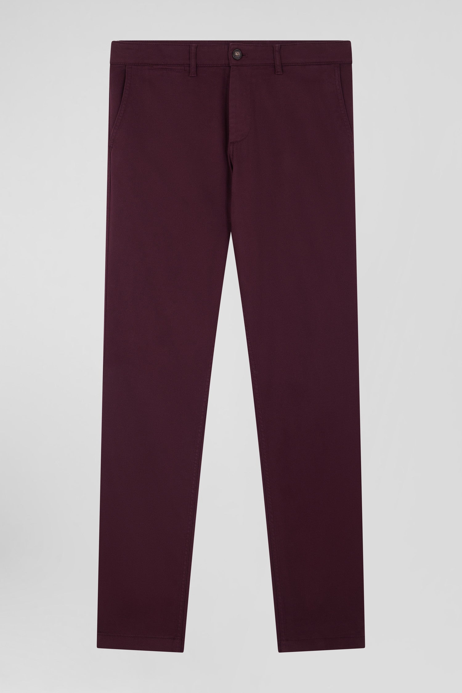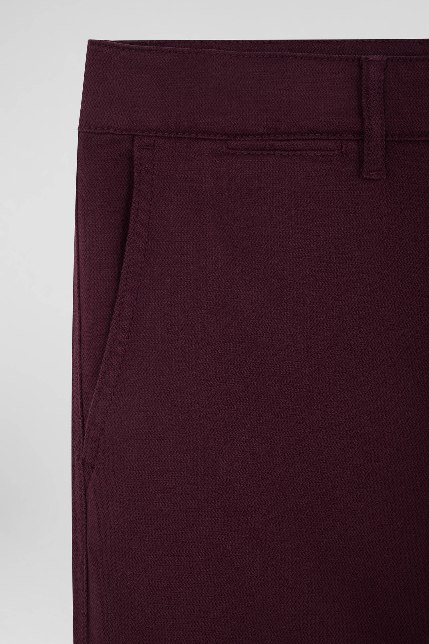 Regular burgundy stretch cotton piqué and modal chino trousers