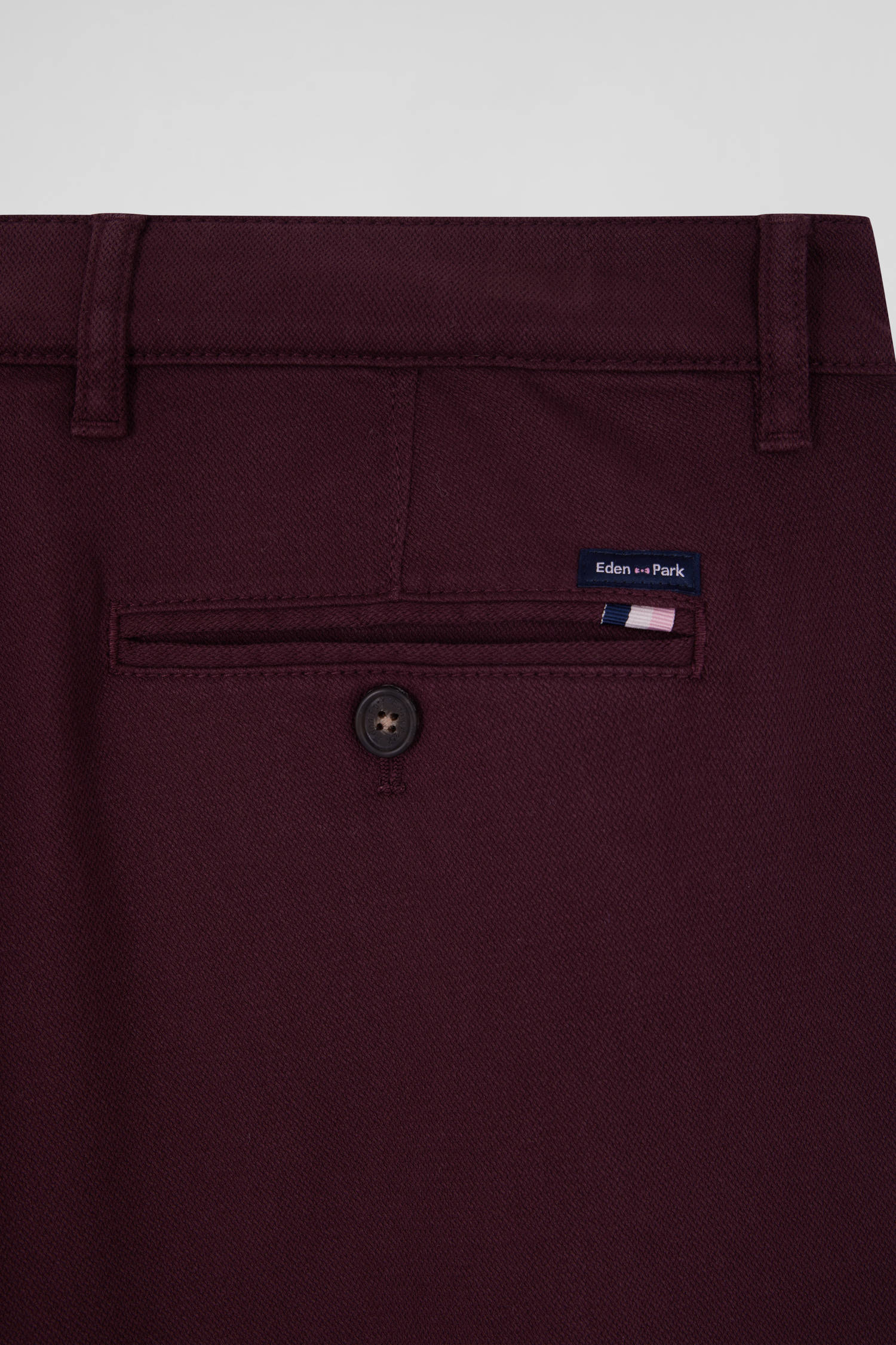 Easy to match with all your autumn-winter outfits, our crease-free chino in cotton piqué and stretch modal offers comfort and elegance. Available in a wide range of colors, these regular-fit pants feature refined details such as a tricolor ribbon and the Eden Park label on the back pocket, reflecting the expertise and identity of our French brand.