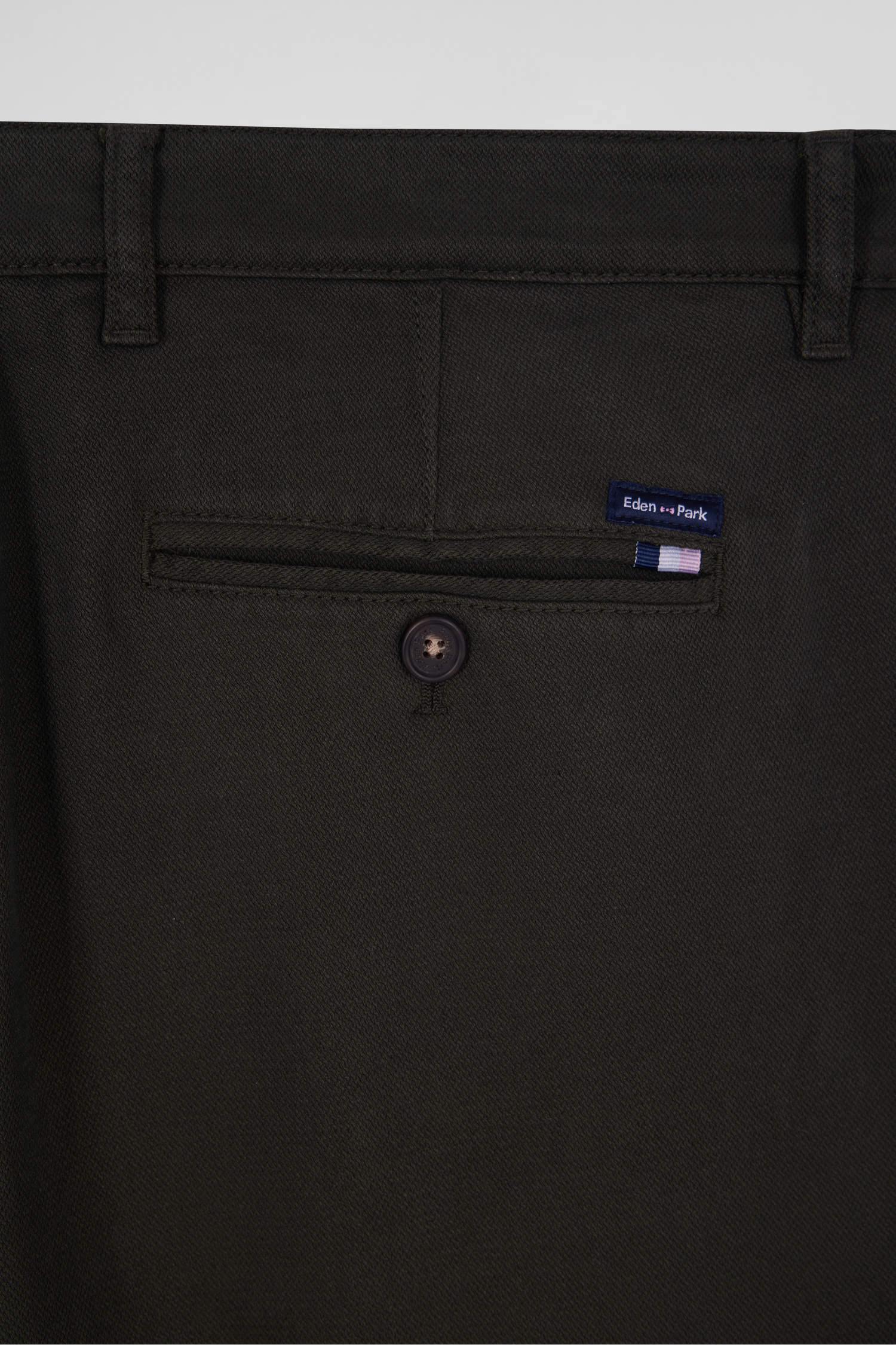 - Eden Park stitched fabric above back pocket with tricolor ribbon