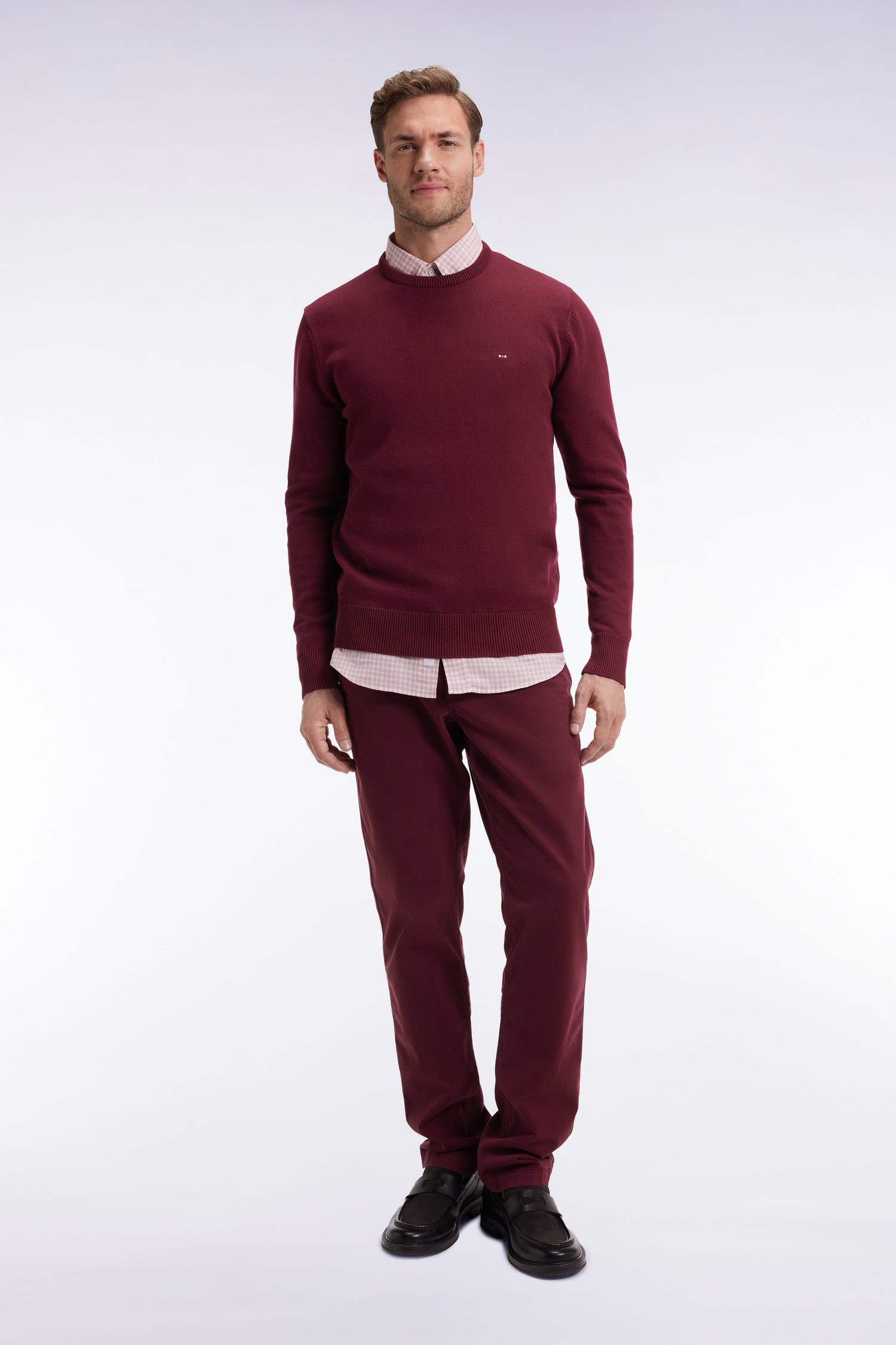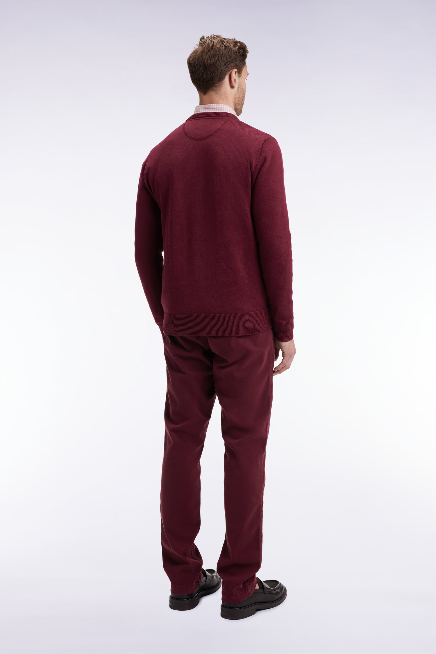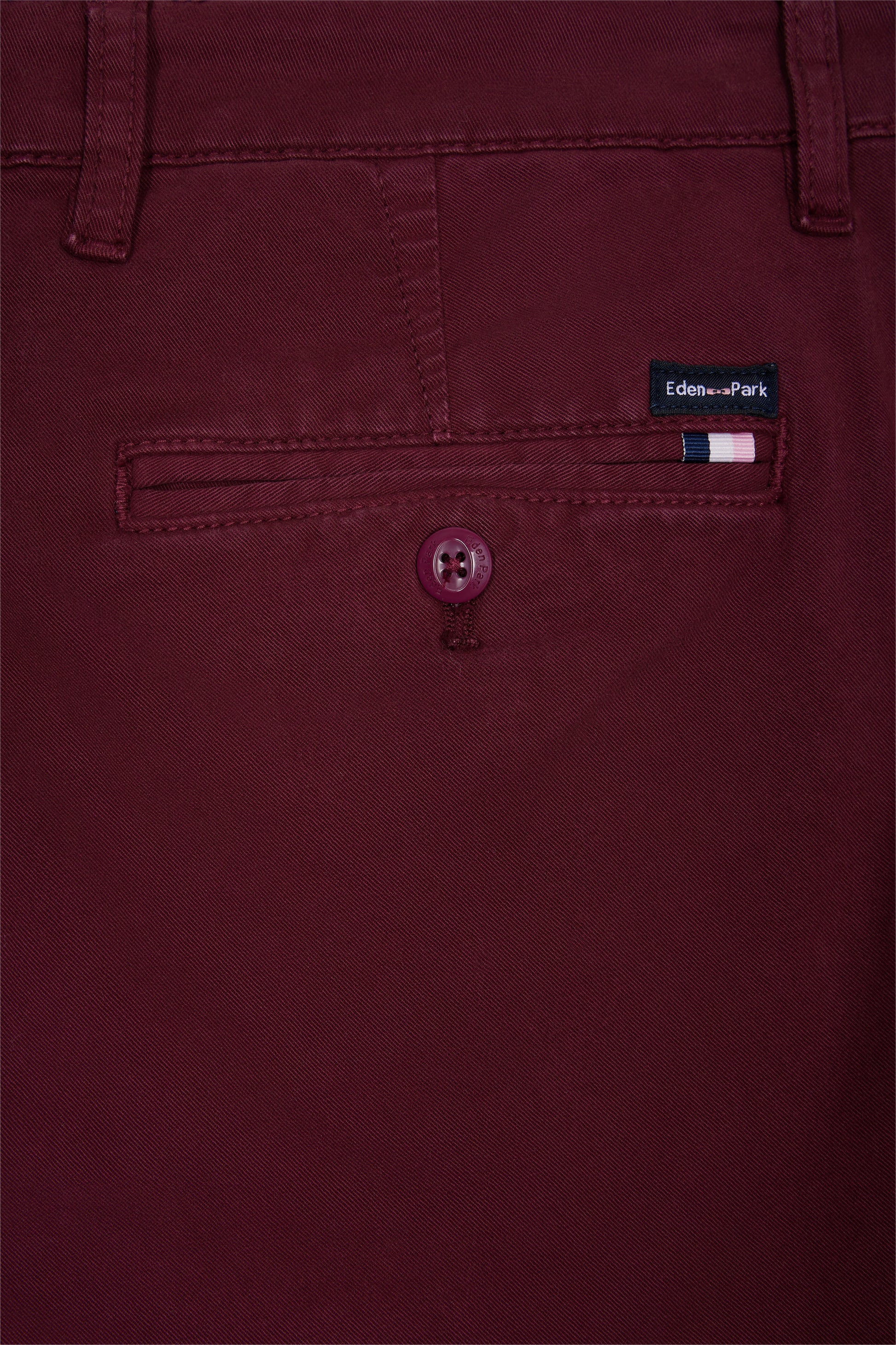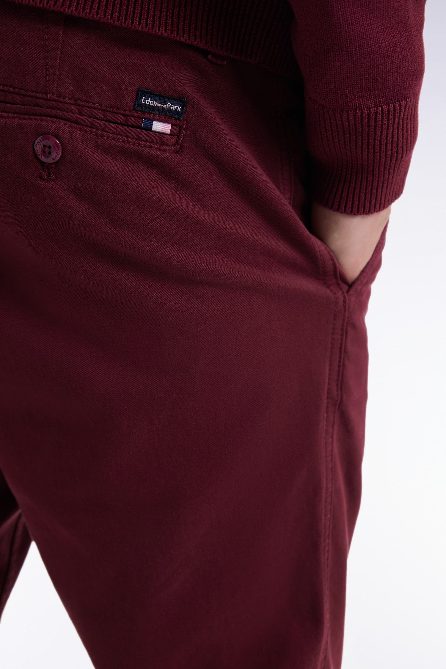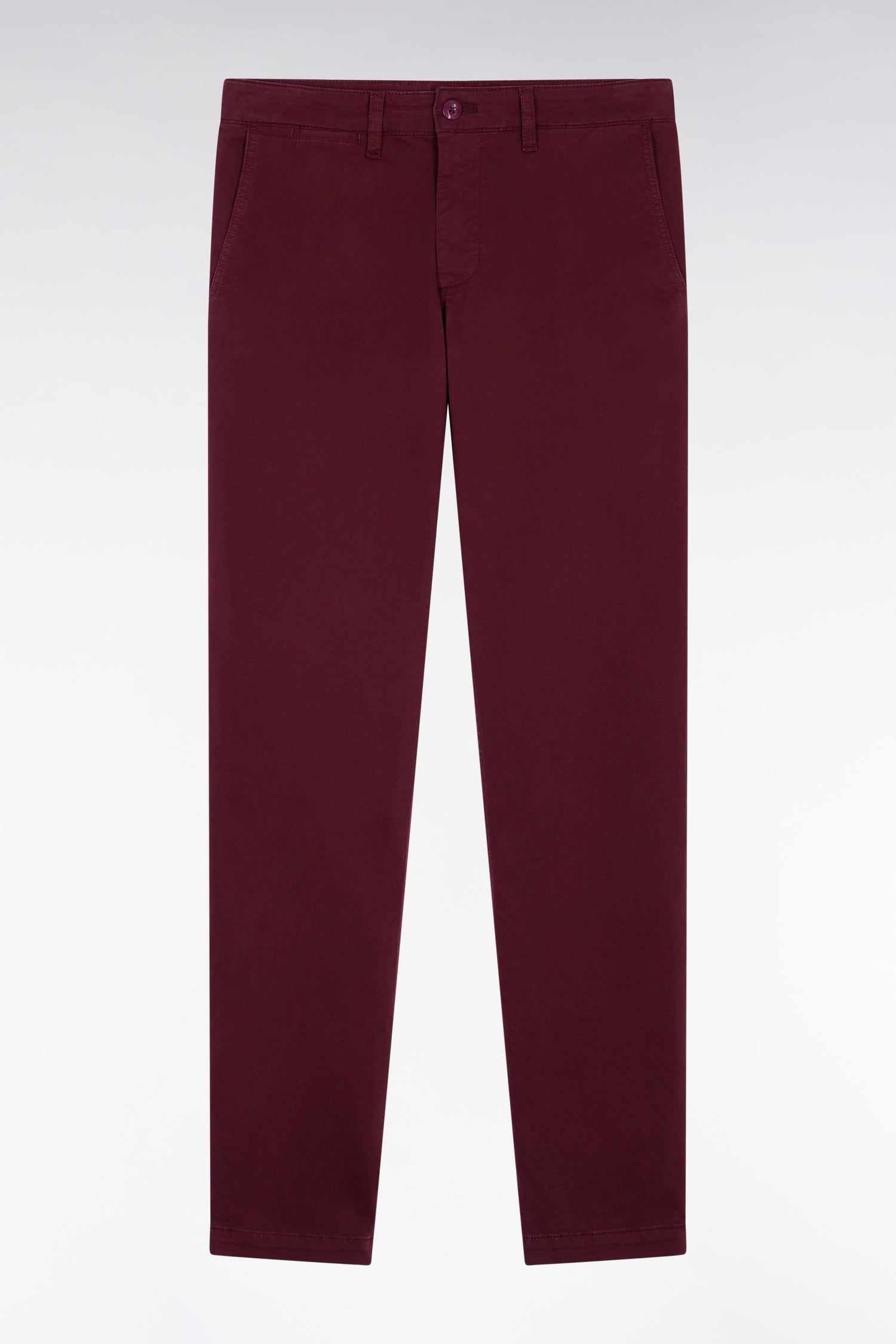 Pleatless chino pants in burgundy stretch cotton