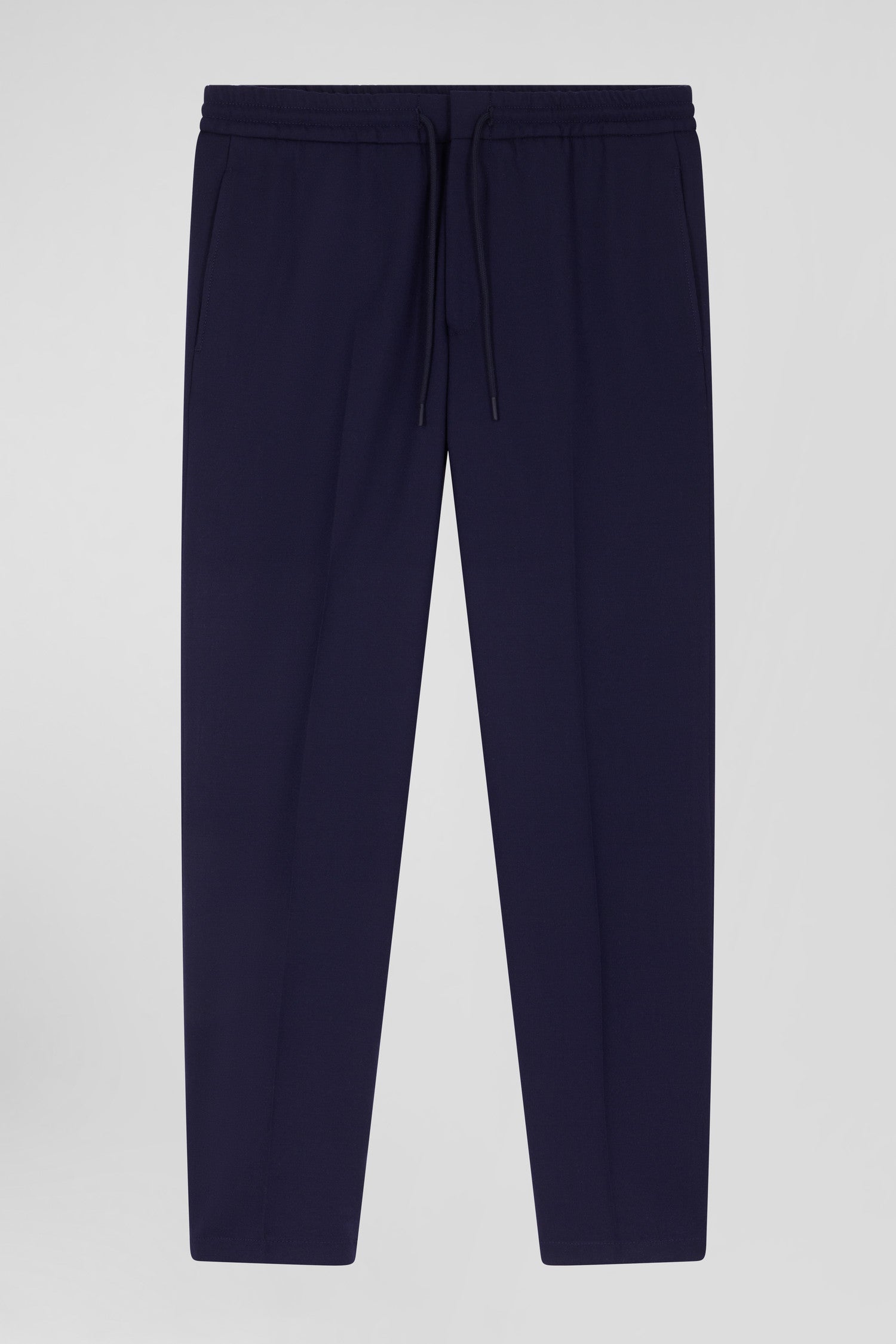 Our navy wool-blend pants in a slightly carrot cut are designed to combine elegance and comfort. With an elasticated waistband, neat finishes such as back welt pockets and a branded label, these chic yet casual men's pants are a fall-winter essential.