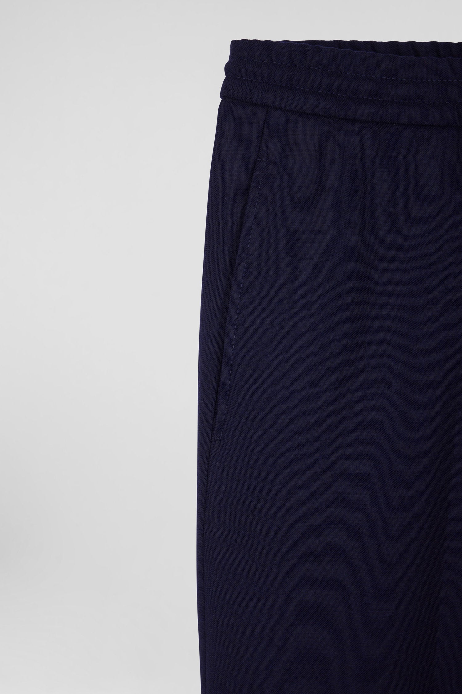 Modern navy blue blended wool elastic waist trousers