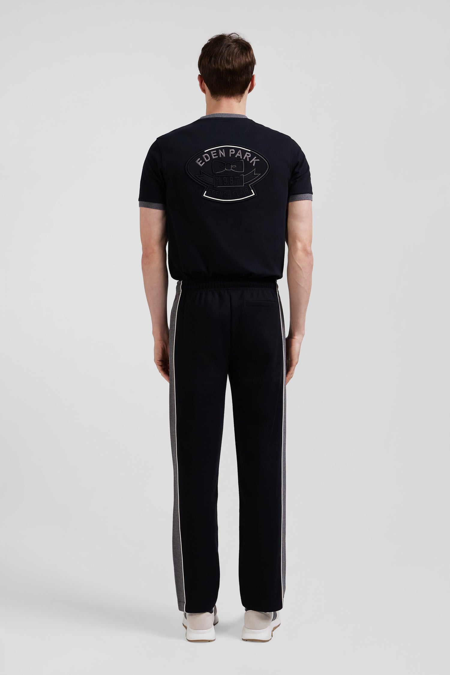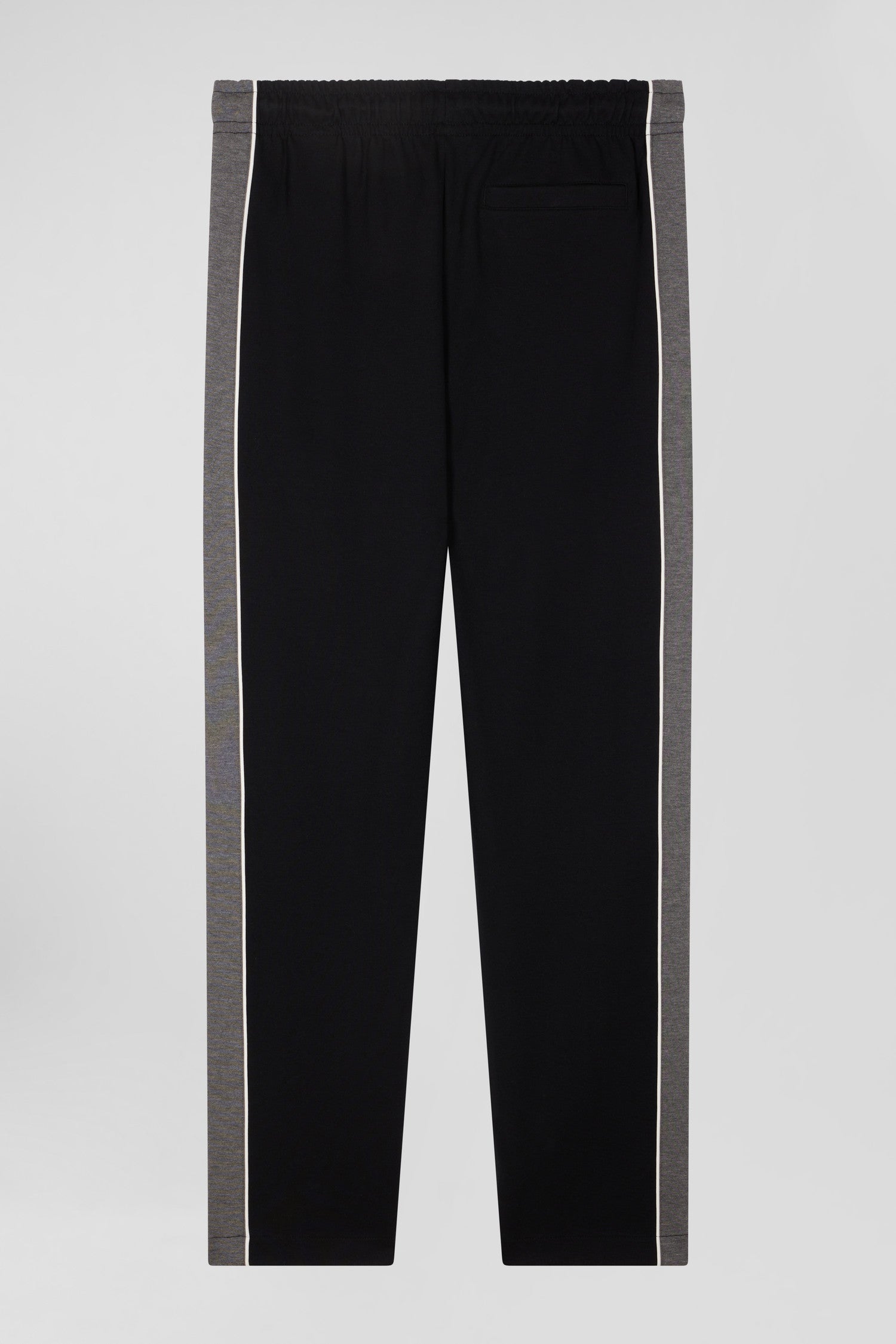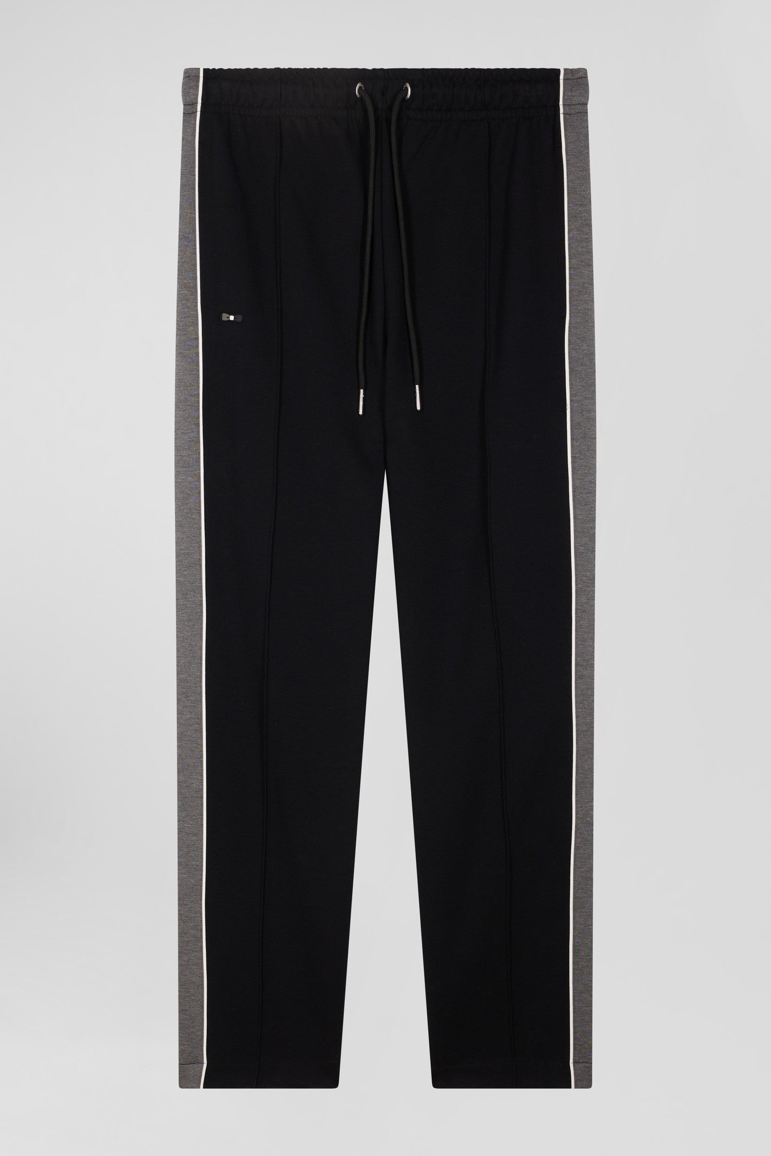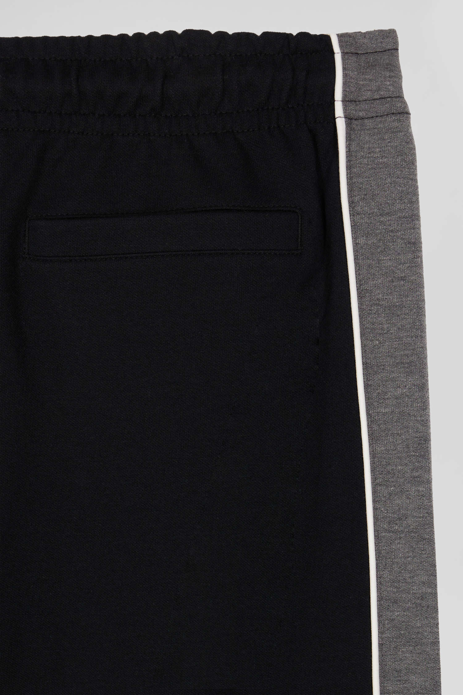 Our men's cotton-blend interlock jogging pants are designed to combine comfort and style. These jogging pants feature a colorblock pattern in shades of gray and black, enhanced by elegant piping detail along the leg. With its elasticated waistband, these soft jogging pants ensure a perfect fit and optimum comfort. The signature silver metallic finish and embroidery of our emblematic tricolor bow tie add a distinctive touch of elegance, reflecting the attention to detail and identity of our French brand.