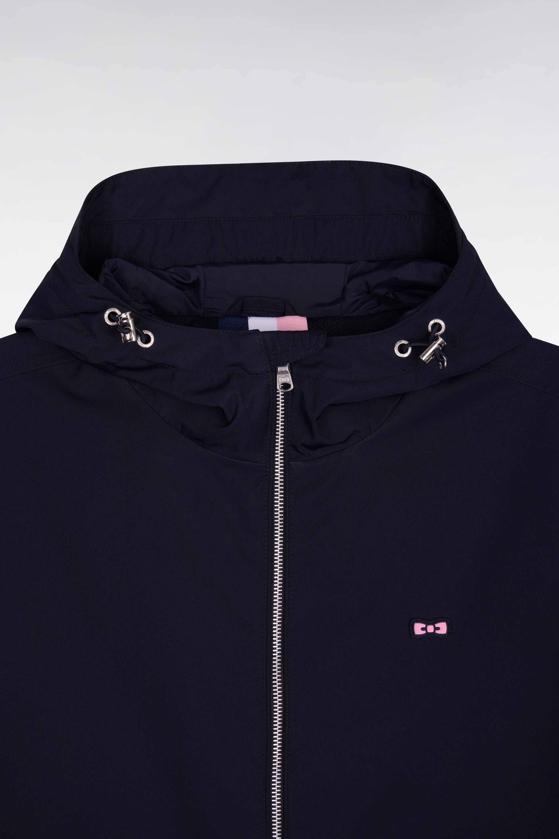 • Capuche fixe avec lien de resserrage et curseurs siglés