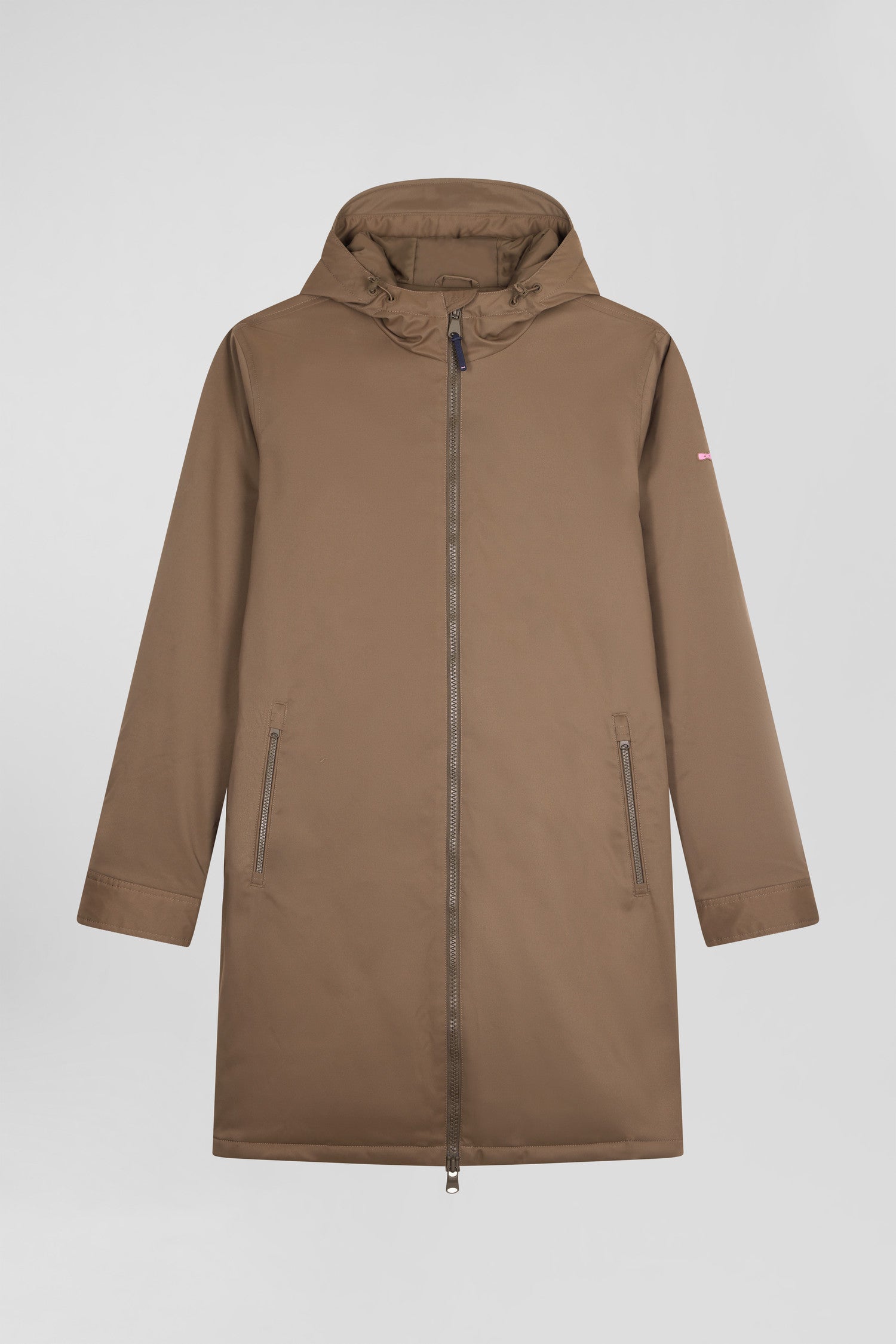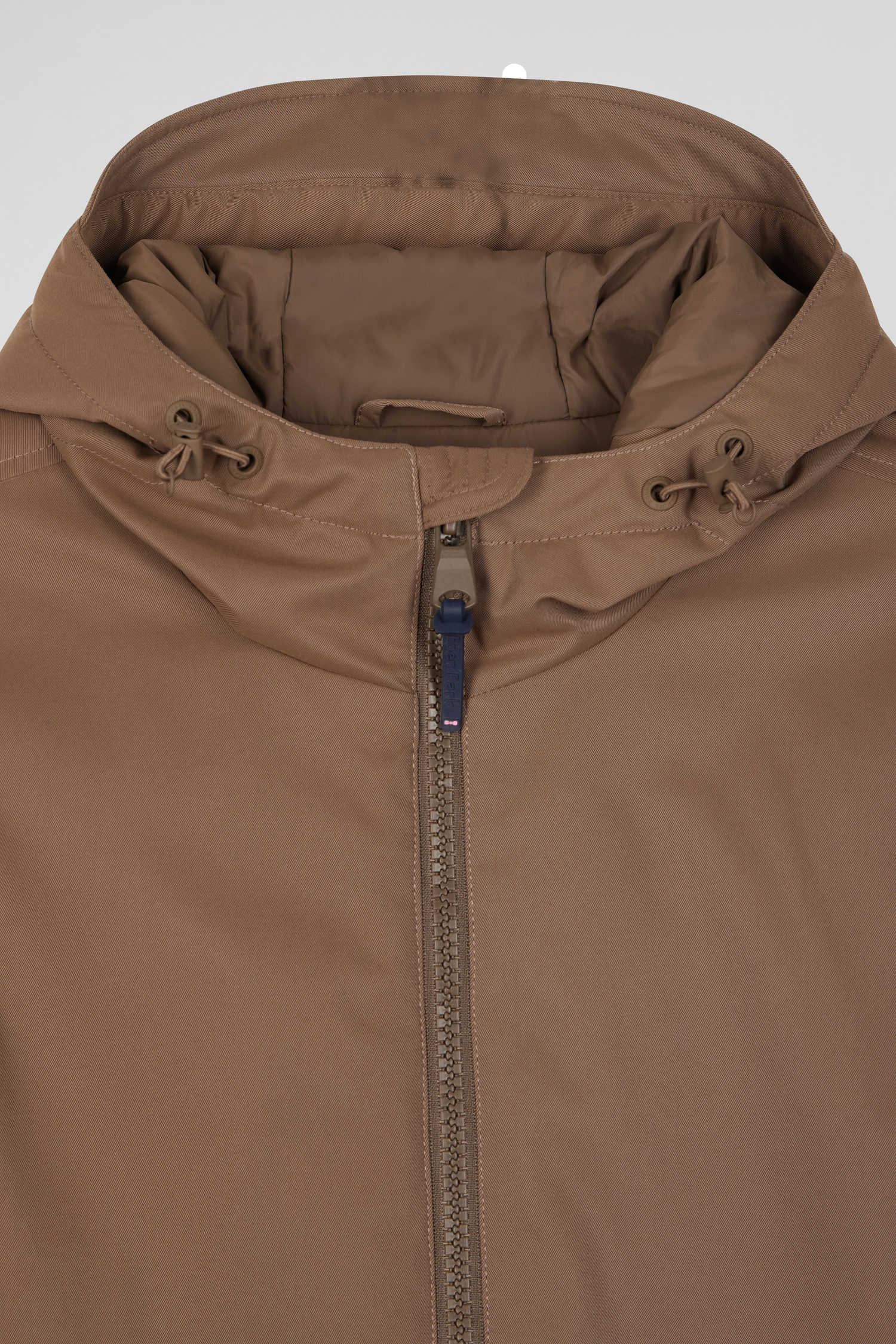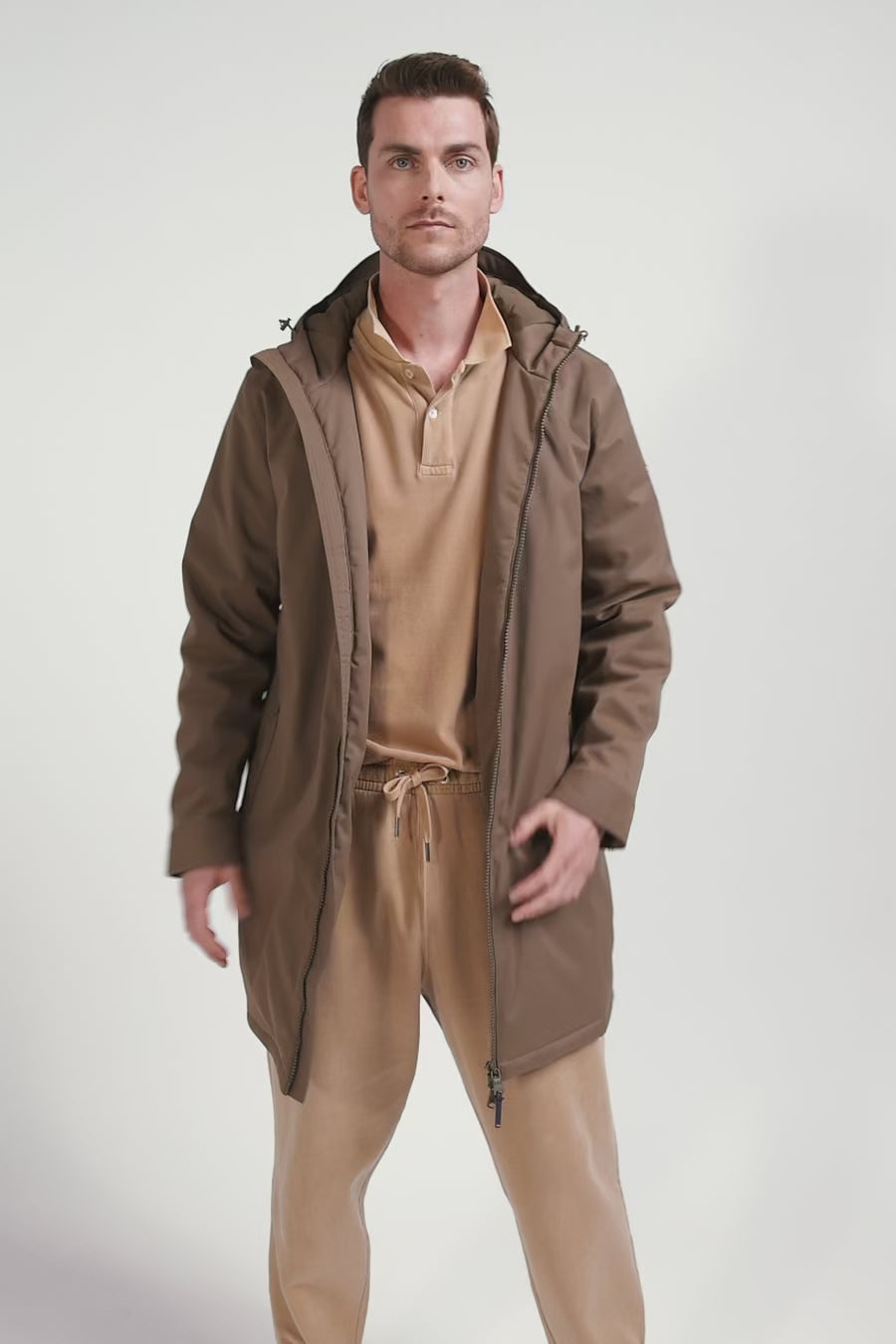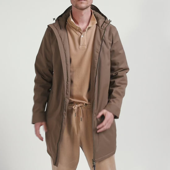 Brown long hooded nylon parka