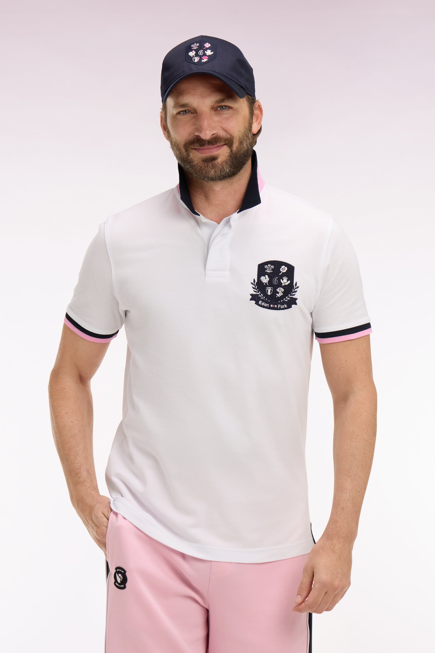 Polo à manches courtes 6 Nations en piqué coton blanc