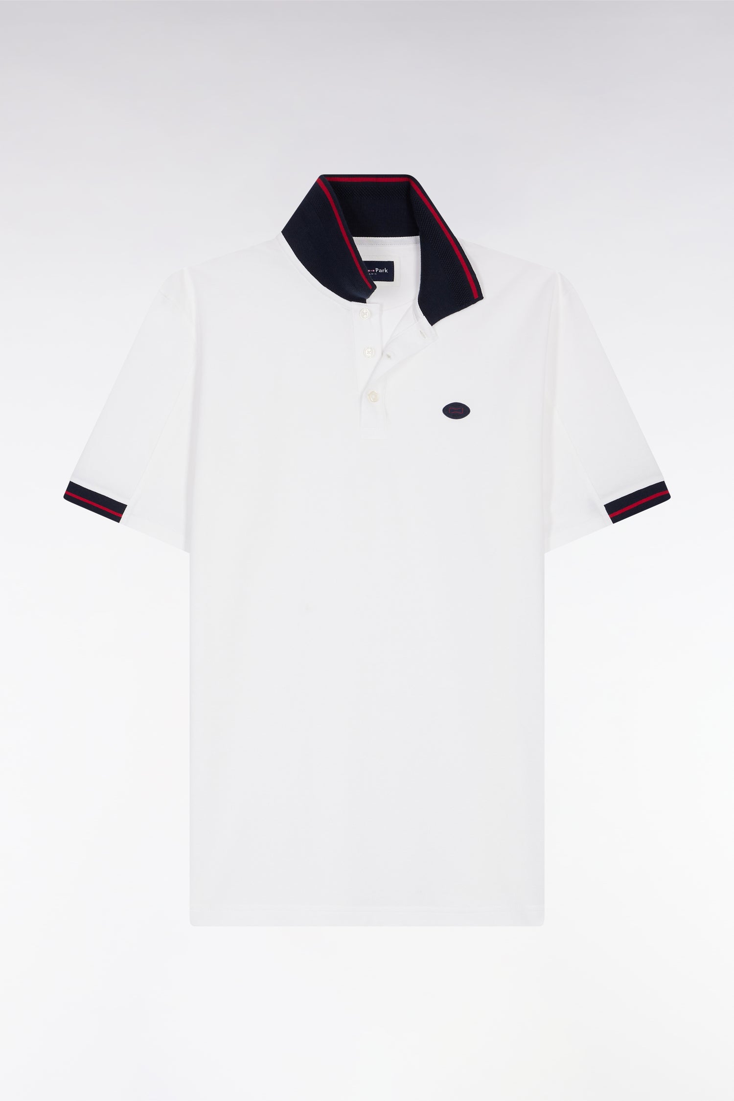 This men's polo combines graphic style and rugby heritage in an assertive design. Stripes on half the sleeve edges make a strong visual impact, enhanced by a contrasting piqué collar elegantly highlighted by the same stripe. The silicone badge on the chest and meticulous finishing touches, such as the rugby-inspired button placket, recall the emblematic codes of our French house. This loose-fitting cotton polo is available in navy, burgundy or bright white. An essential that adds a touch of dynamism to your everyday wardrobe.