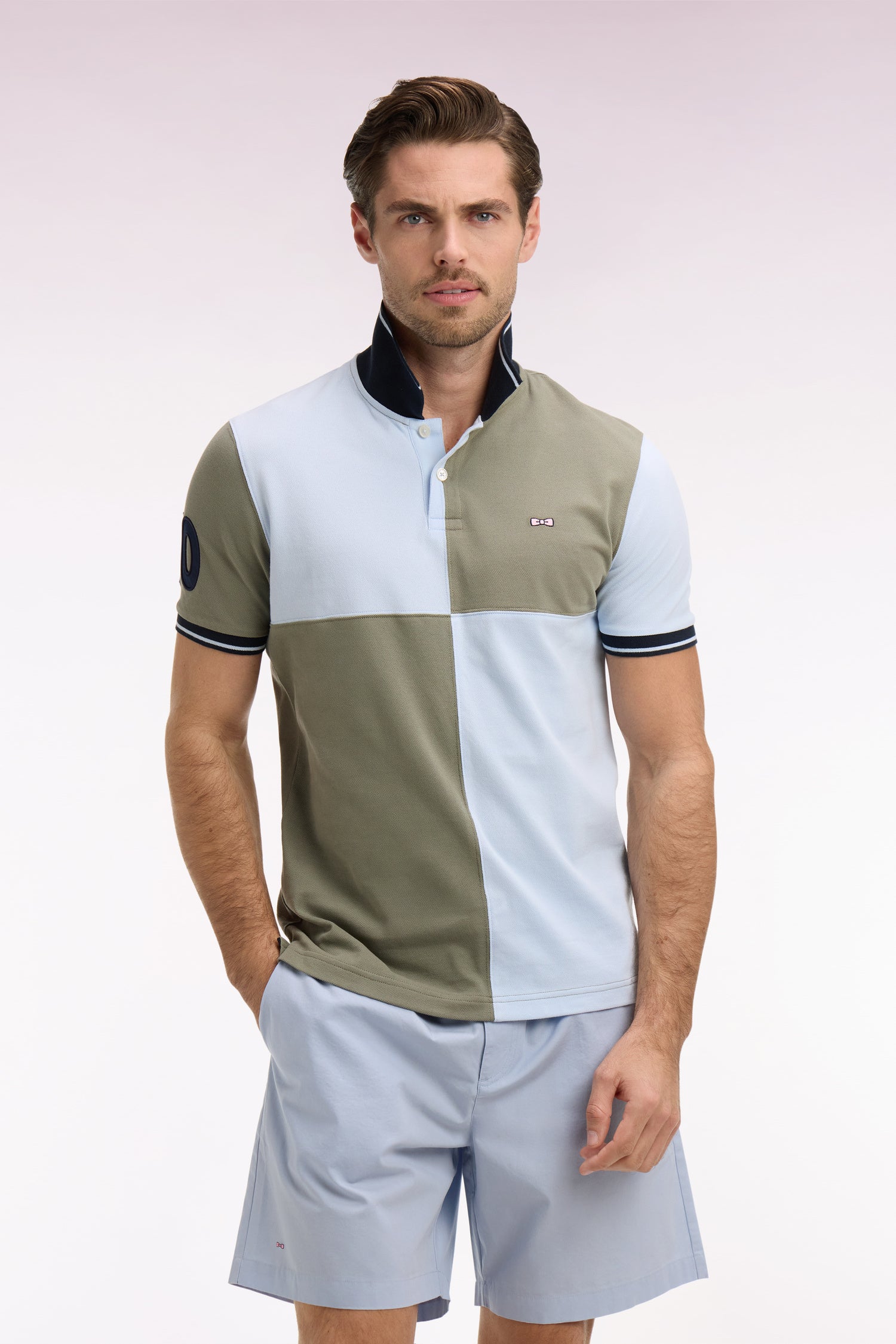 Ce polo masculin en piqué de coton revisite l’héritage rugby Eden Park avec subtilité grâce à sa broderie 10 sur la manche, clin d’œil au numéro historique du maillot de notre fondateur. Le contraste du col polo marine et des bords-côtes assortis structure la silhouette et souligne l’allure sport chic du modèle. Sa coupe regular et son piqué de coton garantissent confort et tenue, tandis que ses découpes cadrans travaillées dans une palette beige et ciel ou beige et rose apportent une élégance contemporaine à cet essentiel graphique pensé pour accompagner le vestiaire estival.