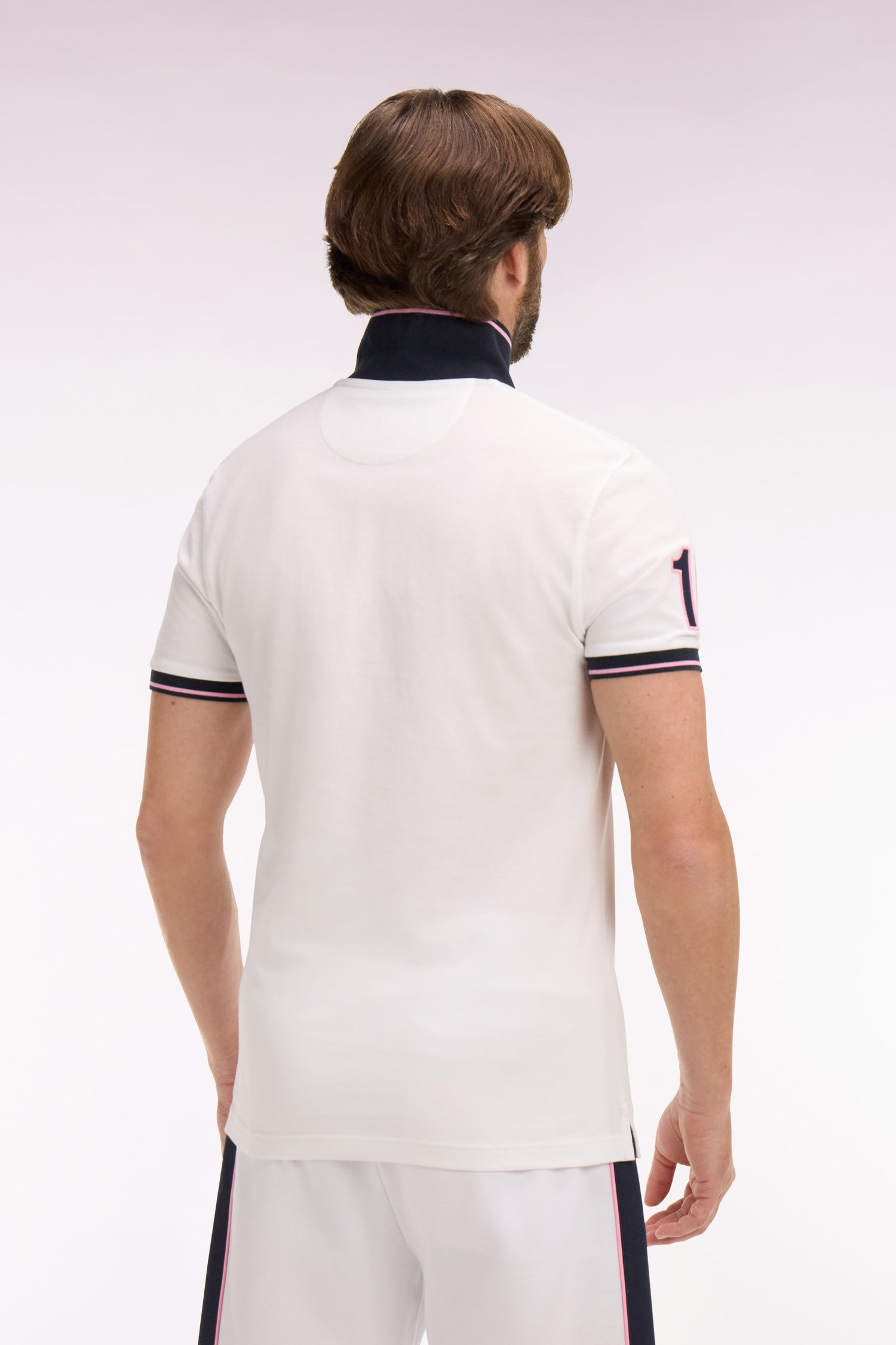 Nos deux polos homme coupe droite, disponibles en blanc ou marine, incarnent l’essence du vestiaire Eden Park. Chaque modèle présente une broderie 10 sur la manche, rappel du maillot historique porté par Franck Mesnel, le fondateur de la Maison. Le pourtour contrasté de cette broderie sport-chic est repris en liseré sur le contour du col polo et des bordures de manches. Une pièce incontournable, célébrant l'héritage sportif et l'élégance de notre Maison.