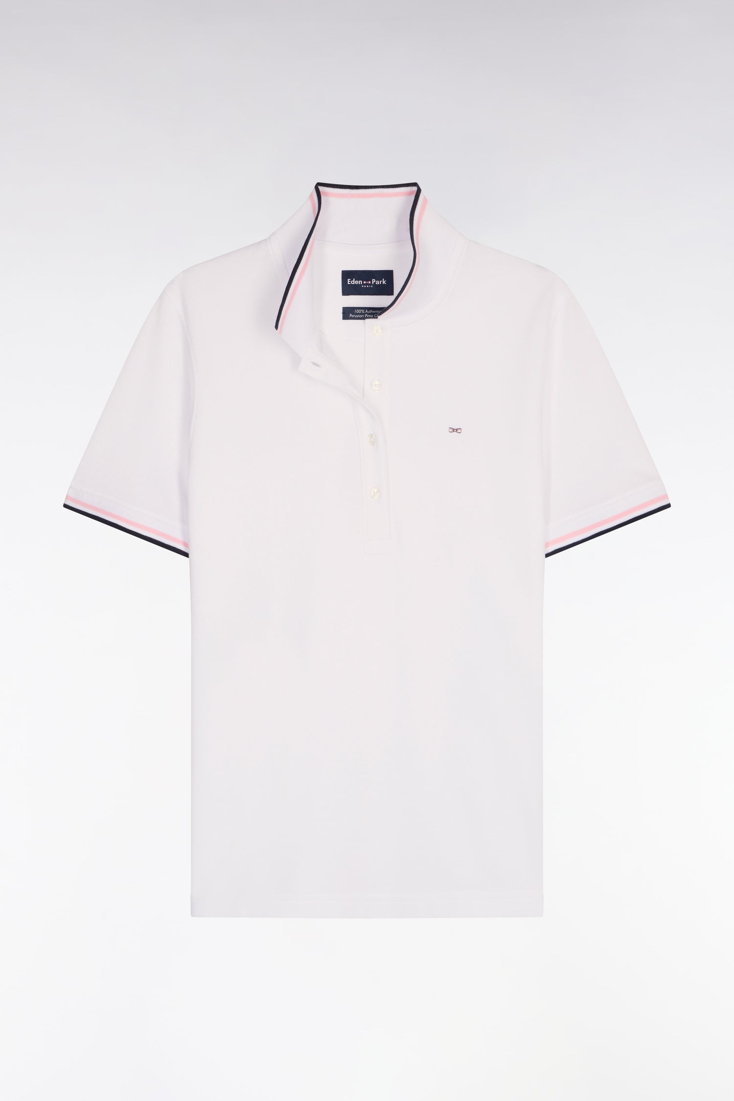 Ce polo à manches courtes en pur coton s’impose comme un incontournable du vestiaire féminin grâce à sa coupe droite confortable et son style sport chic assumé. Son emblème nœud papillon brodé sur la poitrine et ses finitions en bords-côtes à fines rayures au col et manches apportent une touche subtilement sportive et féminine. Décliné en plusieurs coloris doux ou plus contrastés, ce polo femme s’associe naturellement à un jean droit, un bermuda tendance ou pourquoi pas à notre jupe courte en denim pour une allure urbaine plus travaillée. Ce modèle est également offert dans une coupe slim plus ajustée pour s'adapter à toutes les envies et morphologies.