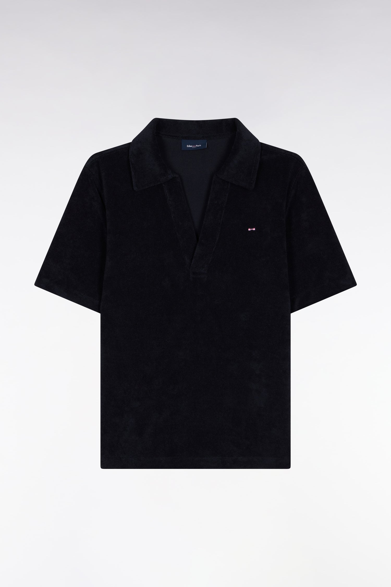 Ce polo féminin à manches courtes en coton éponge, proposé en blanc ou en marine, allie douceur estivale et style sport chic. Son toucher moelleux et sa coupe confortable en font une pièce idéale pour les journées ensoleillées passées de la ville à la plage. À porter avec le short assorti pour un ensemble coordonné et résolument moderne aux accents balnéaires.