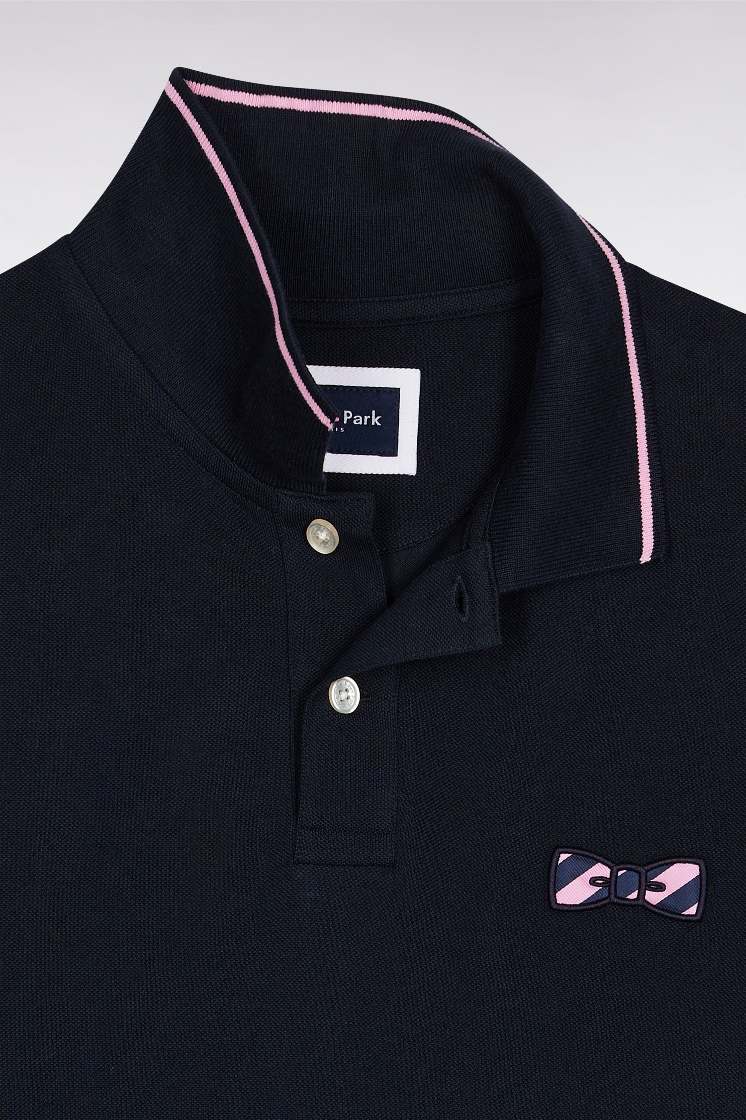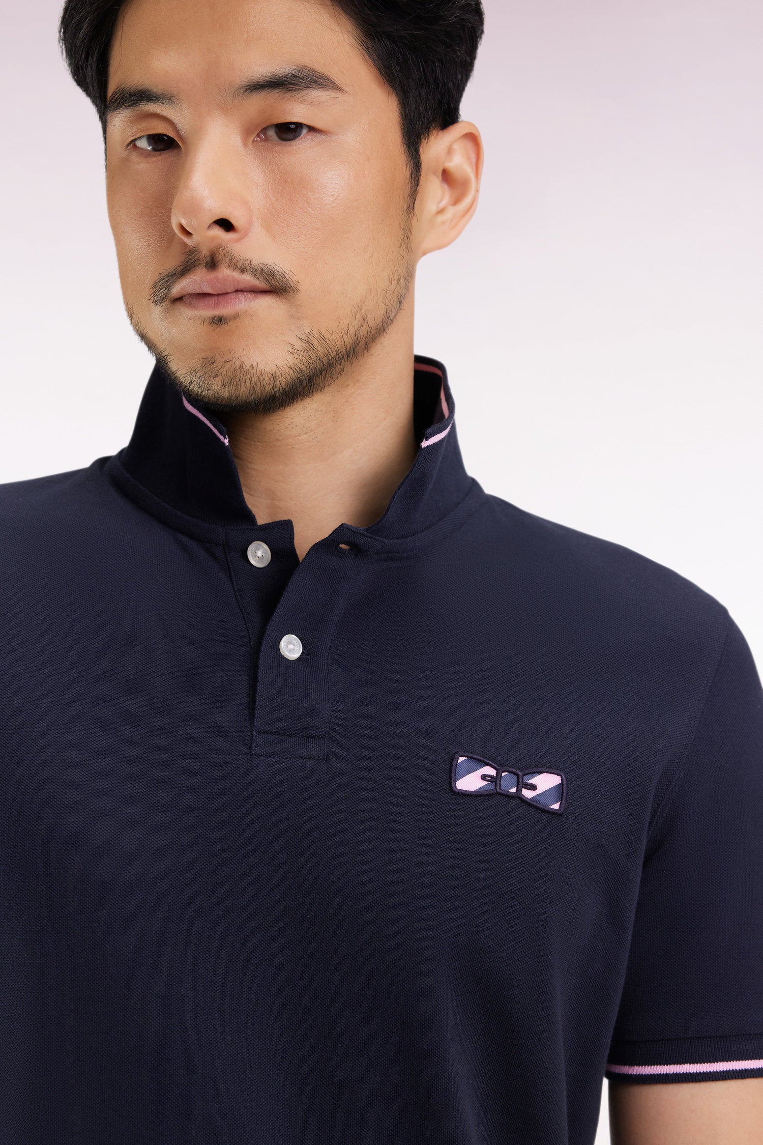 Contrasting collar and sleeve cuffs, elegantly highlighted with a stripe, add an athletic touch to this straight-cut men's polo. For added originality, this model features a large bow-tie embroidery accented with rugby stripes. With the same meticulous finishing as our iconic polo shirts, this cotton polo shirt in three color duos will surprise you with its versatility and comfort.