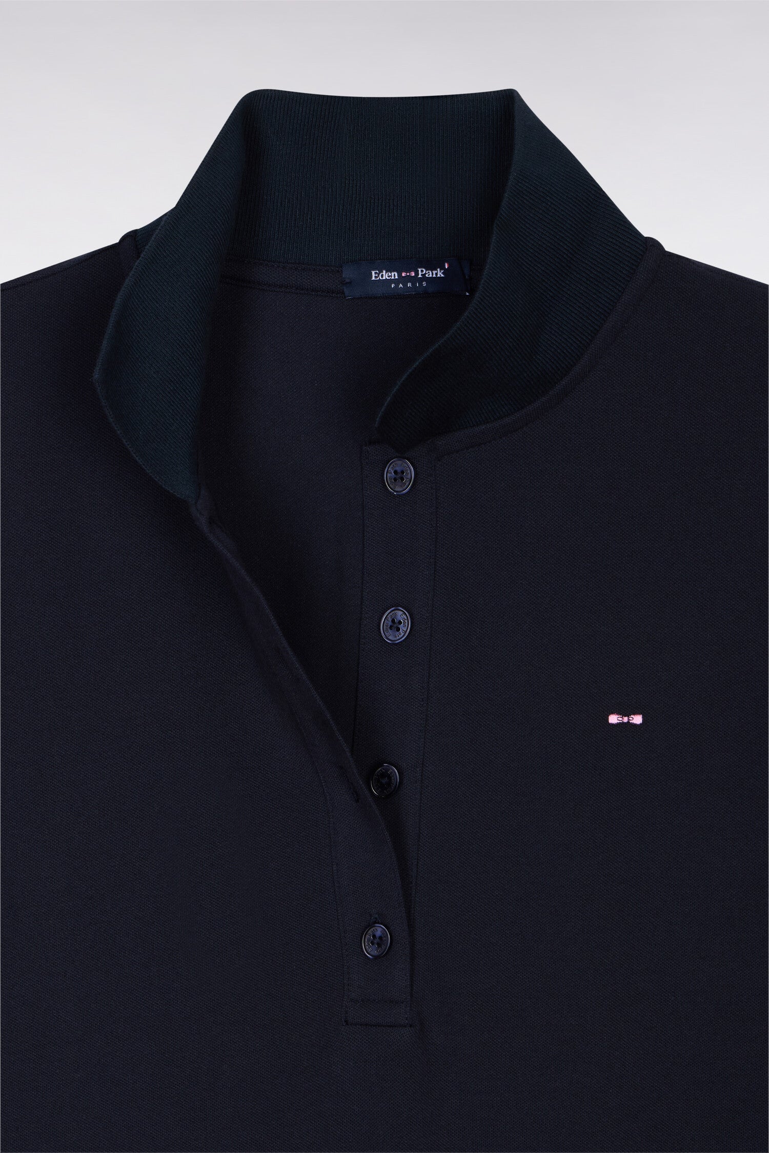 Ce polo femme à manches courtes confectionné dans un coton stretch doux et léger est disponible en coloris blanc, marine ou rose. Sa coupe slim plus cintrée assure une allure chic et sportive au quotidien. Ce modèle iconique arbore notre broderie signature : l'emblème nœud papillon Eden Park.