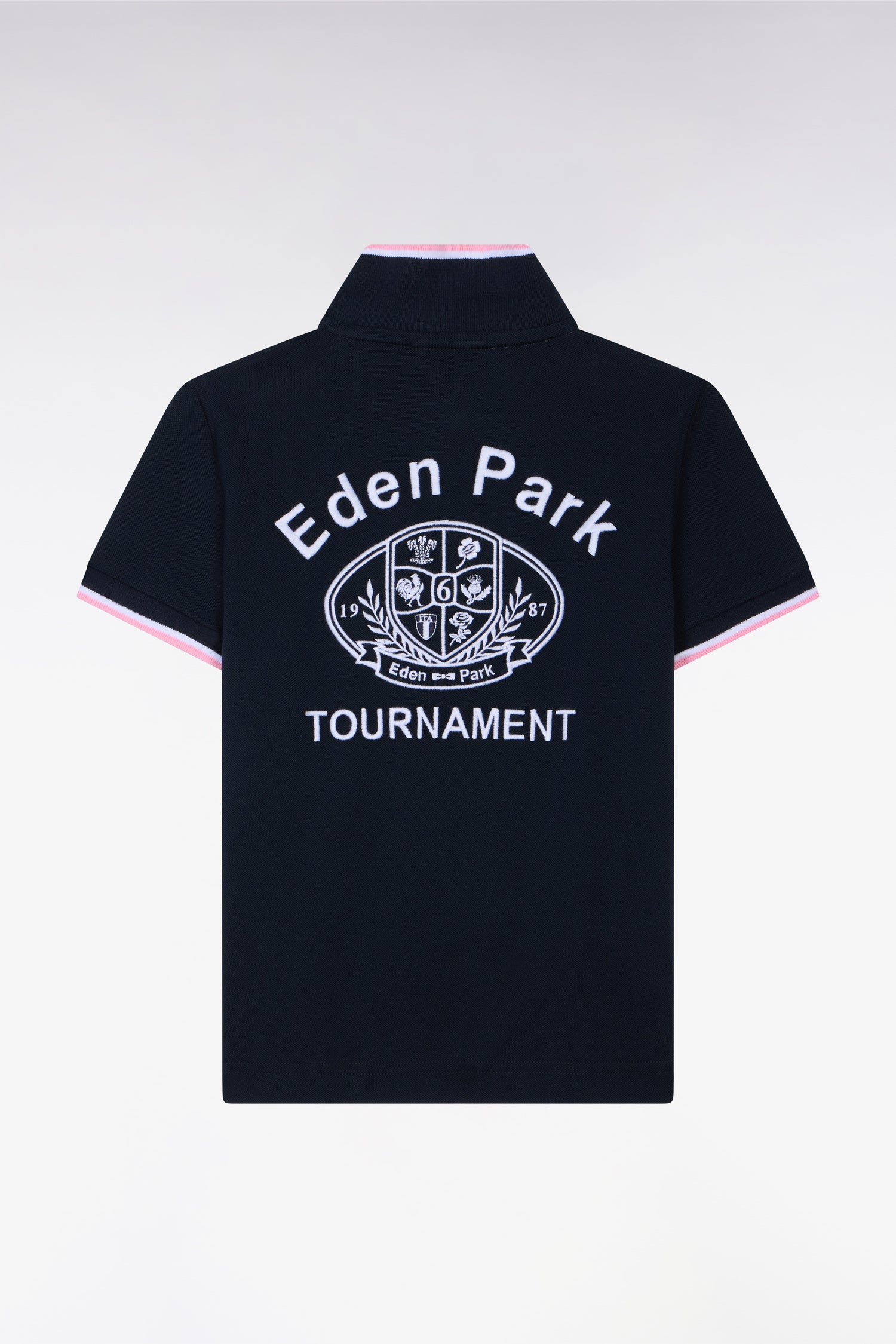 Ce polo à manches courtes en jersey de coton marine reprend les codes emblématiques du vestiaire Eden Park dans une version pensée pour les plus jeunes. Son col polo structuré, son nœud brodé poitrine et ses détails de bords-côtes tricolores lui donnent une allure sport chic. Confortable et facile à vivre, il accompagne les enfants dans toutes leurs aventures, de l’école au week-end.