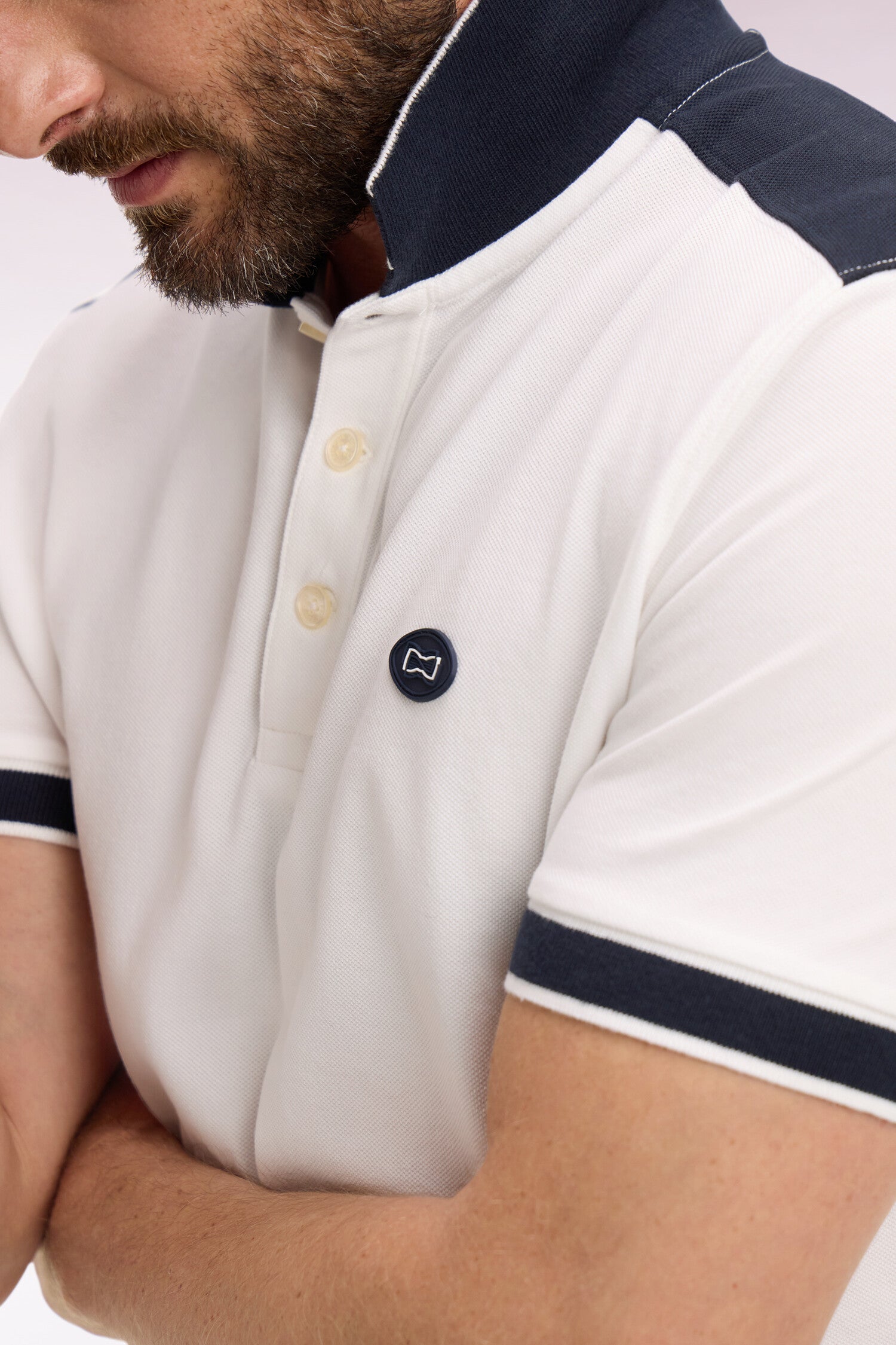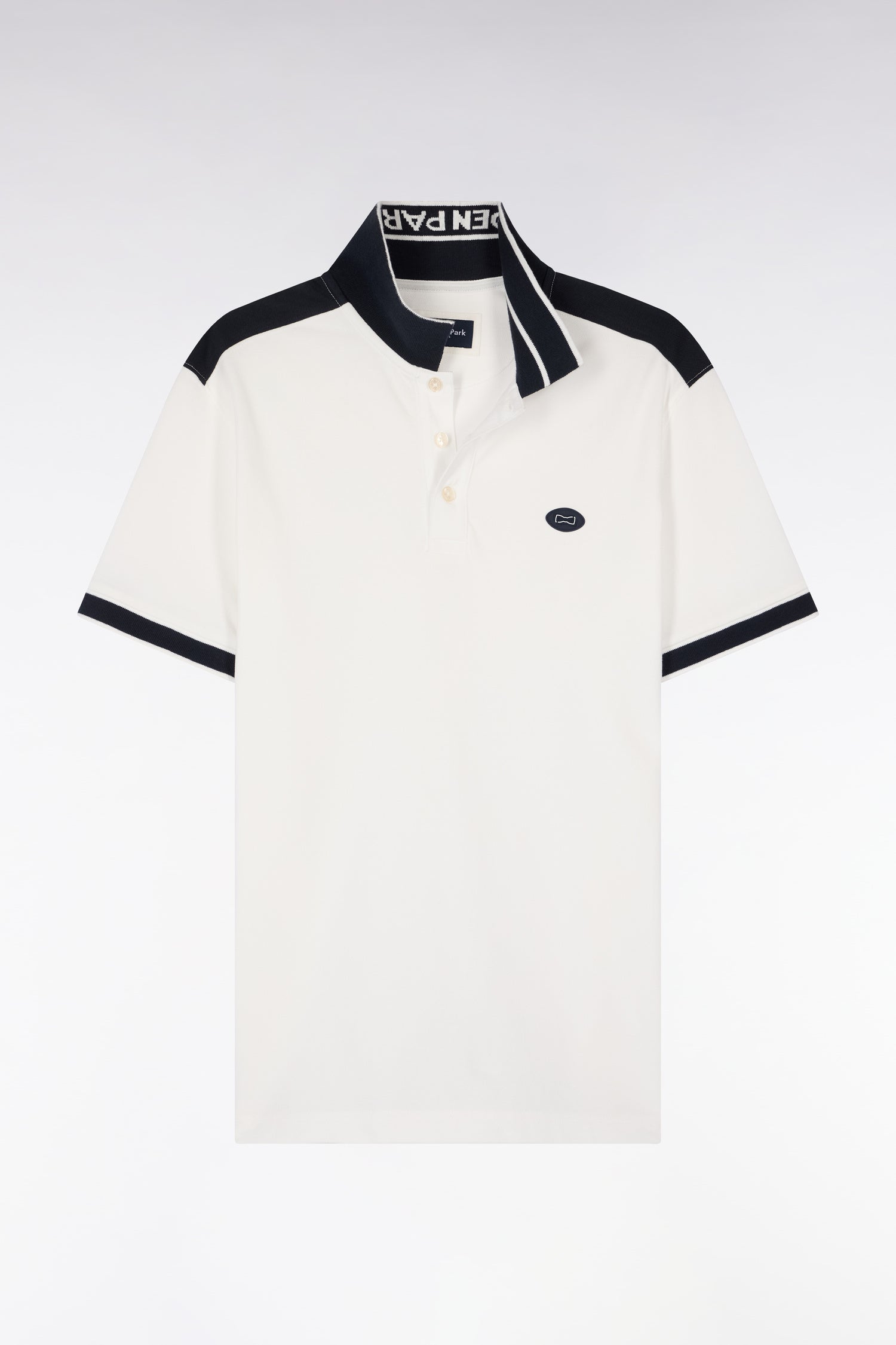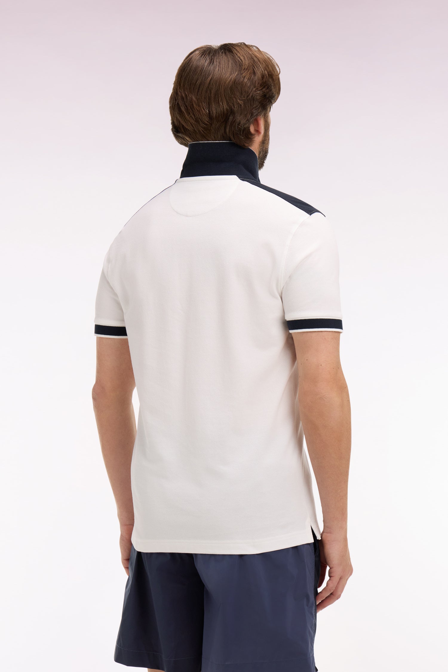 Polo à manches courtes en piqué coton blanc à découpes marine