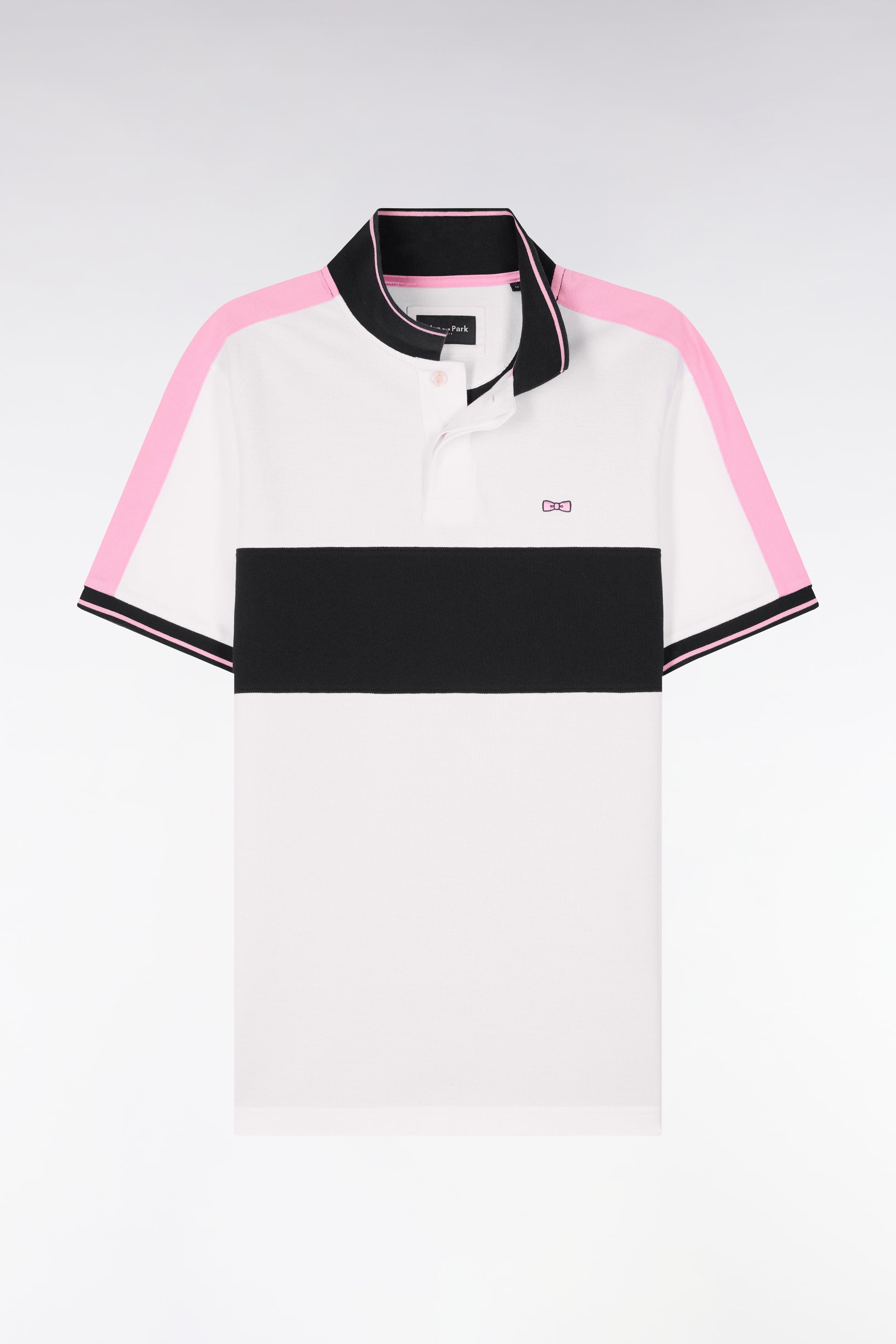 Polo à manches courtes en piqué coton blanc coupé cousu