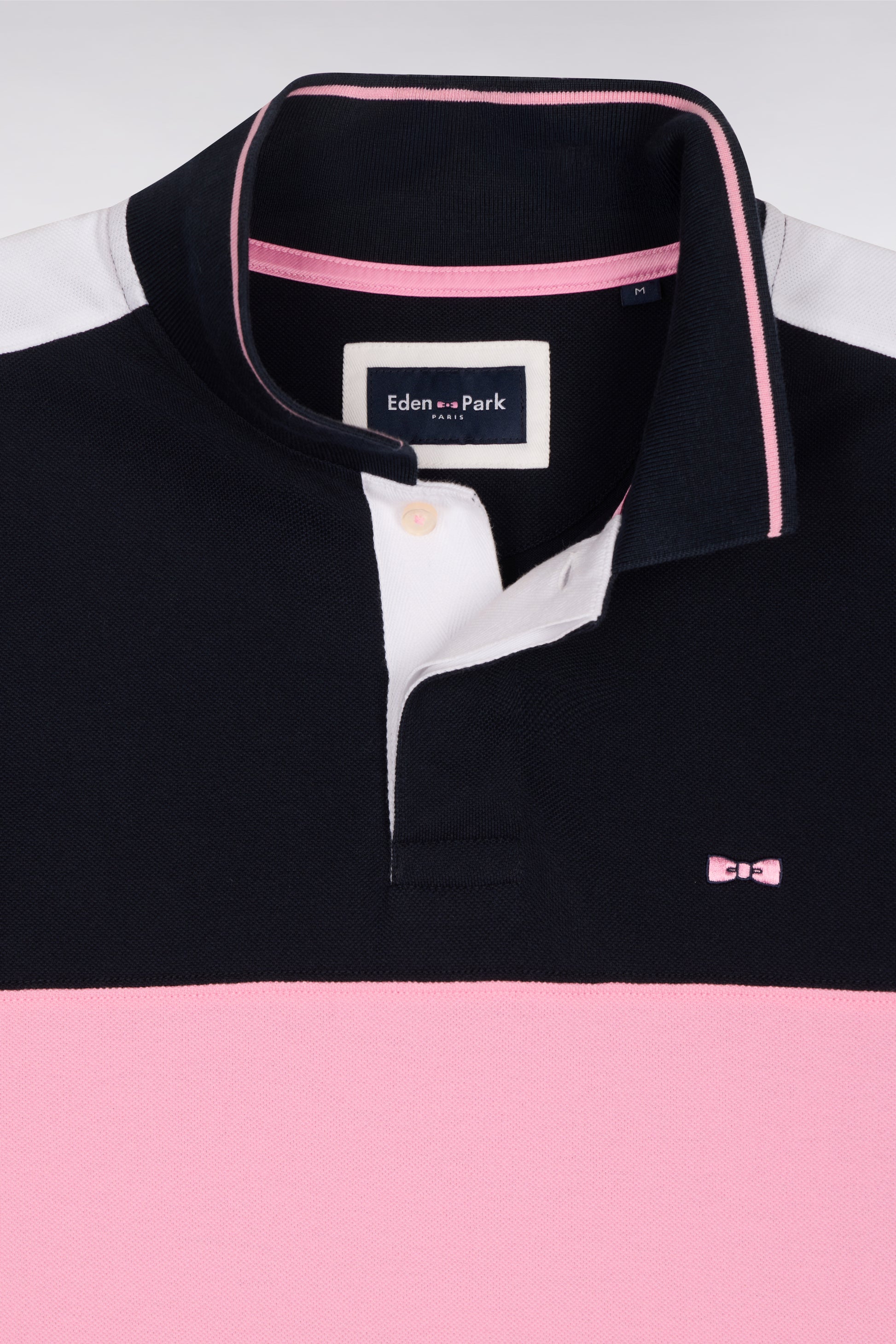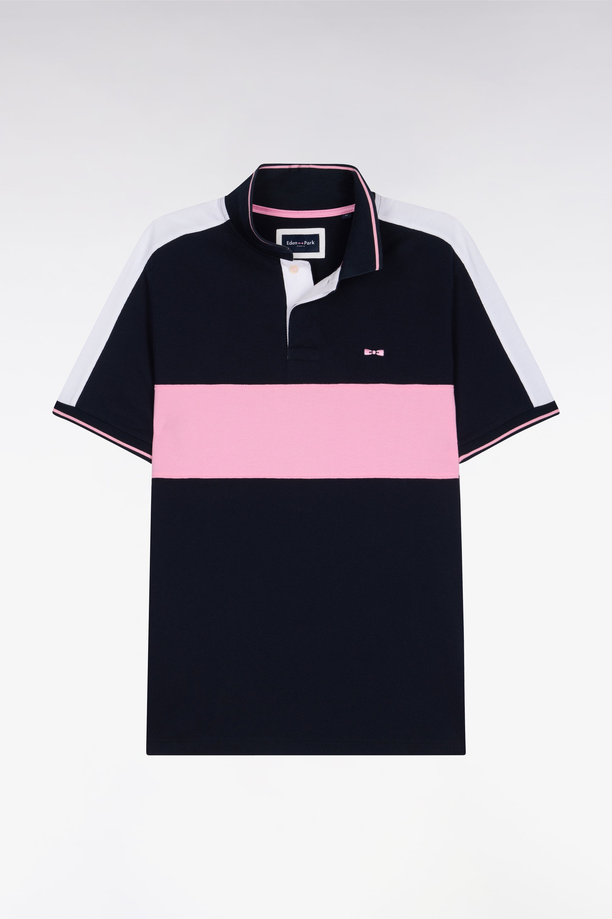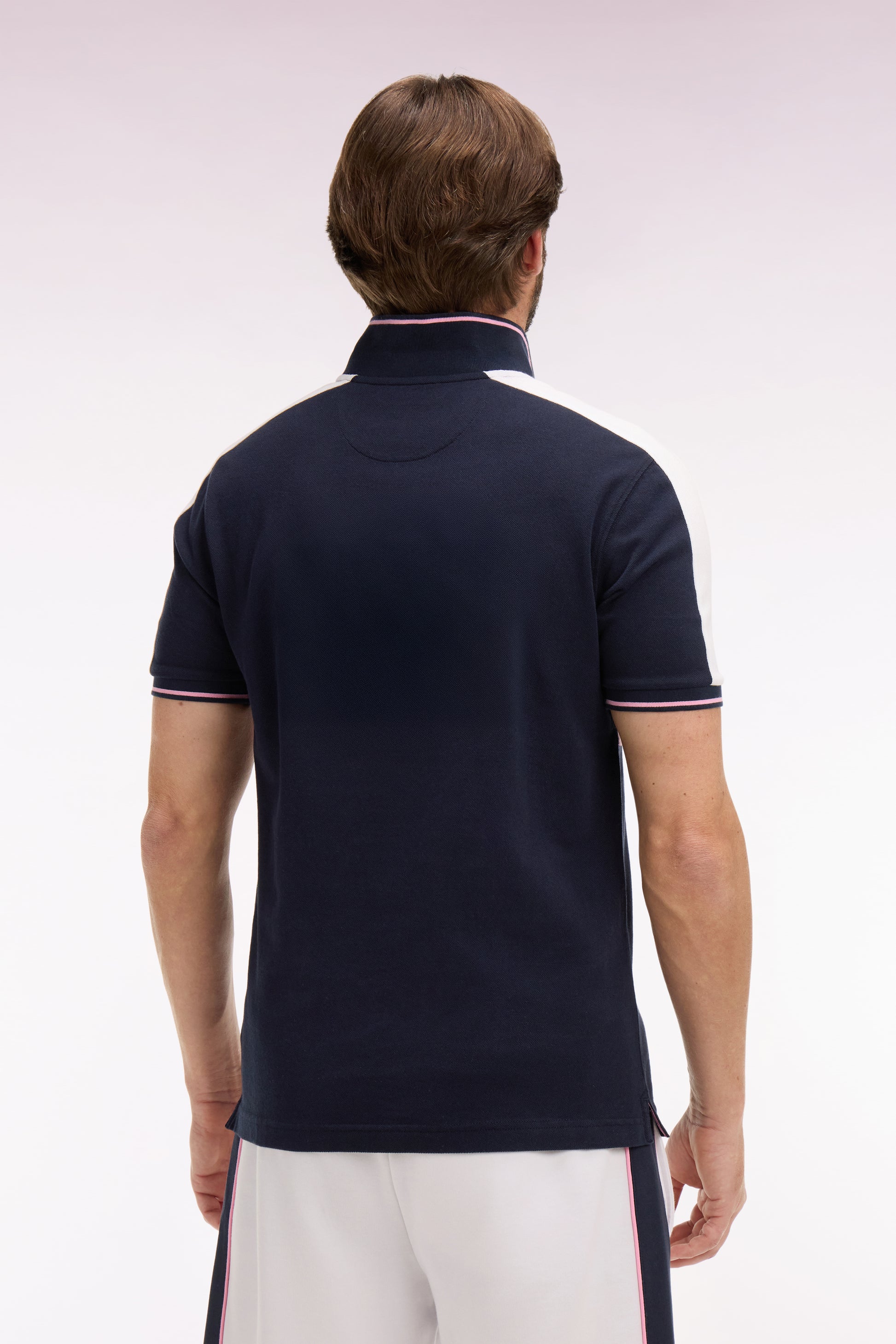 Ce polo en piqué de coton affirme un style sport chic grâce à sa large découpe horizontale sur la poitrine et sur la ligne d'épaule. Le col polo et les bordures de manches en bords-côtes rayés accentuent une allure dynamique qui célèbre l’héritage rugby de la Maison. Un modèle graphique et tendance pour l'homme moderne.