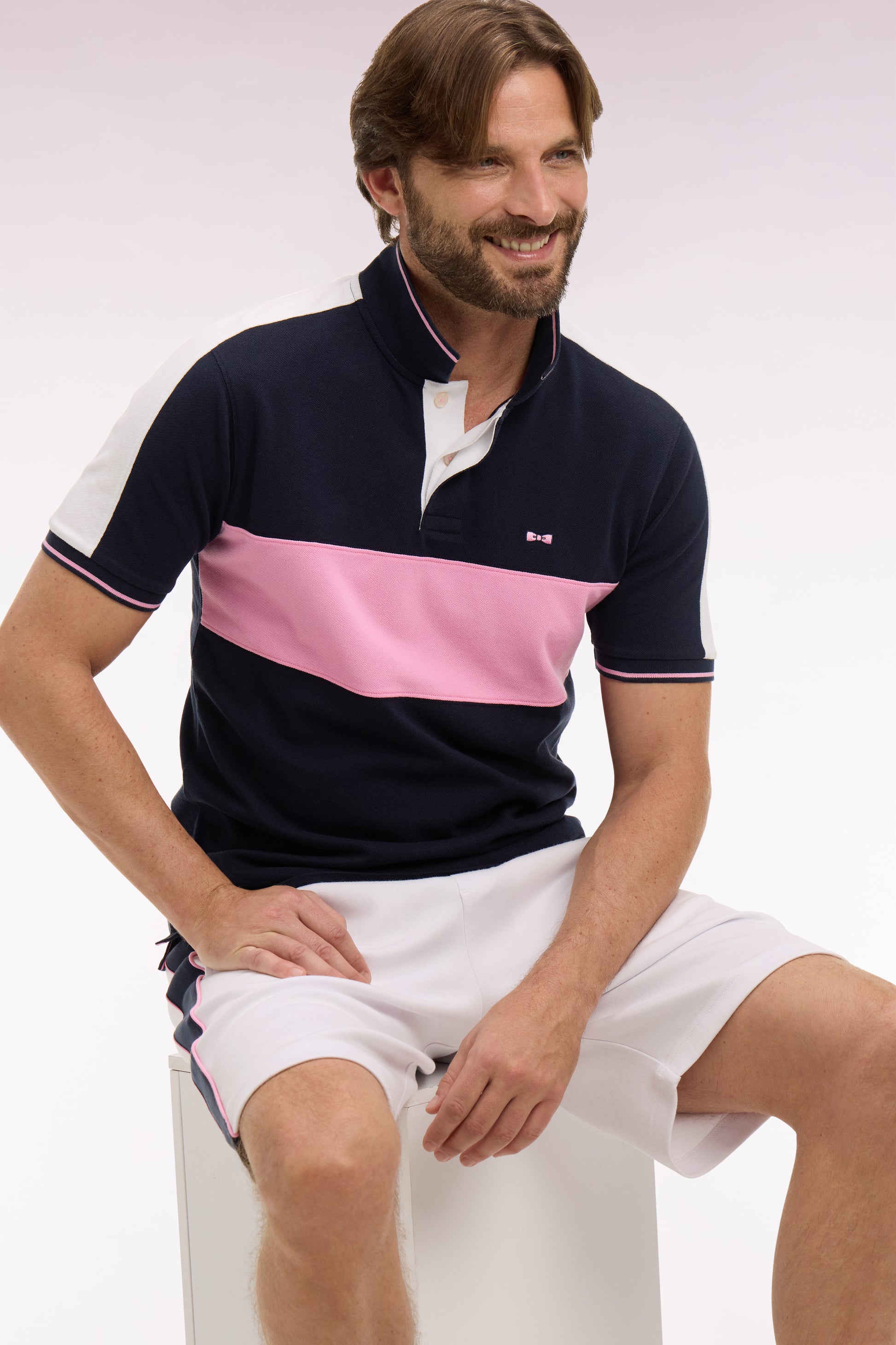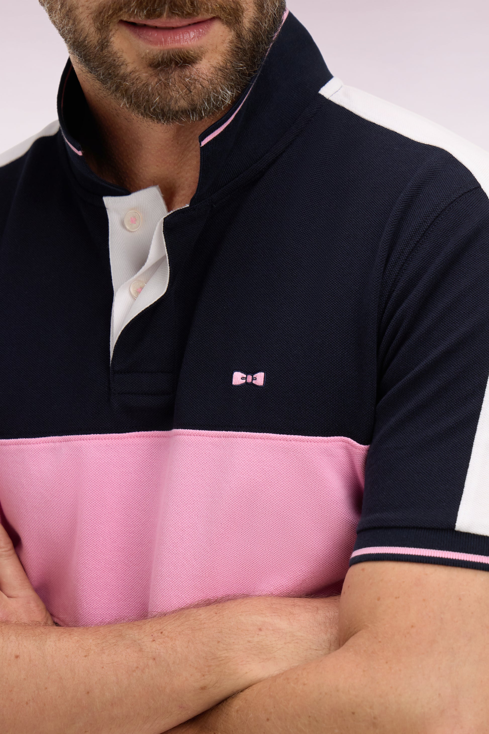 - Col polo en bords-côtes rayés