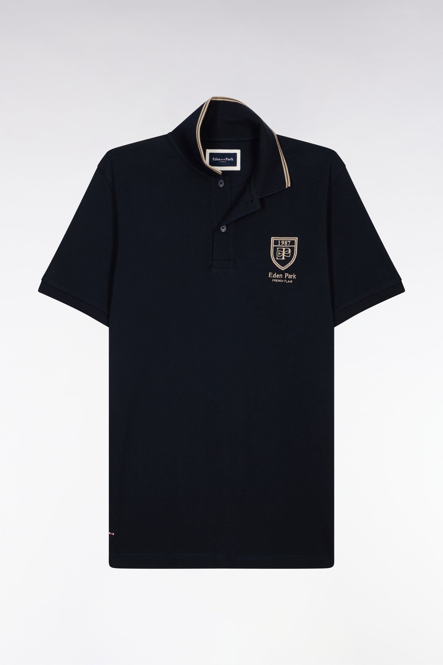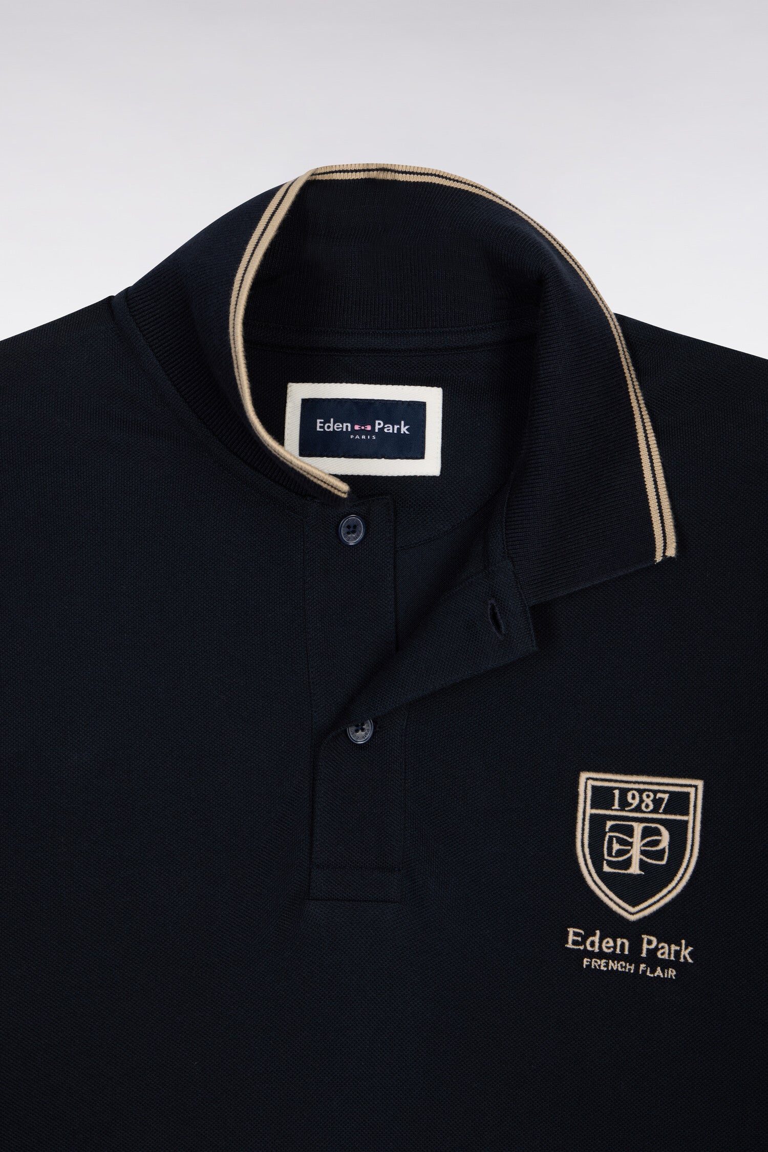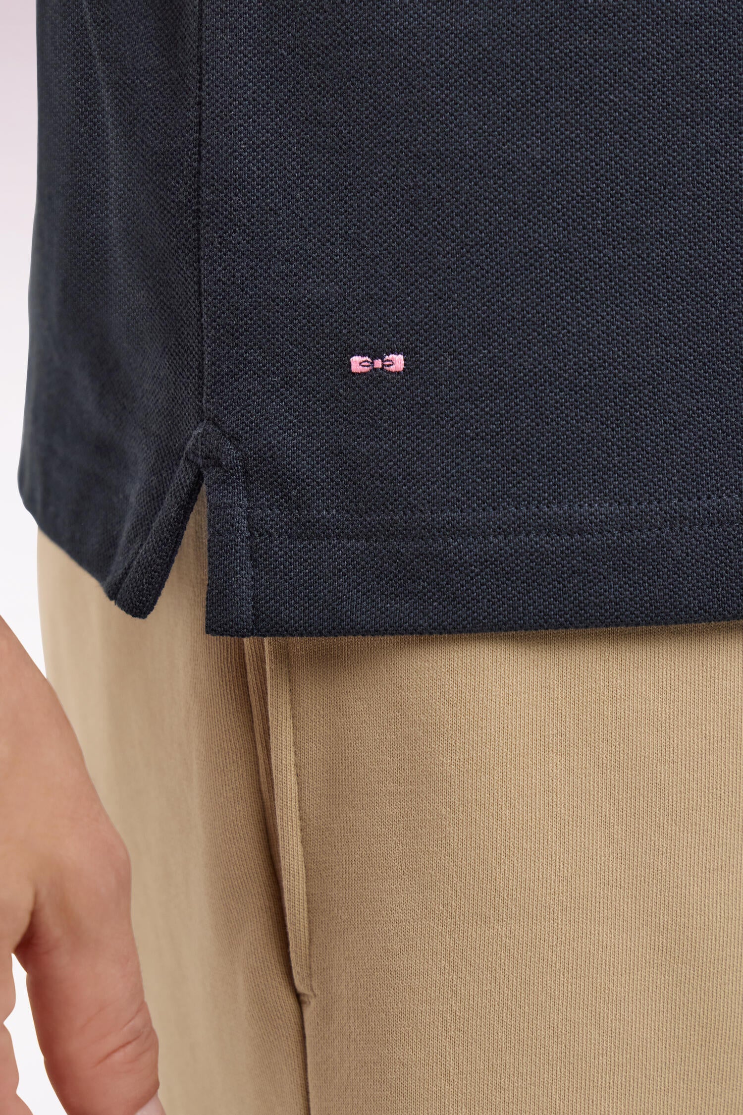 Ce polo en piqué de coton s’impose comme une pièce raffinée du vestiaire sport chic grâce à son écusson poitrine réalisé dans un esprit Ivy League, clin d’œil à une esthétique quiet luxury très actuelle. Sa coupe regular droite et son col polo marine finement rayé, prolongé par une patte de boutonnage assortie, apportent structure et élégance, tandis que les bas de manches en maille unie renforcent une allure plus habillée. Décliné dans des coloris pastel intemporels, il se porte aussi bien avec un short coordonné qu’avec un jean brut, selon l’allure recherchée.