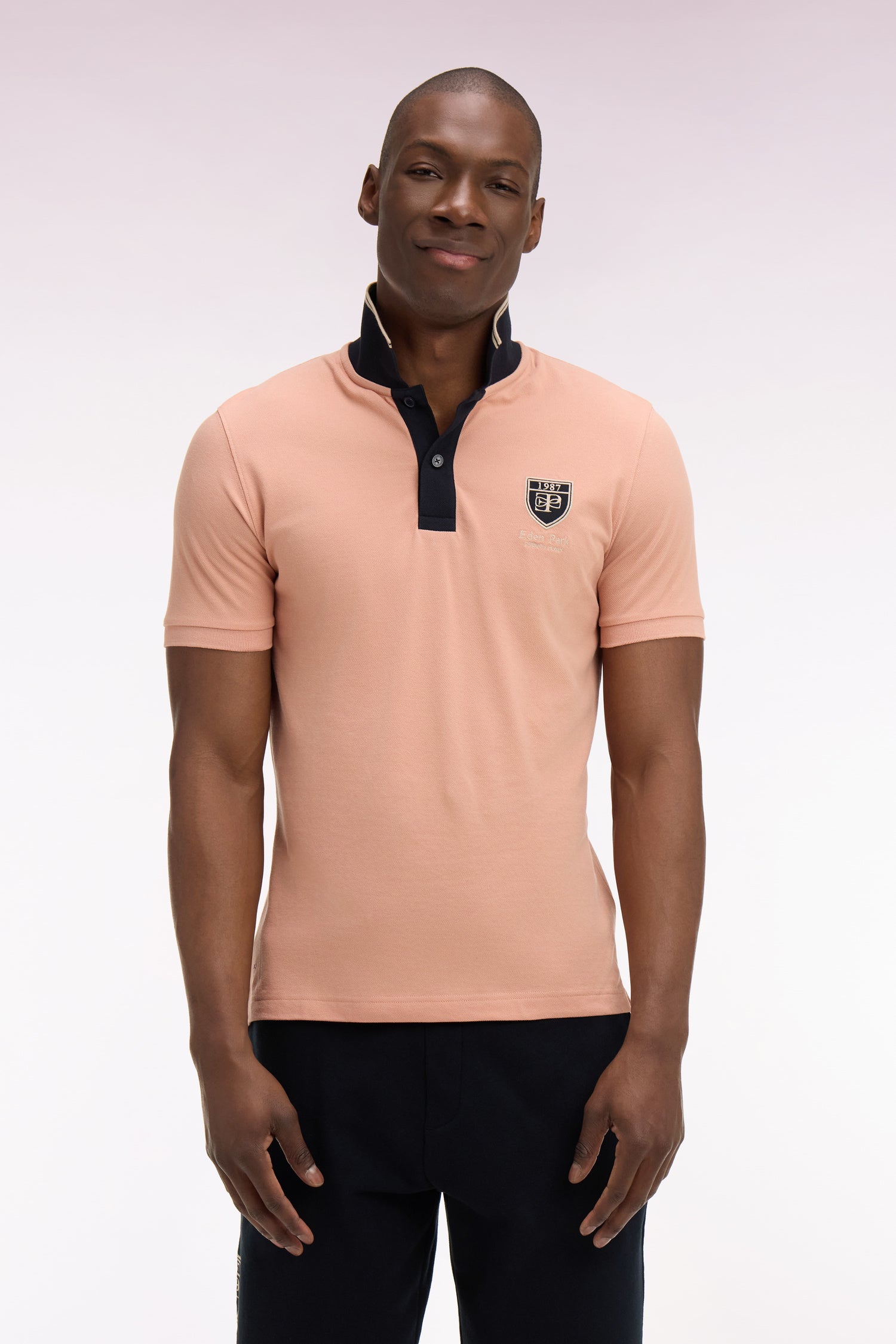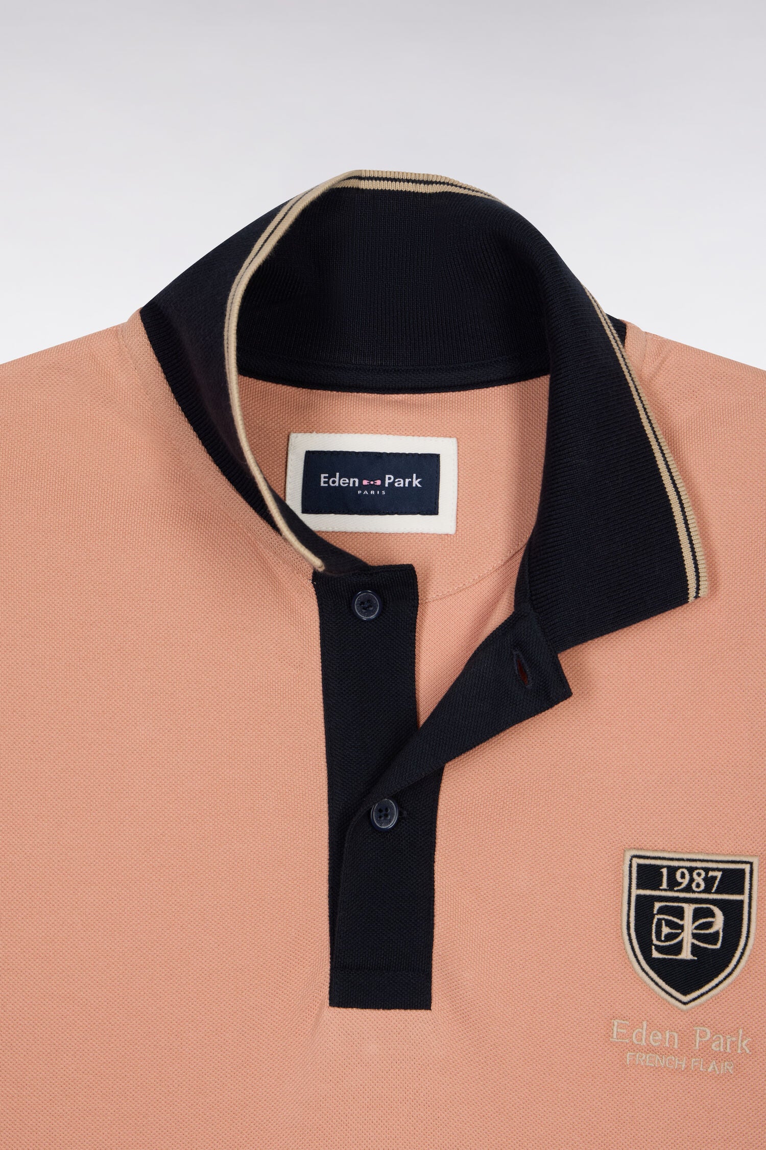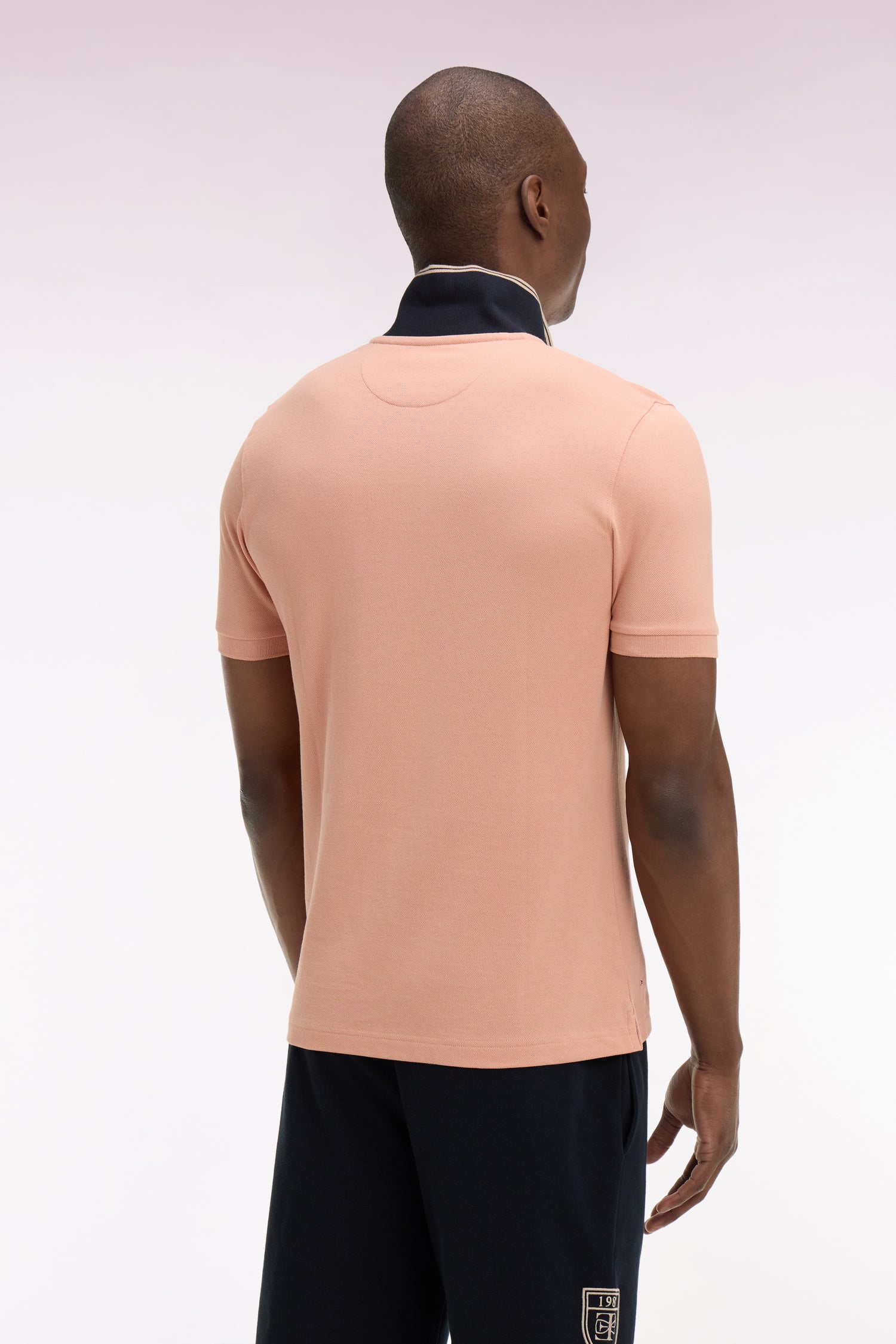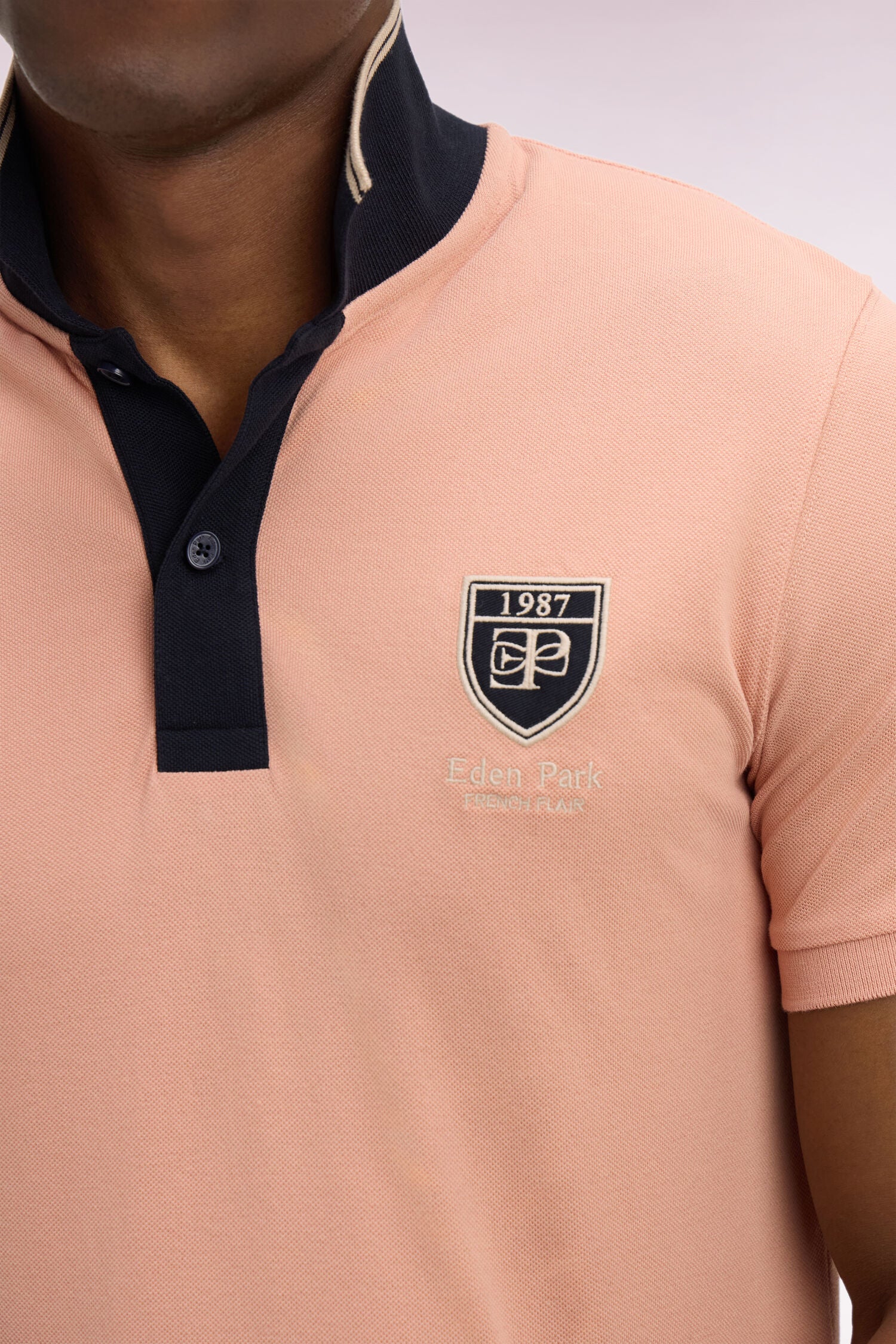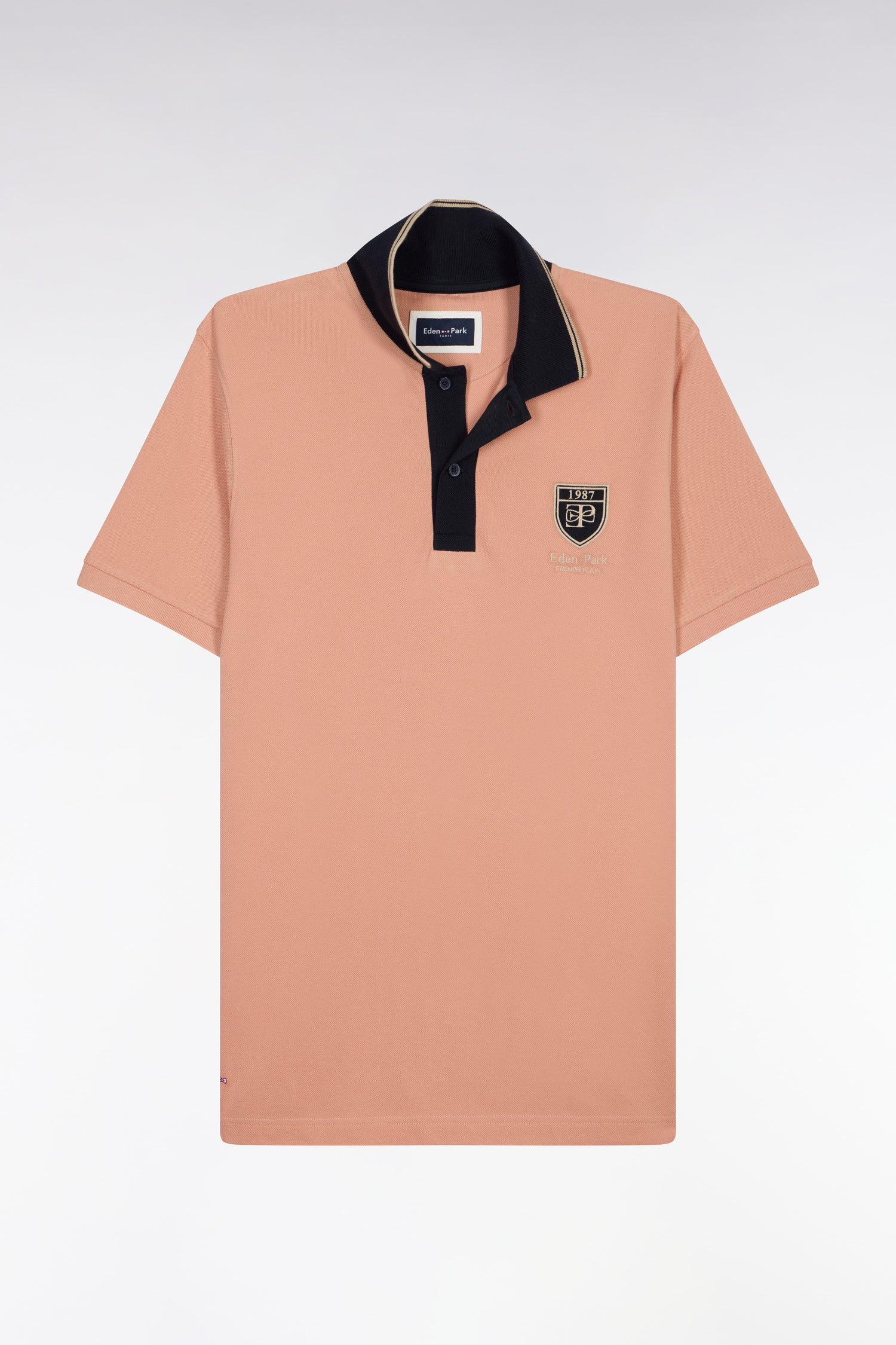 Polo à manches courtes en piqué coton saumon écusson EP