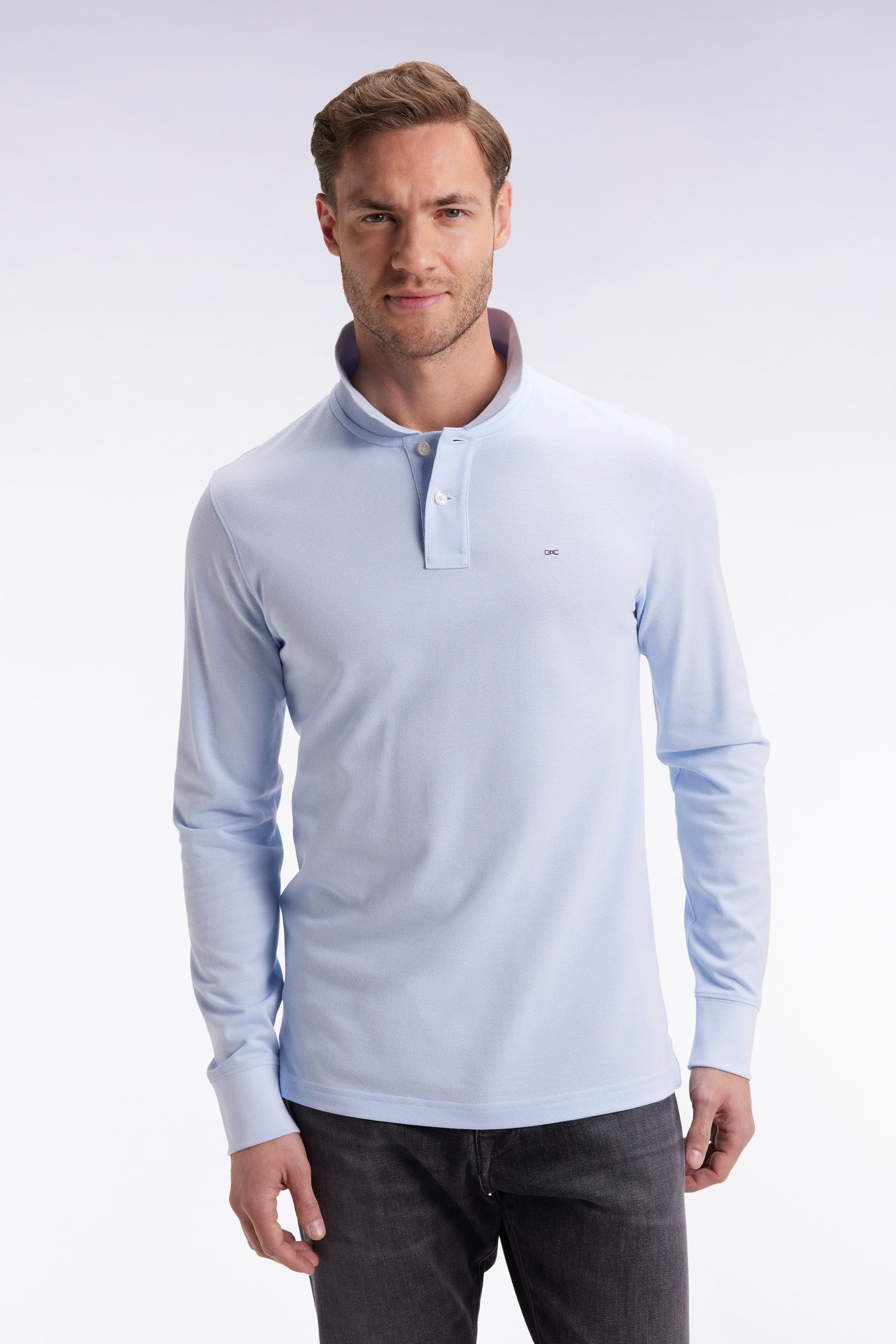 Long-sleeved polo shirt in straight-cut sky Pima cotton