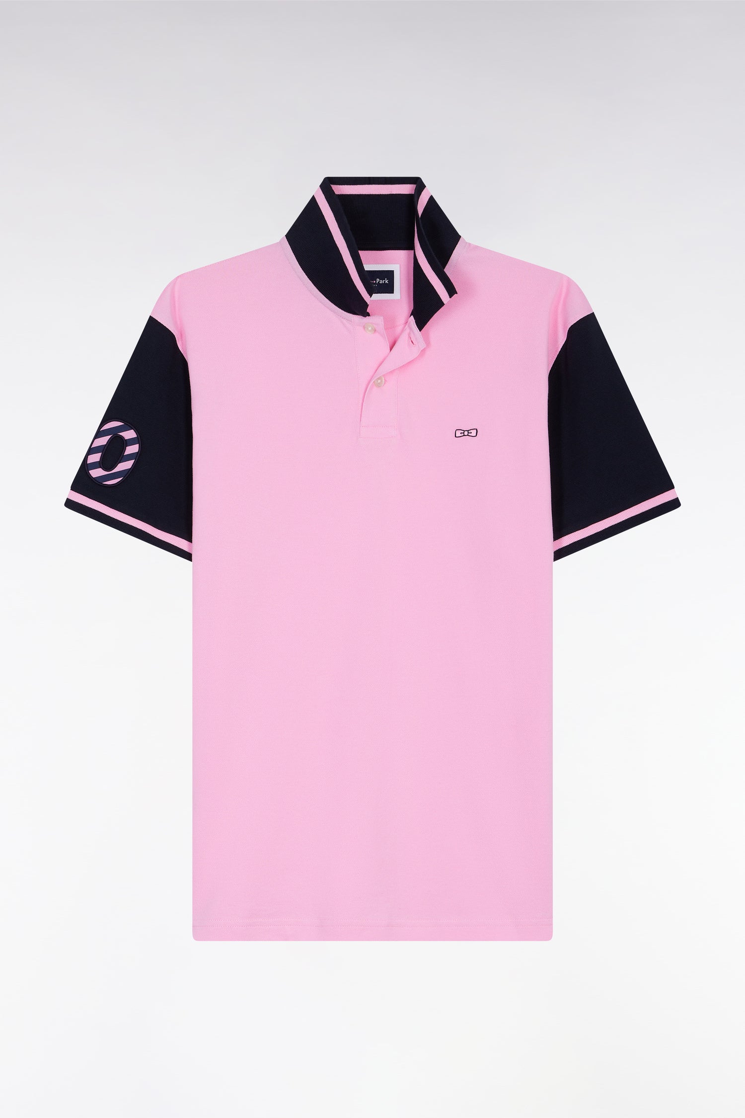 Two-tone short-sleeved polo shirt in pink cotton with 10" embroidery