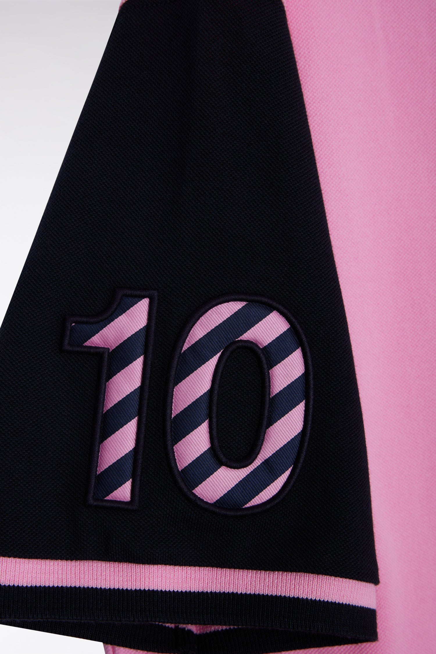 Made in pink cotton with navy-blue collar and sleeves, or in an ecru and black version, this short-sleeved men's polo shirt features a contrasting stripe on the ribbed trim and N°10 embroidery on the sleeve using striped tie fabric. This number, a reminder of the jersey worn by the founder of Eden Park for the national team, will prove a formidable good luck charm for never sitting on the sidelines in style. Lightweight and comfortable, this polo will accompany you in all seasons.