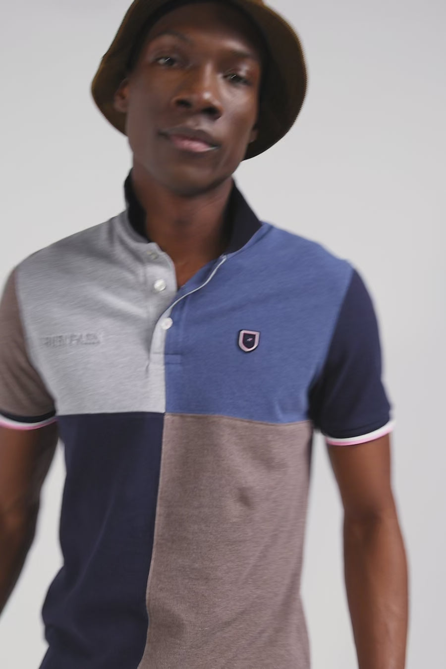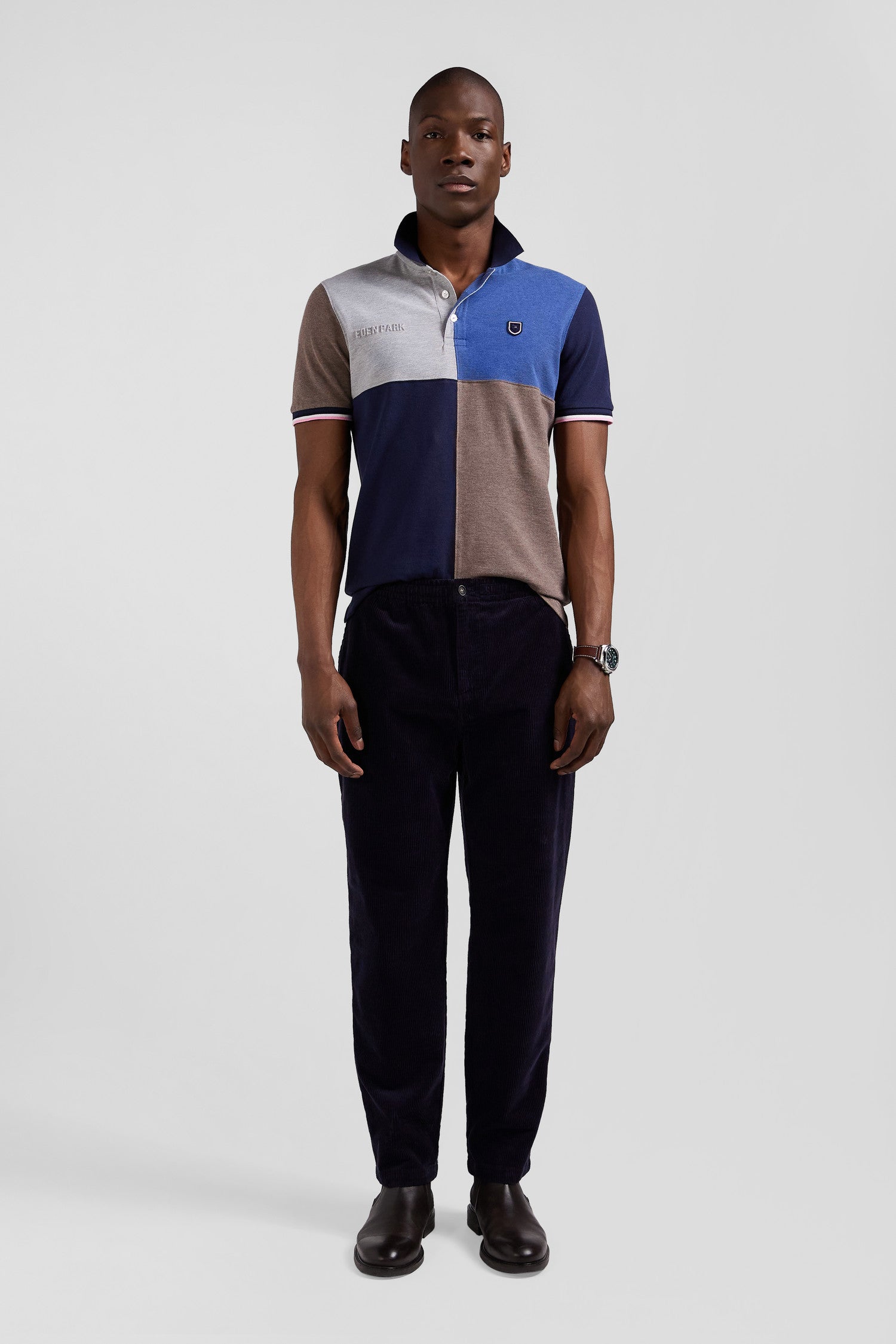 Our cut and sewn short-sleeved polo shirt, in which four colors are combined in a sophisticated play of dials, is a must-have for men's wardrobes. Available in light blue and dark blue mottled, this men's polo shirt in comfortable cotton piqué offers a dynamic, modern touch to your silhouette. Designed for those who want to combine character and comfort, this polo is perfect for a casual yet distinctive look.