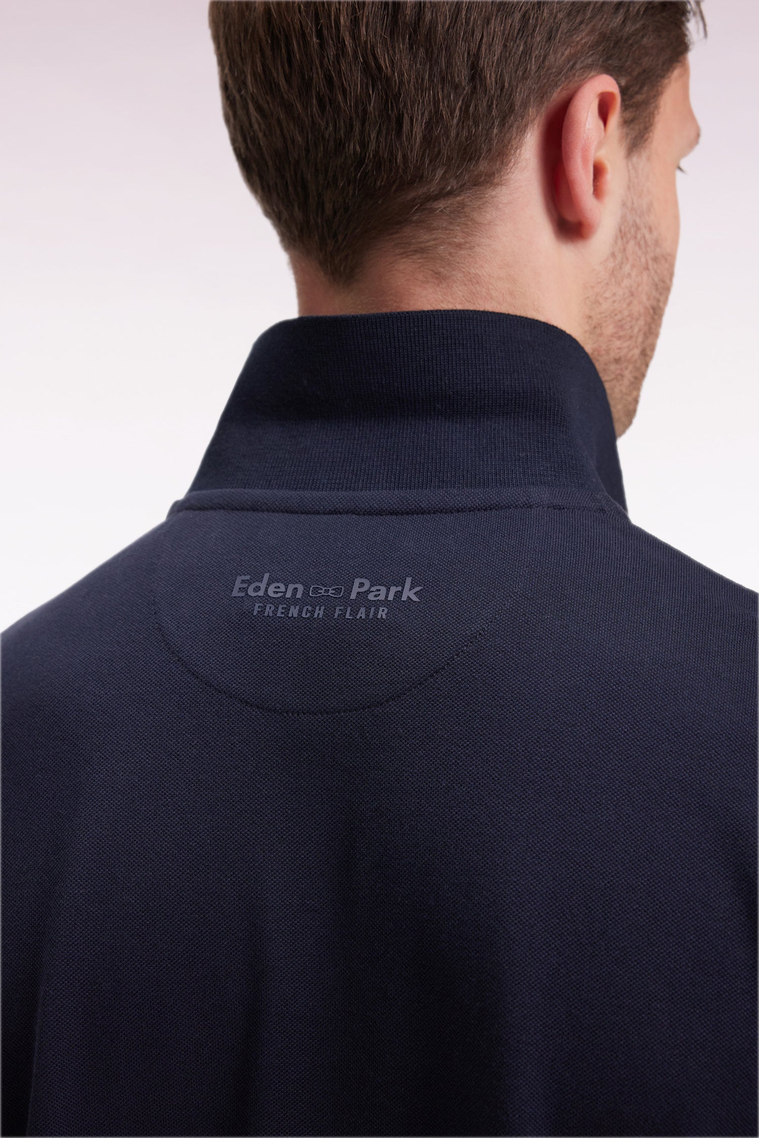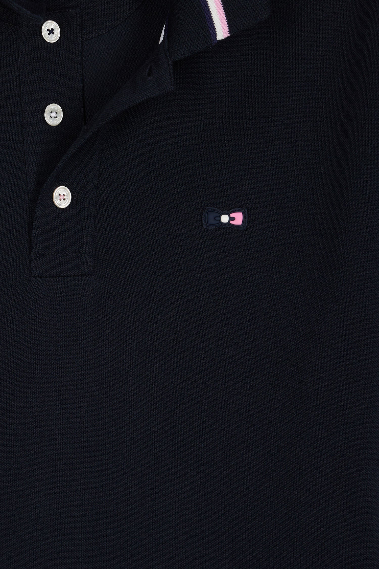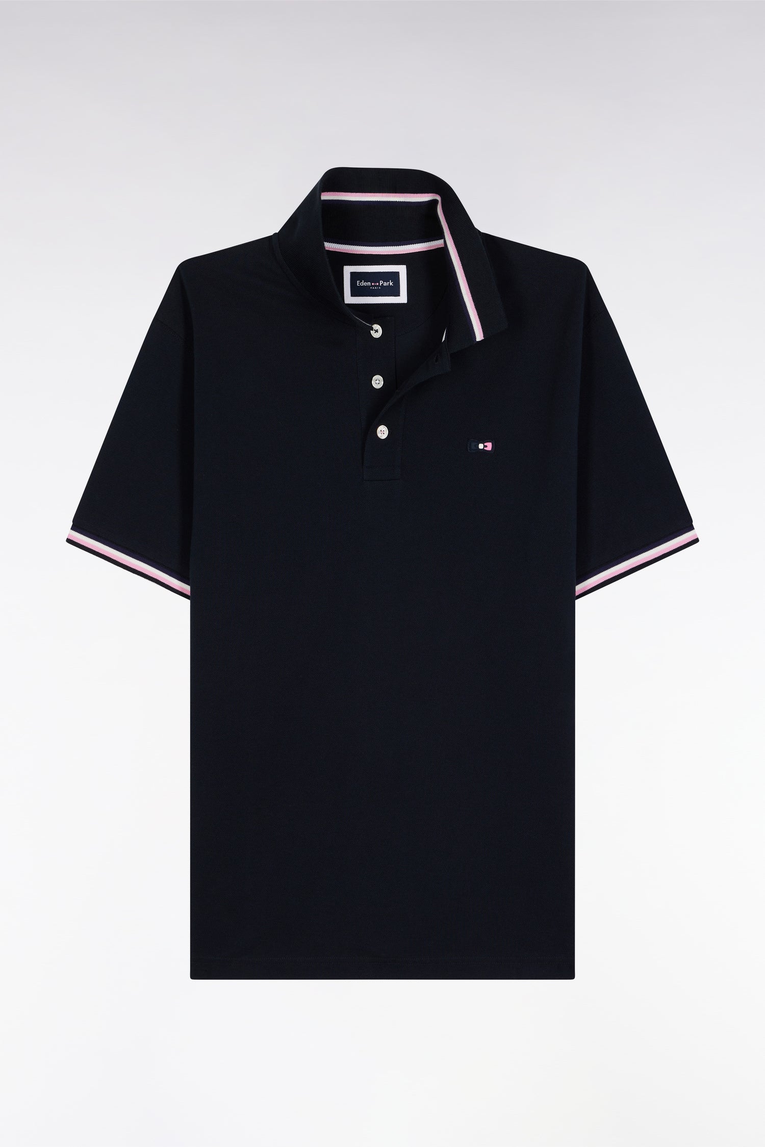 This short-sleeved polo revisits an Eden Park wardrobe classic with elegance and simplicity. Crafted in soft cotton, it features three-tone ribbing that emphasizes the sleeves with a graphic touch. Its straight cut and navy or black colors make it easy to wear, from everyday to casual weekends. Wear alone or under a light jacket