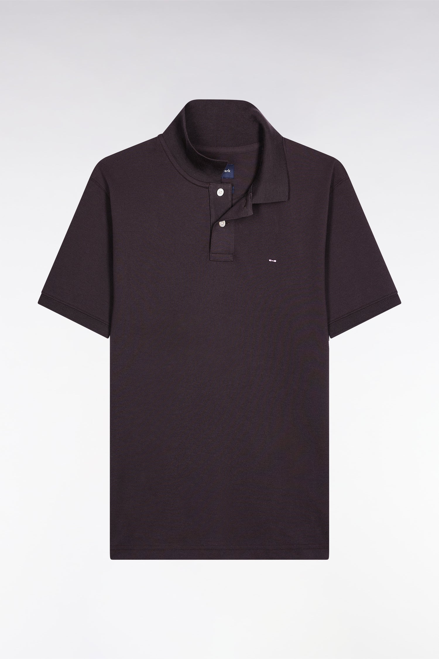 Short-sleeved polo shirt in brown Pima cotton, straight cut