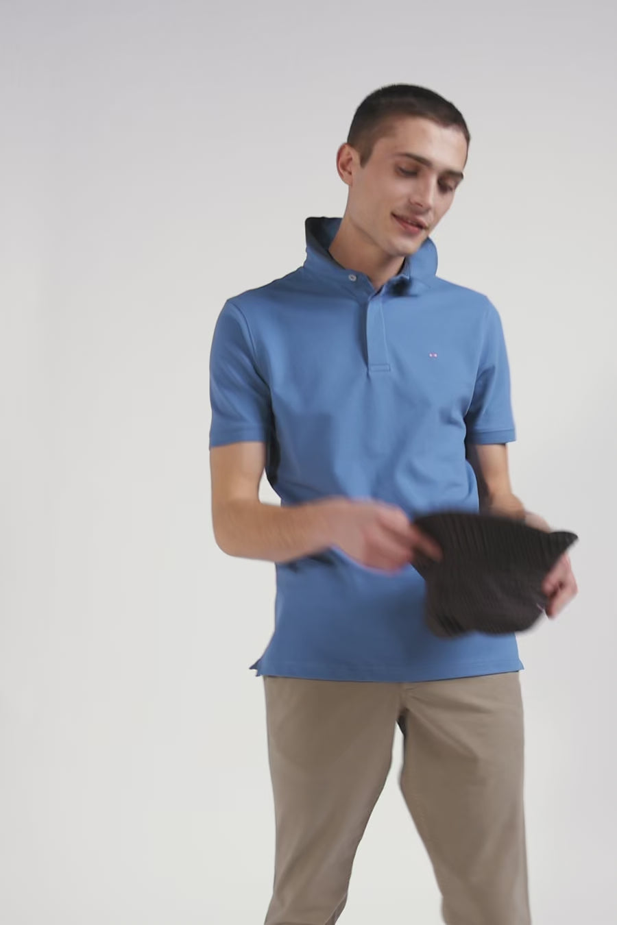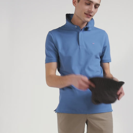 Slim blue short-sleeved stretch cotton polo shirt