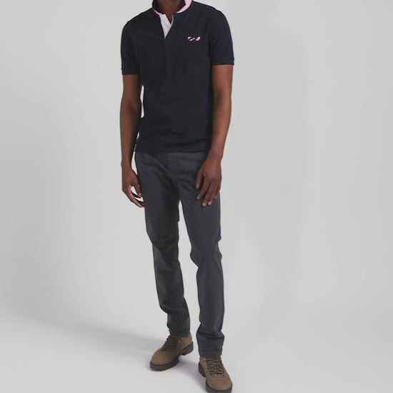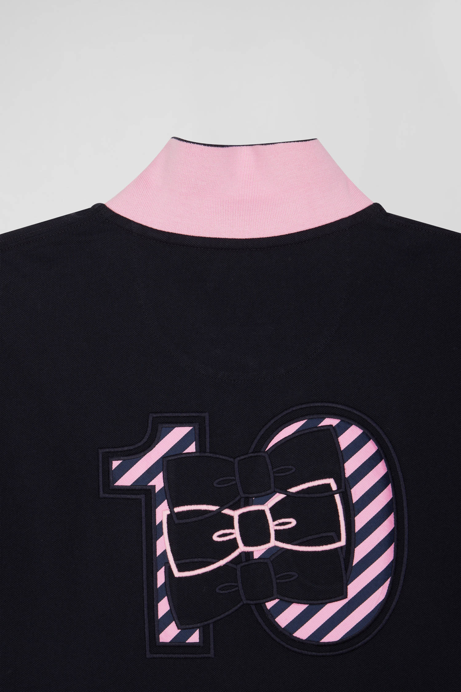 This men's cotton polo shirt is a refined, casual piece, perfect for everyday chic. Its straight Regular fit offers comfort and ease, while the distinctive chest embroidery and pink and navy hoop tie fabric appliqués add a touch of originality. Finishing details, such as the oval rugby buttons and plain lining, testify to our Maison's attention to every detail.