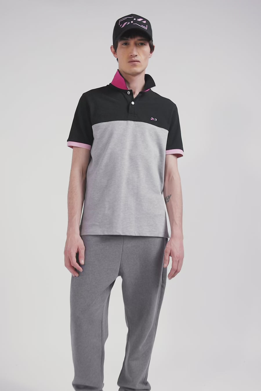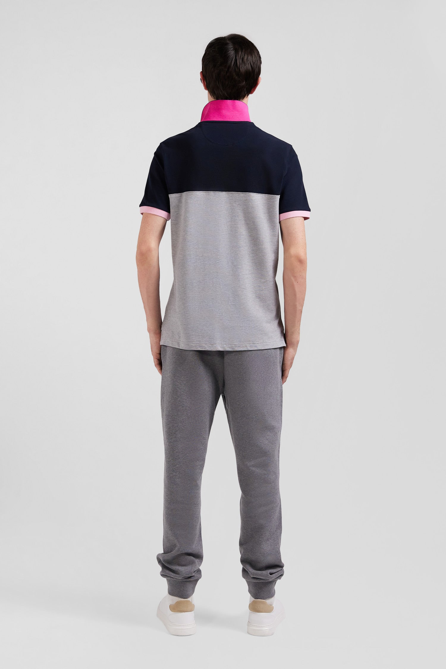 Regular grey short-sleeved cotton piqué polo shirt with bow tie embroidery and contrasting details