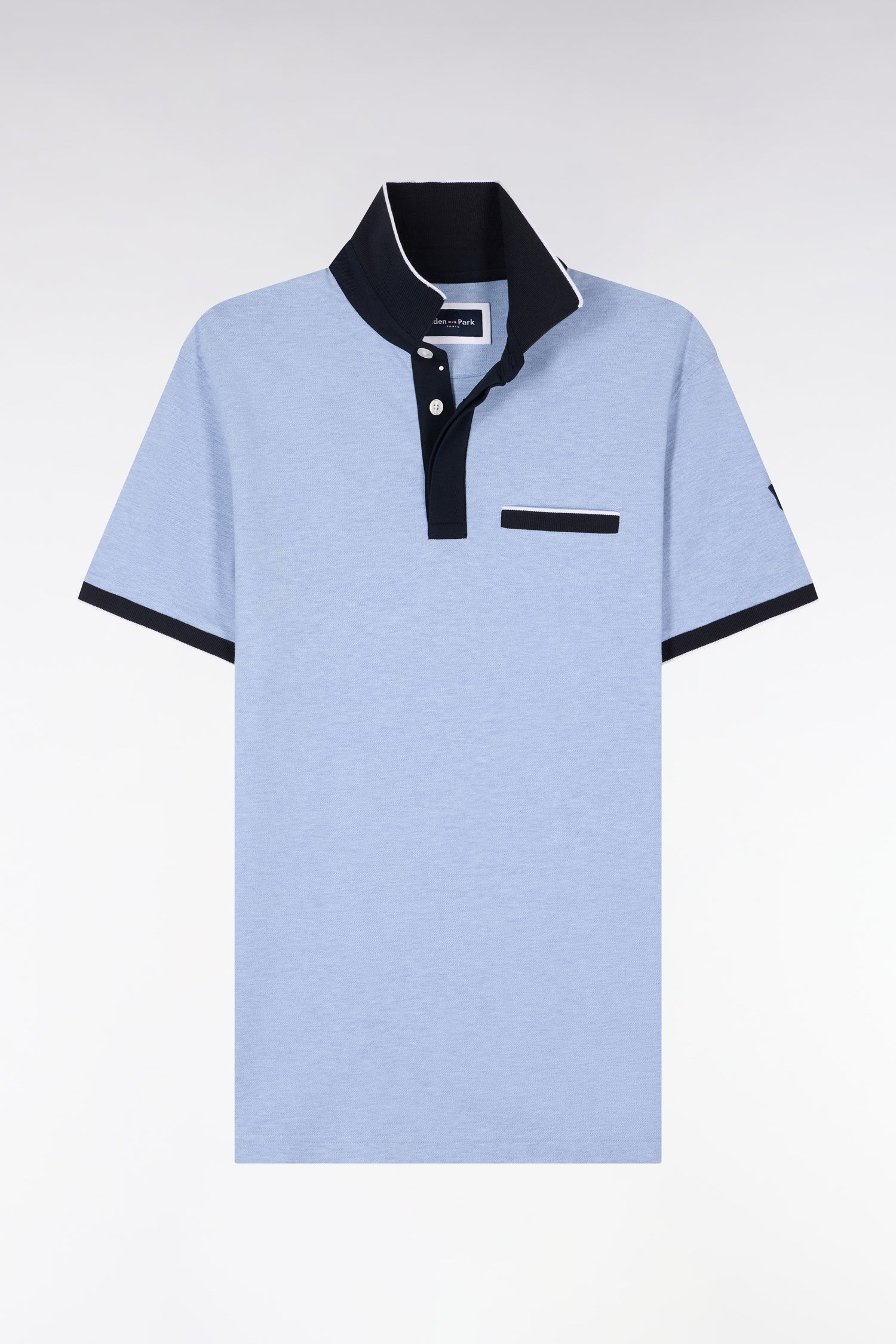 Polo manches courtes en piqué coton stretch ciel coupe slim