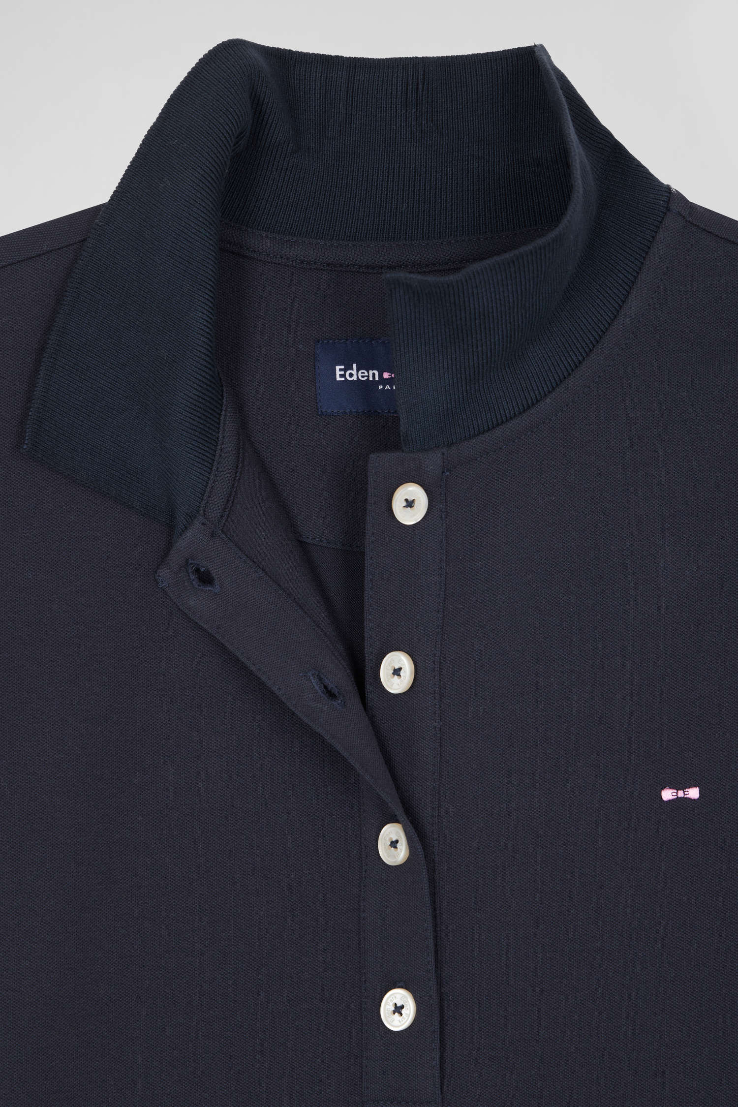 The Eden Park women's short-sleeved polo shirt in fitted stretch cotton has become a benchmark. This solid-colored model with a slim, slightly fitted cut is distinguished by the quality of its cotton piqué and the care taken with its finishings for a fitting fit and timeless elegance. Choose your favorite color from this season's selection to match with jeans or dressier pants as you please.