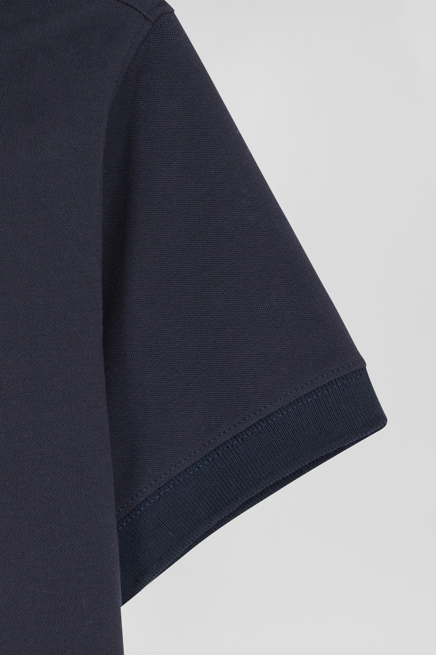 Slim navy blue plain stretch cotton short-sleeved polo shirt