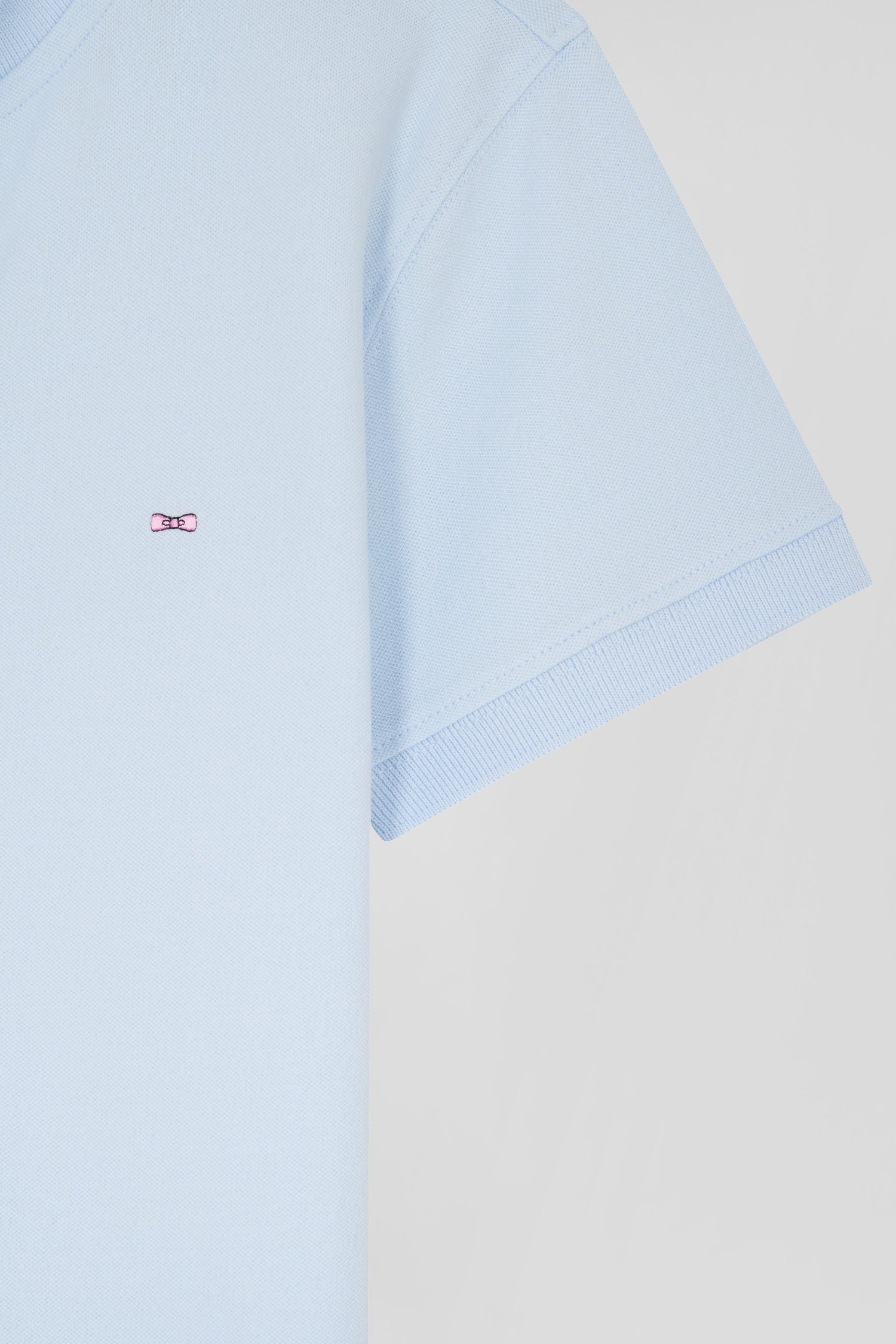 Slim sky blue plain stretch cotton short-sleeved polo shirt