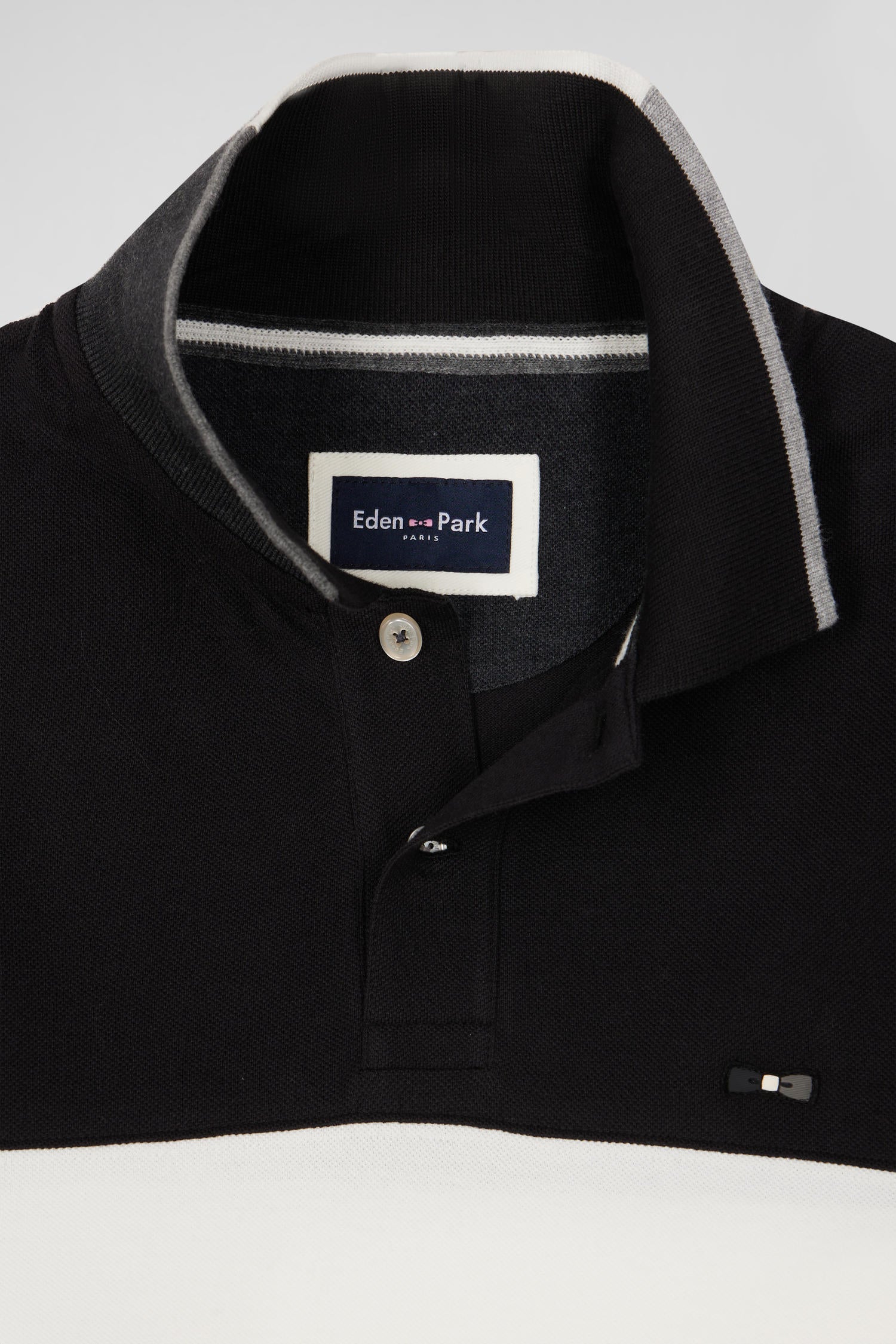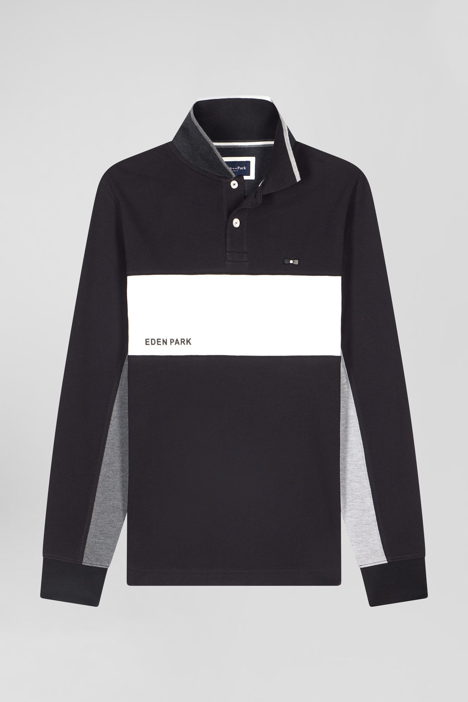 Opt for a sporty, elegant look with our colorblock long-sleeve polo shirt. Its sleek design is enhanced by a wide white stripe contrasting with the EDEN PARK lettering for a dynamic touch. Ideal for both casual and dressy wear, this men's polo features cut-out sleeves highlighted by piping. This model is available in three of our autumn-winter colors.