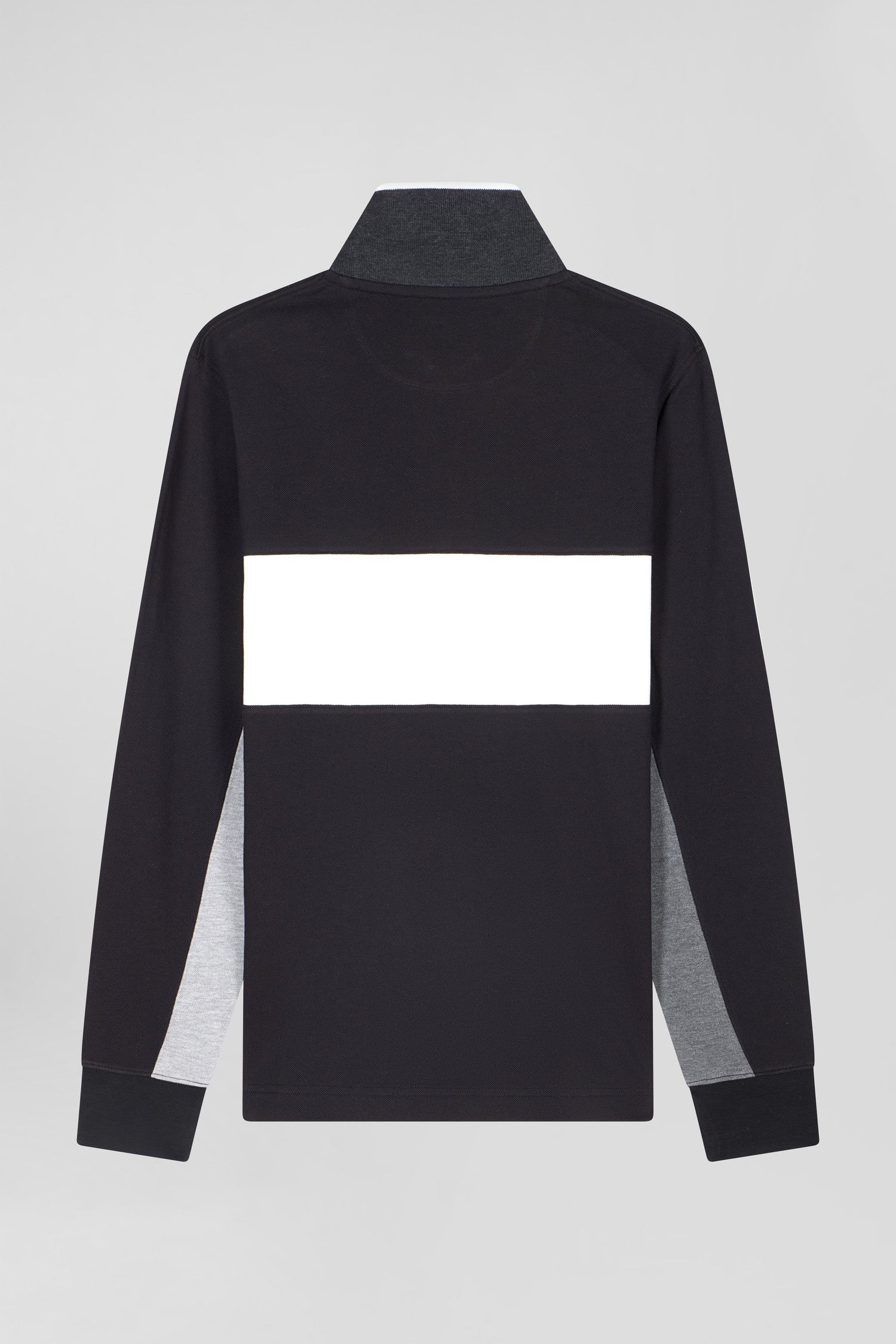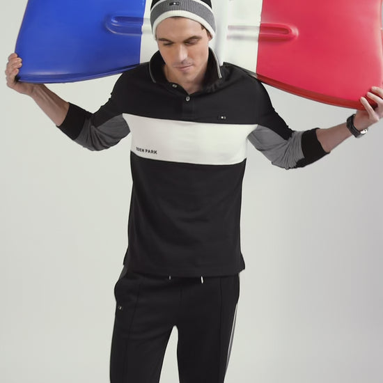 Regular black colorblock long-sleeved cotton piqué polo shirt