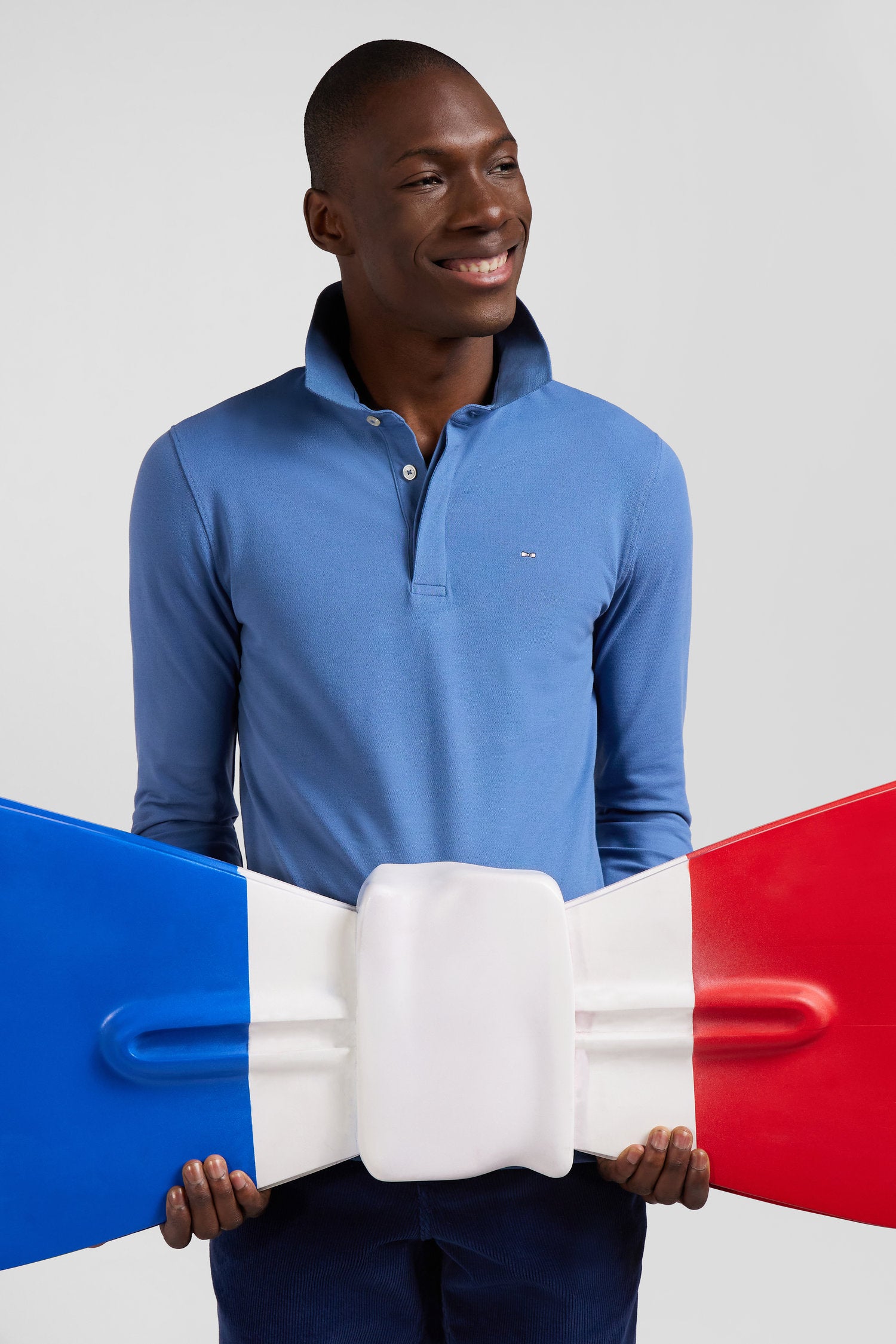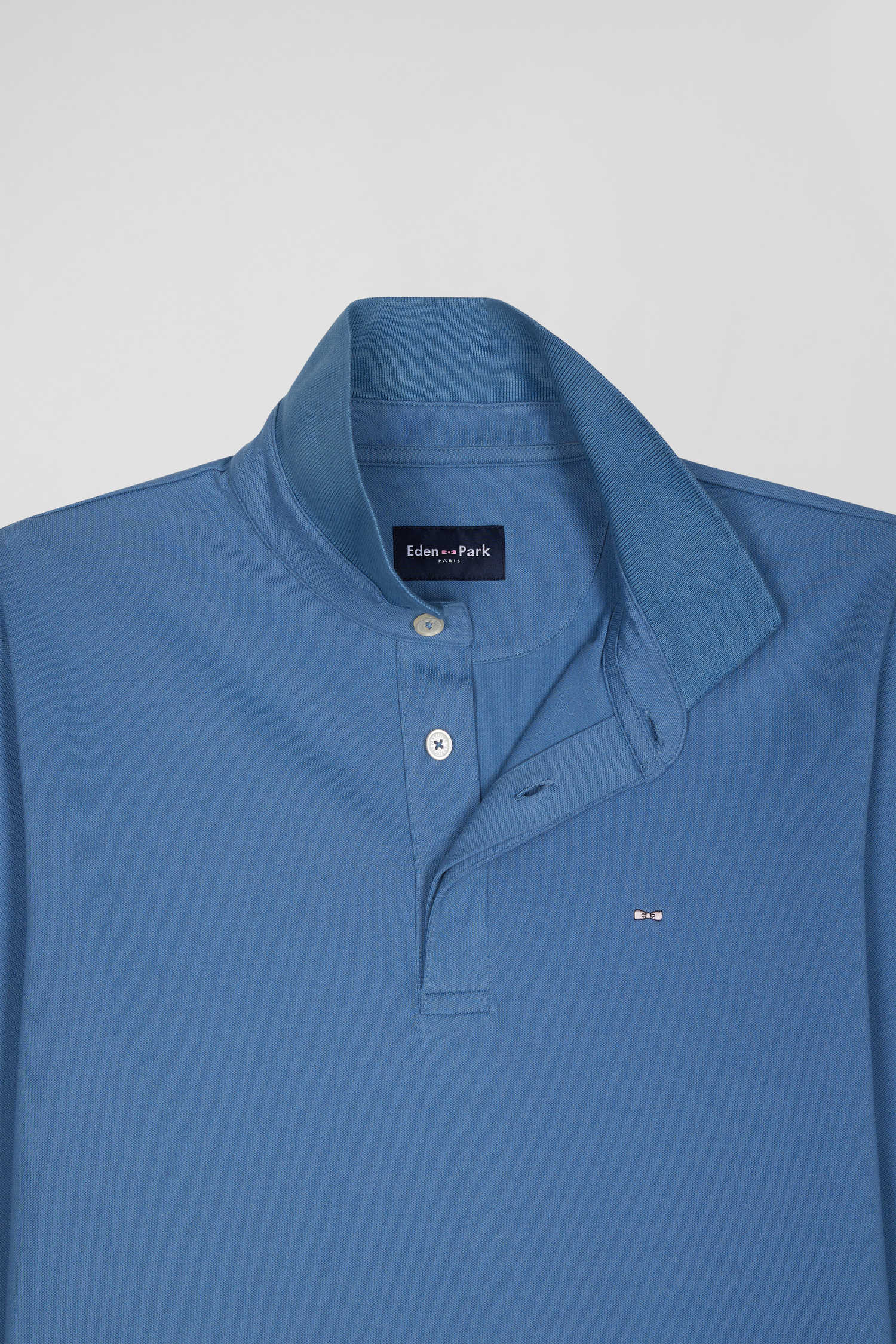 Slim blue long-sleeved cotton piqué polo shirt