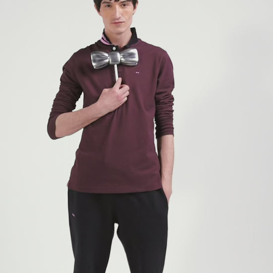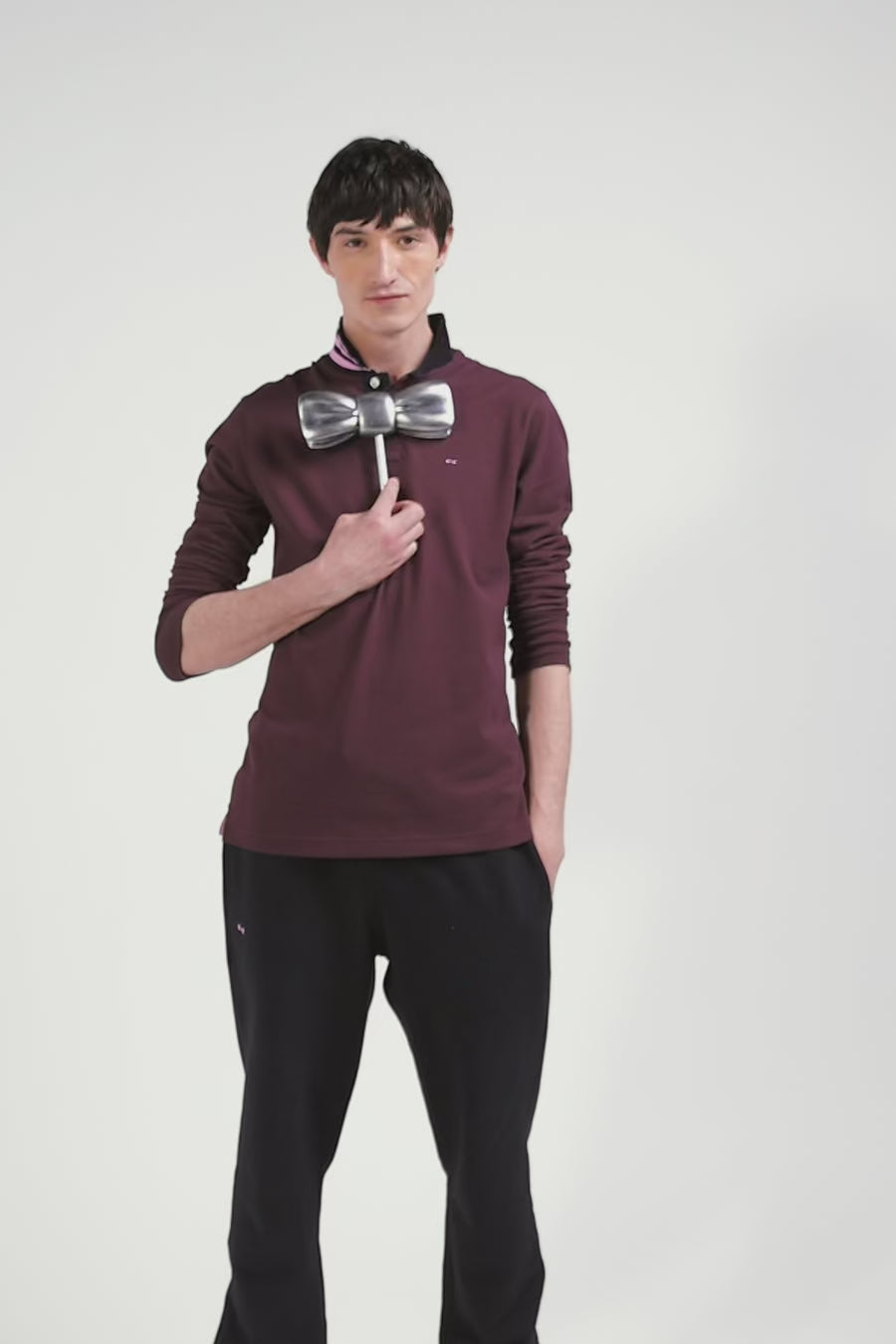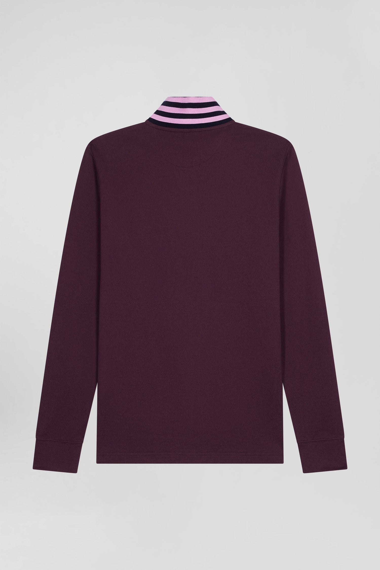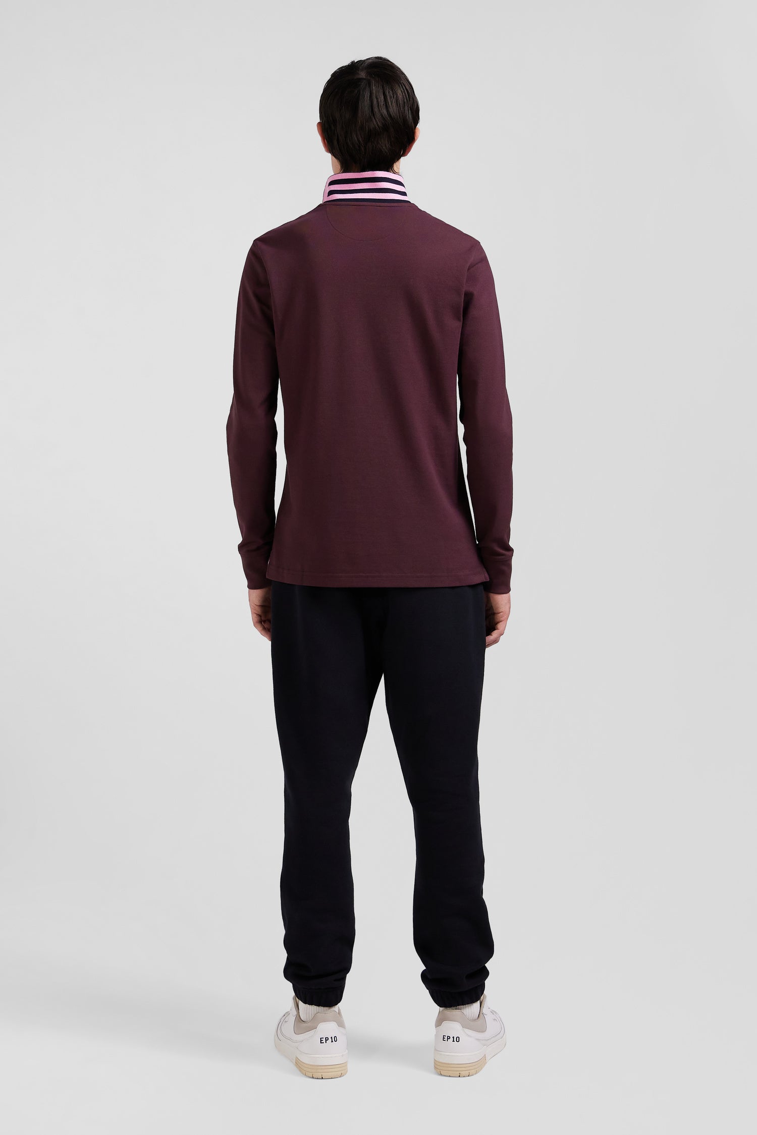 Regular burgundy long-sleeved cotton piqué polo shirt