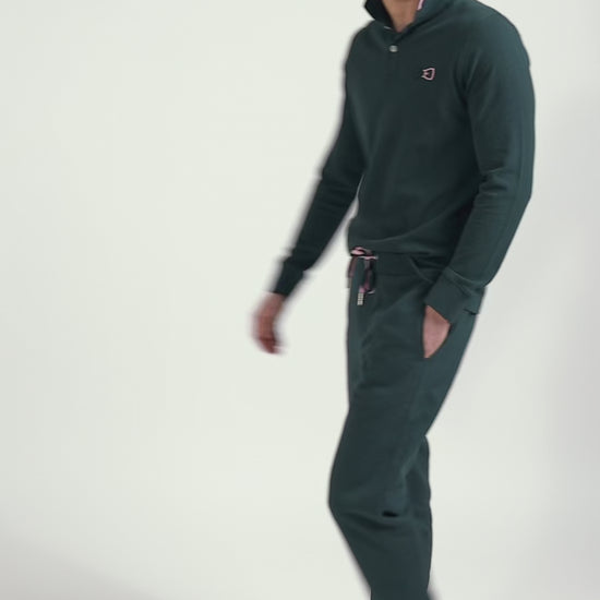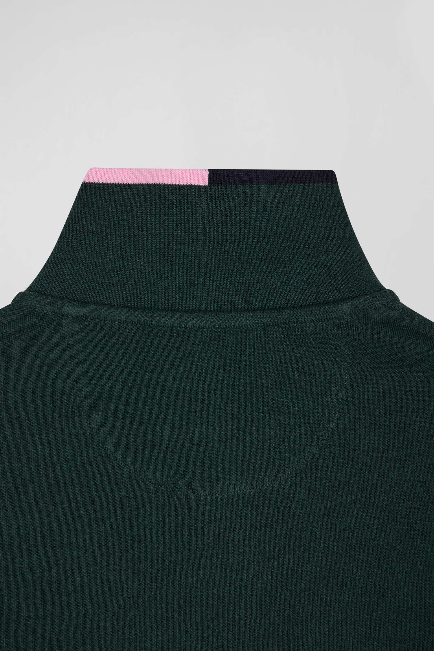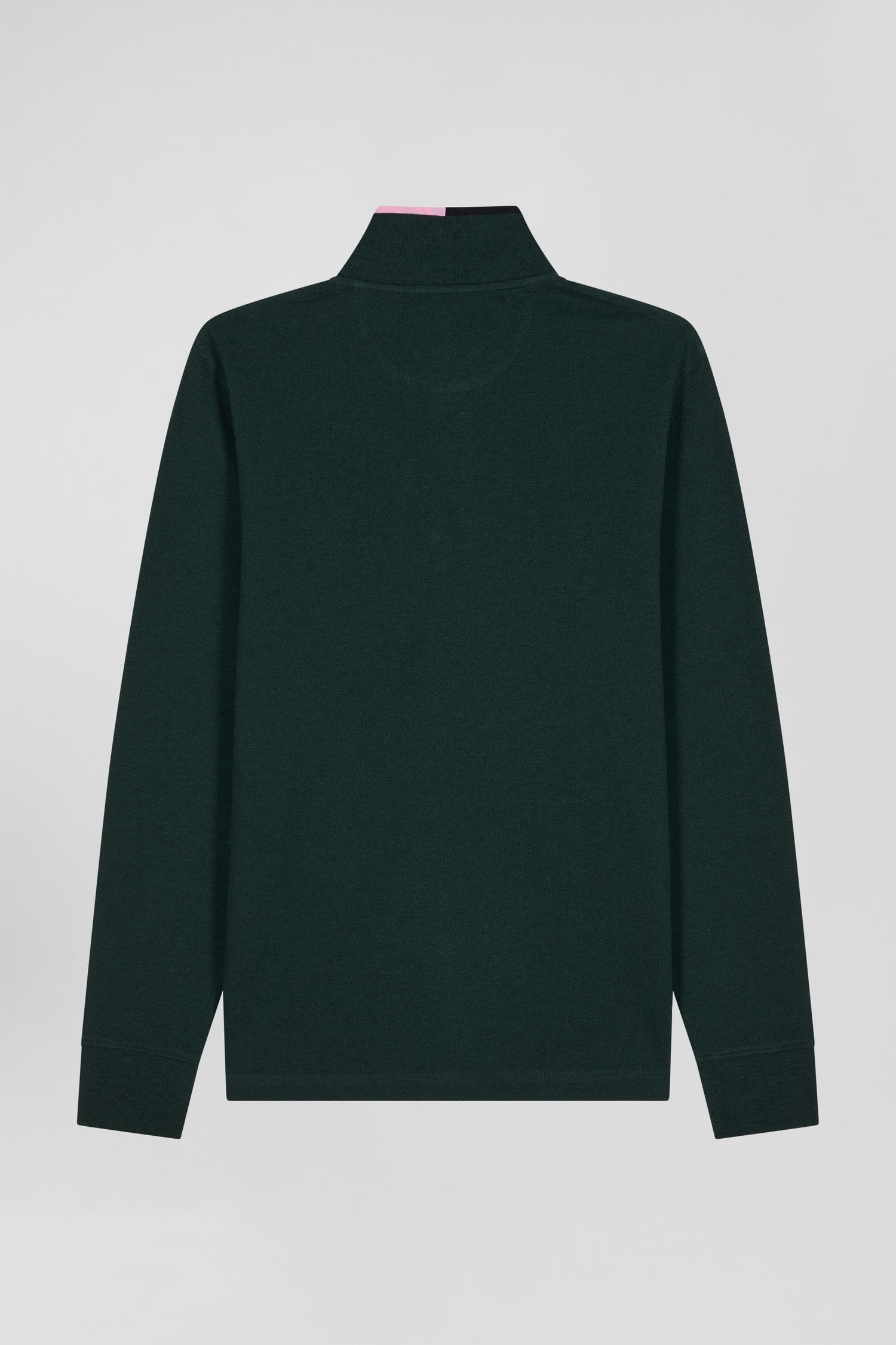 Regular green long-sleeved cotton piqué polo shirt with pink details