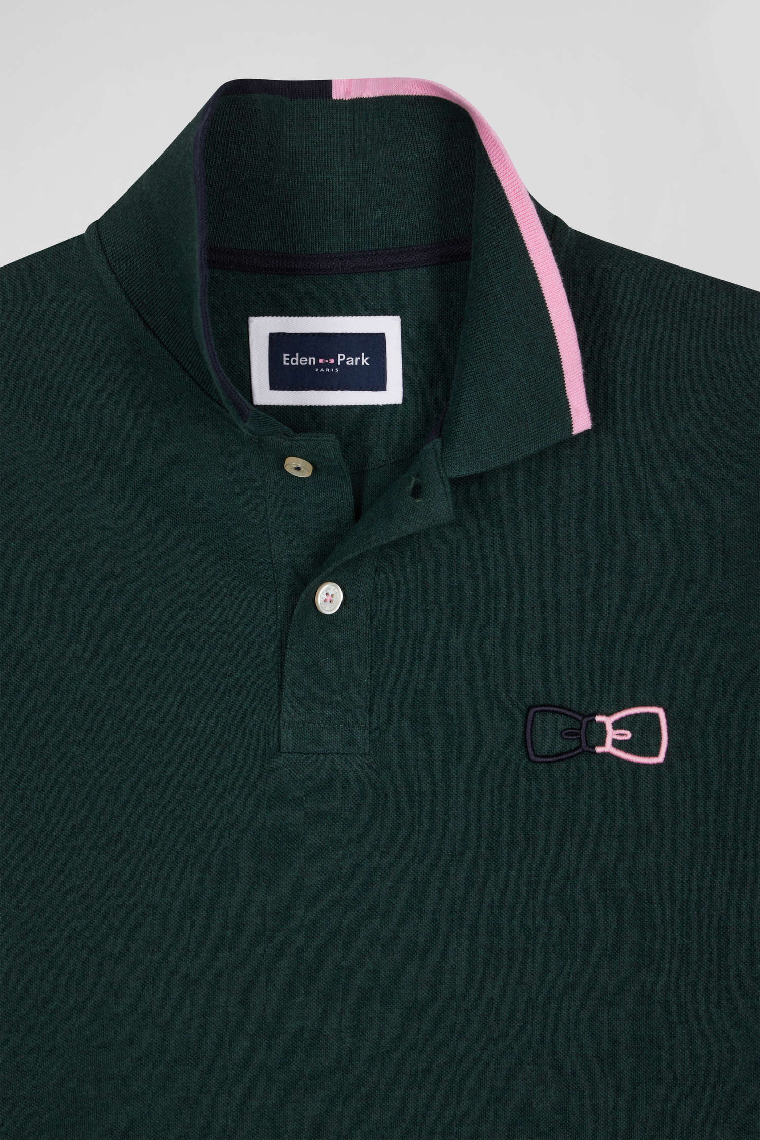 Elevate your everyday wardrobe with this men's long-sleeved polo shirt in cotton piqué. Its sleek design and meticulous finishing touches, such as bow-tie embroidery and ribbed collar with pink piping, reflect a sporty-chic style, ideal for active days or moments of relaxation.