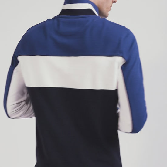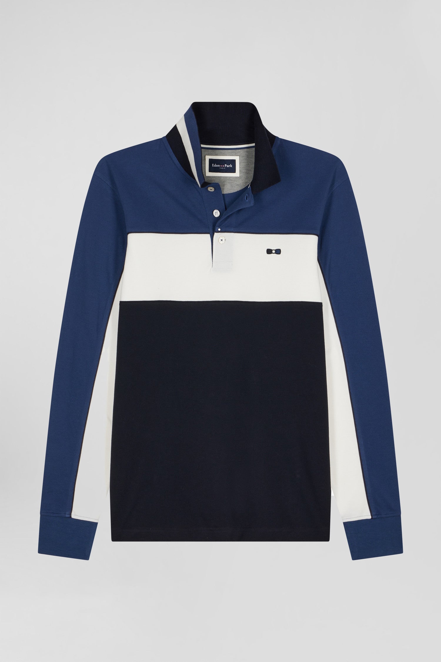 Among Eden Park teams, the colorblock polo shirt has become a firm favorite. This long-sleeved model stands out both for its graphic color scheme and for its tricolored chest embroidery, the emblem of our company.