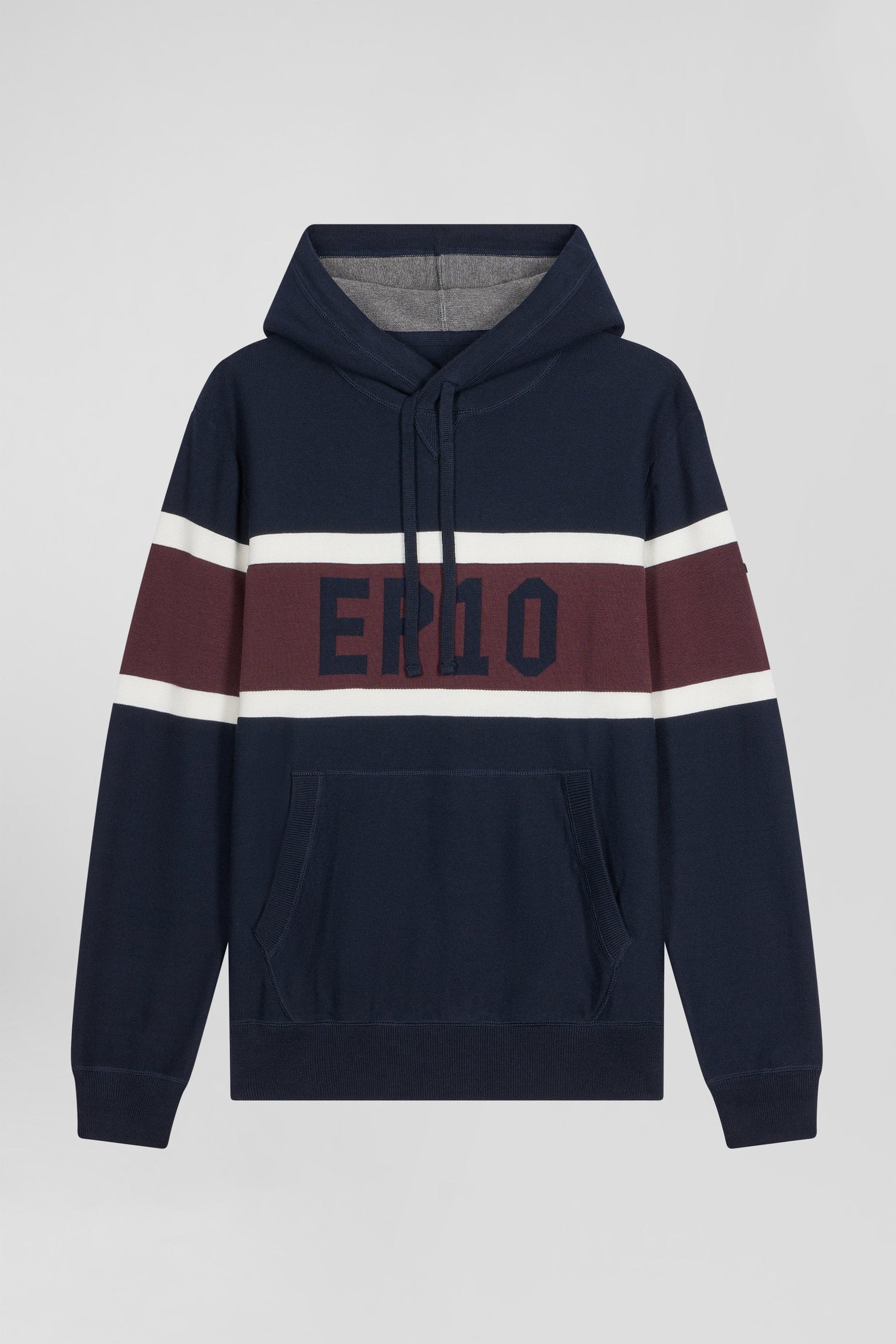 Regular navy blue hooded jumper with EP10 jacquard