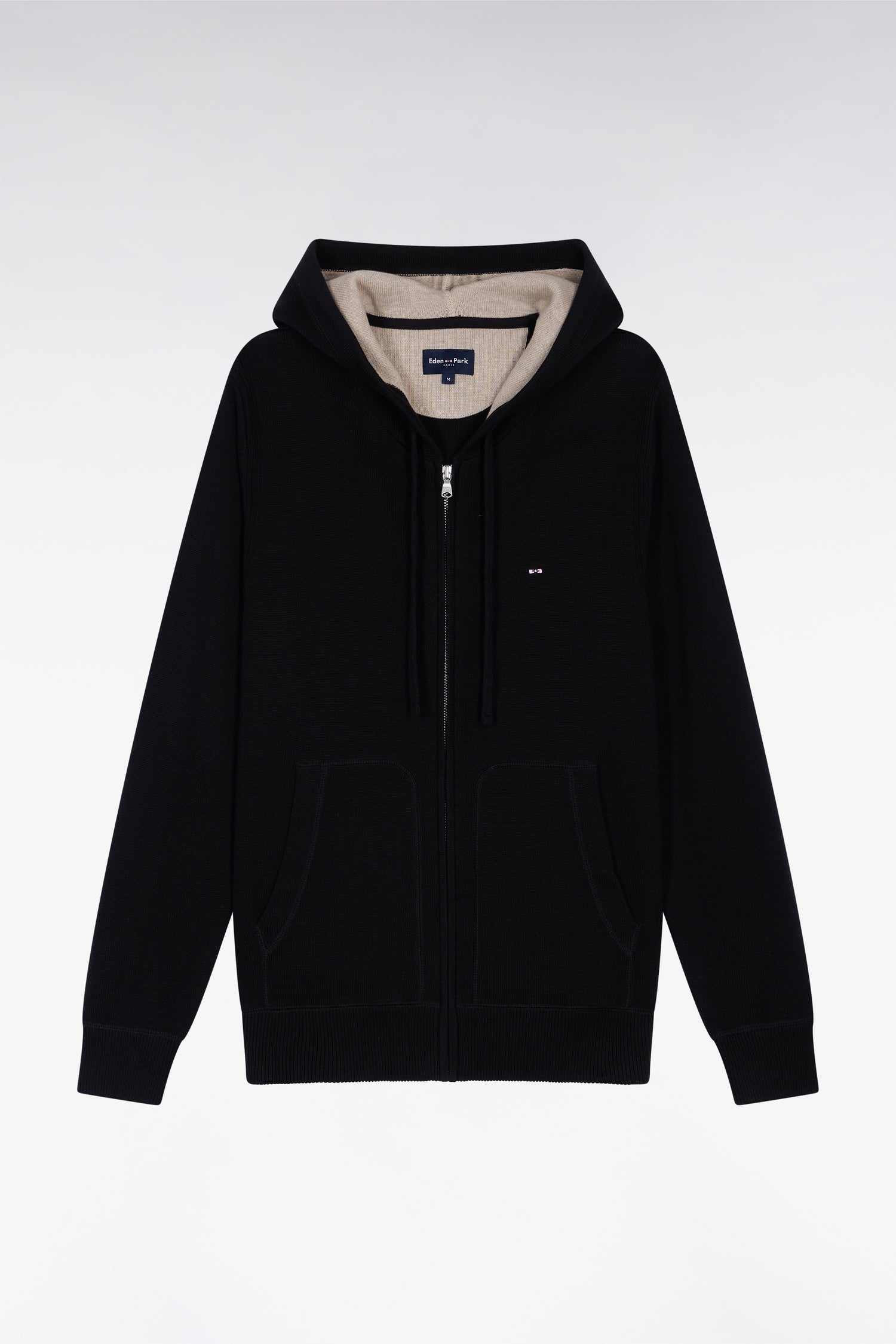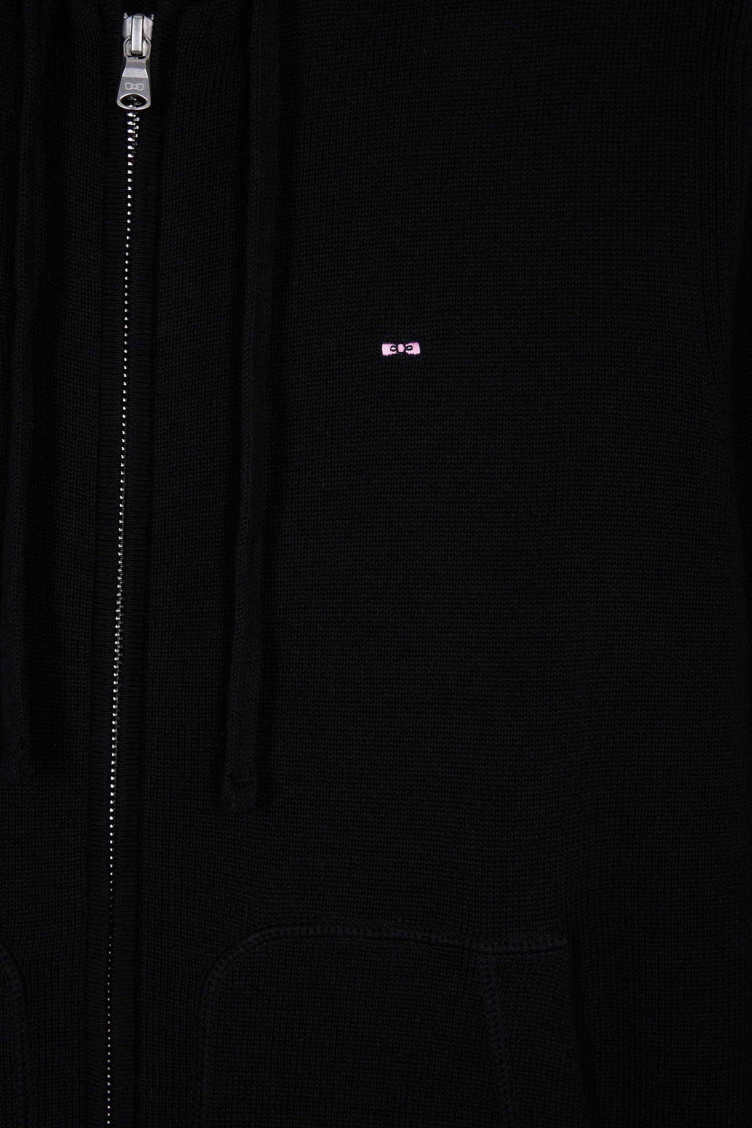 Black cotton zip-up hoodie, straight cut