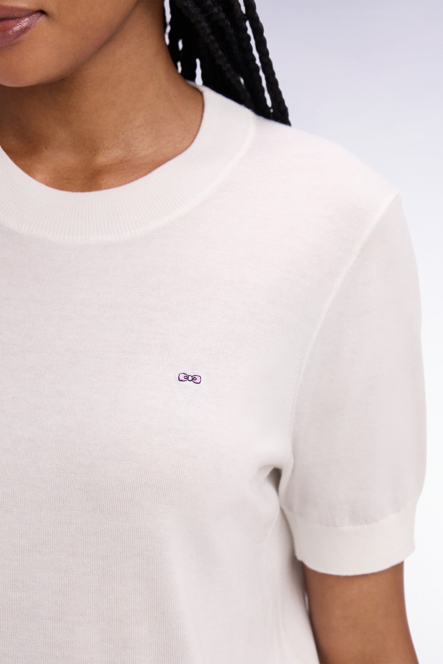 Ce pull à manches courtes, proposé en noir ou en blanc intemporels, promet une allure minimaliste et soignée idéale pour la mi-saison. Sa coupe regular en fait une pièce facile à superposer : il se glisse naturellement sous son cardigan col V à liseré, complétant un look féminin, graphique et raffiné. Un essentiel moderne à porter du bureau au week-end.