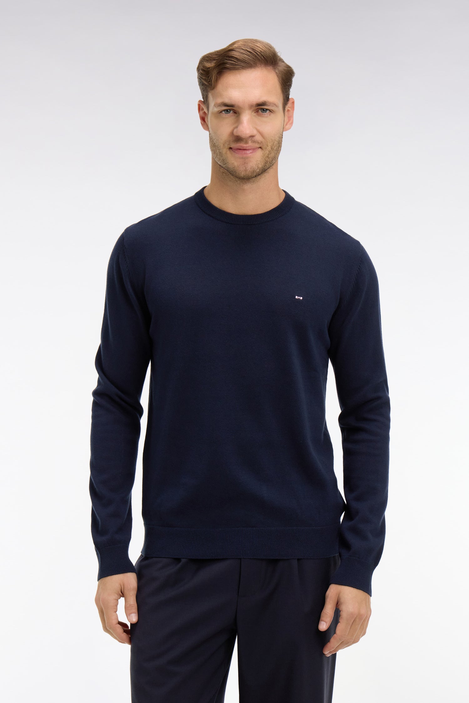 Classic yet infinitely chic, the timeless crew neck jumper deserves a place of choice in your wardrobe this season. Crafted in cotton jersey, this piece promises flawless softness, ideal comfort and discreet elegance. Wear it casually against the skin or dress it up by topping a solid shirt with it.